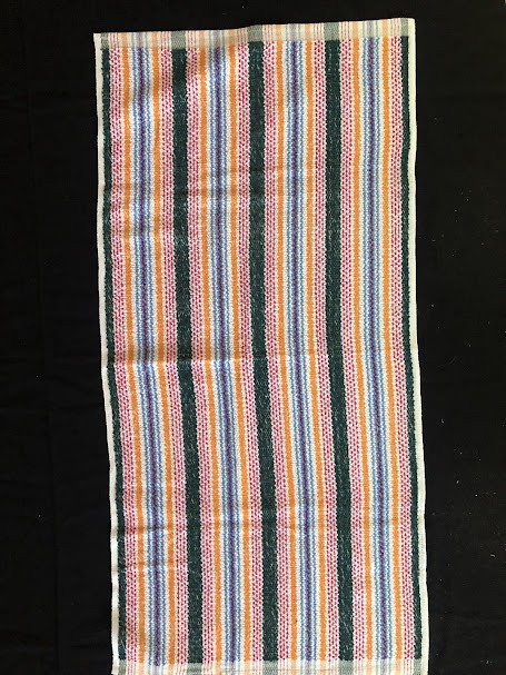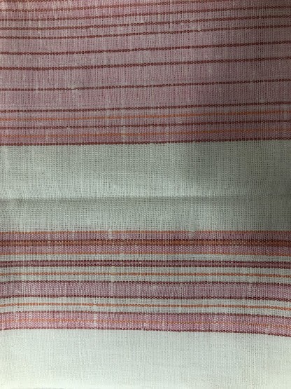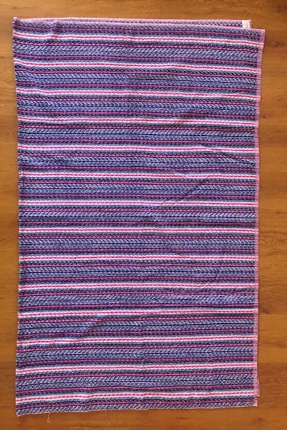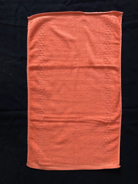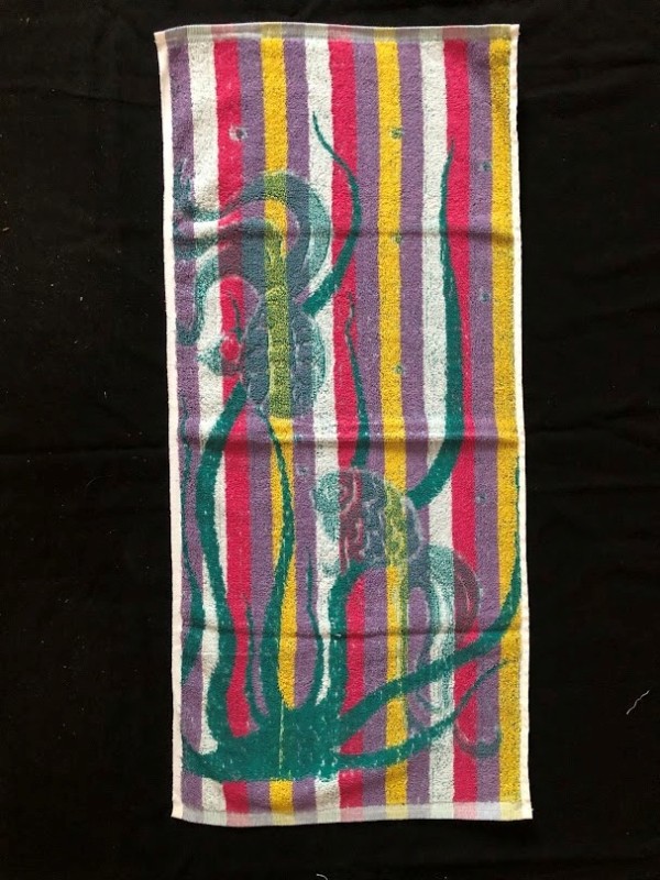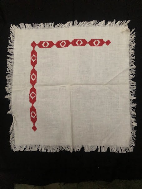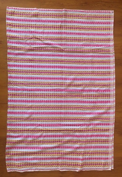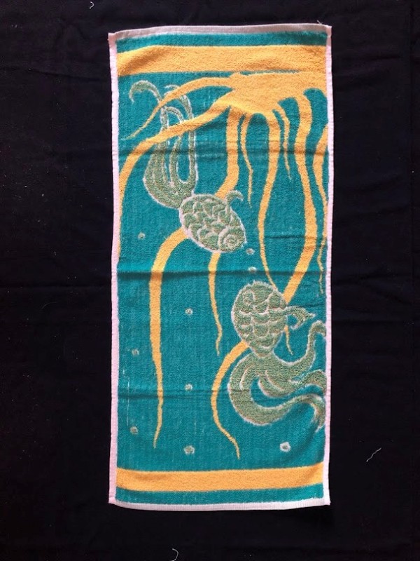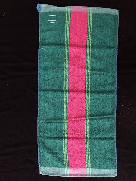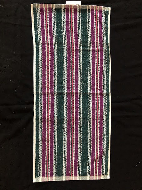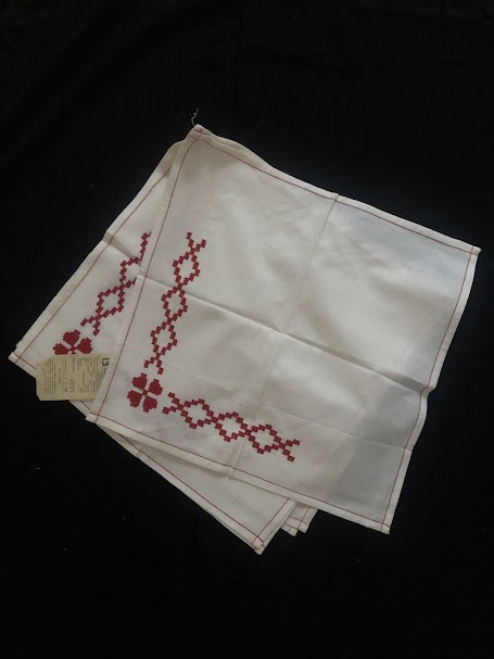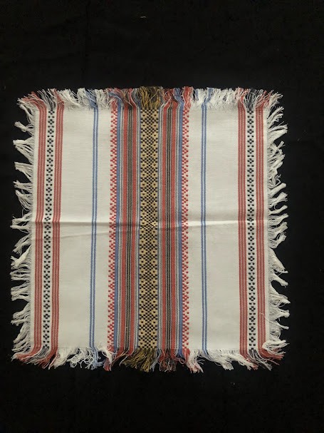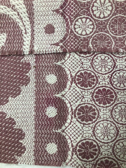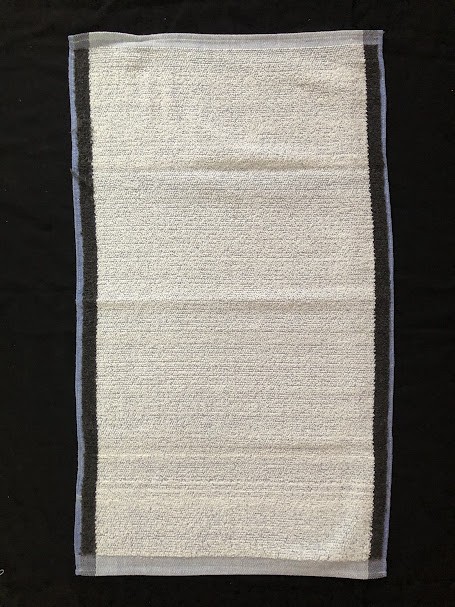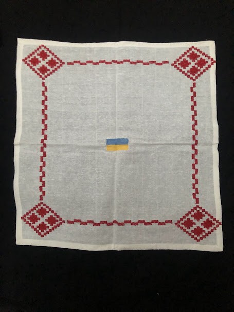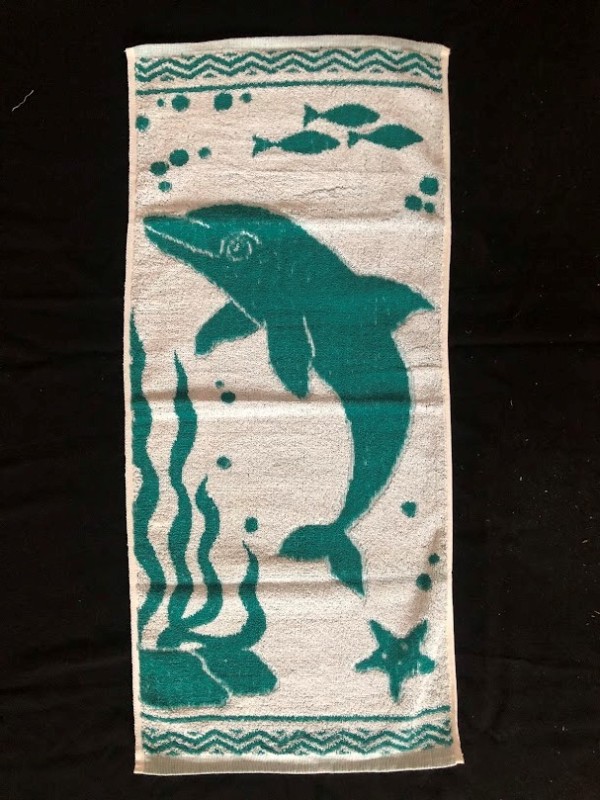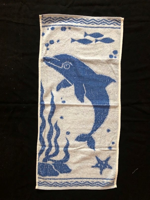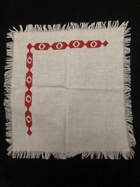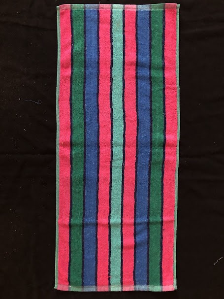 Рушник махровий. Виготовлено наприкінці ХХ століття на кролевецькій фабриці художнього ткацтва. Напівмеханічне ткацтво - жаккардова махра. Полотно виробу з білої та рожевої нитки. Орнамент квітковий двосторонній, утворений переплетенням ниток двох кольорів. Підрублено на швейній машинці з чотирьох сторін.