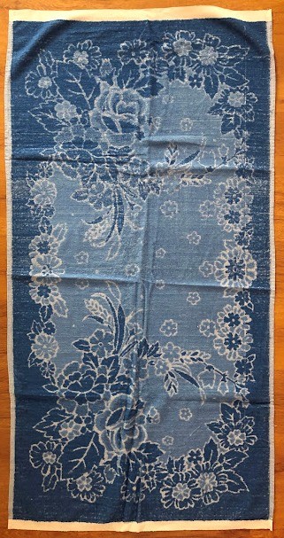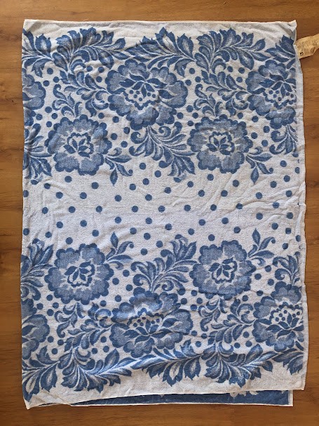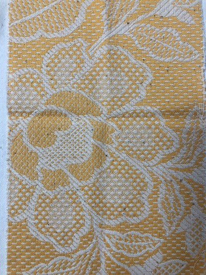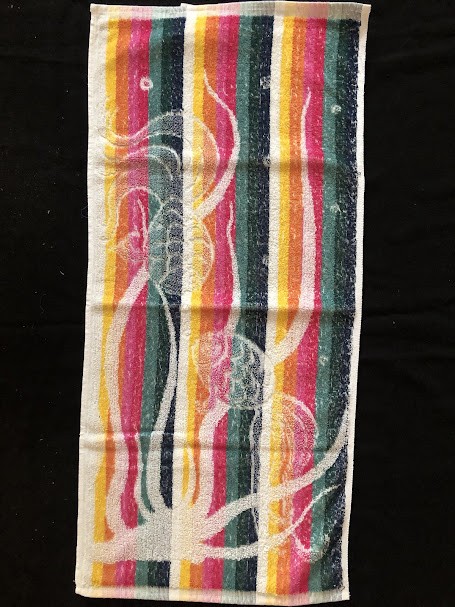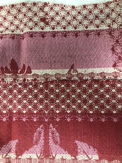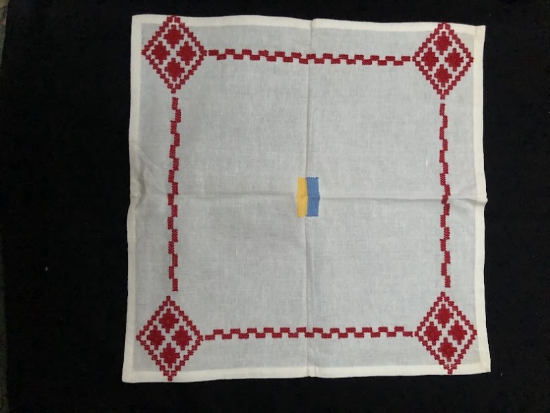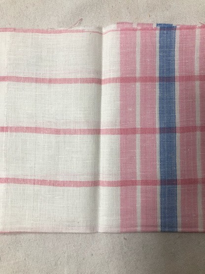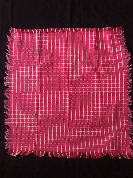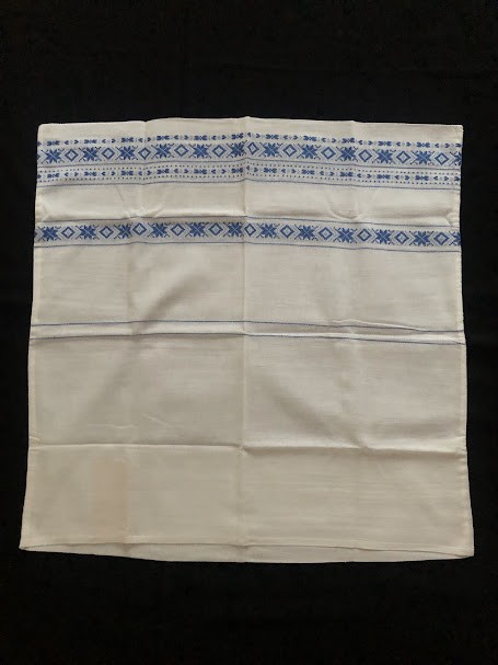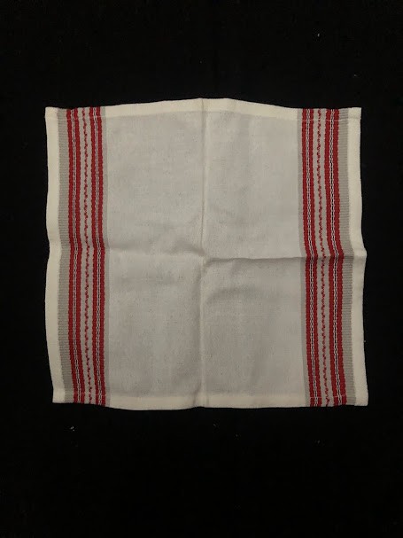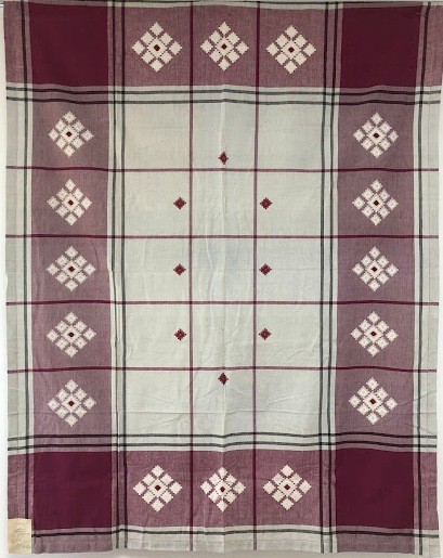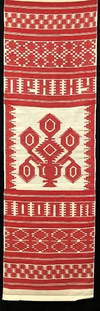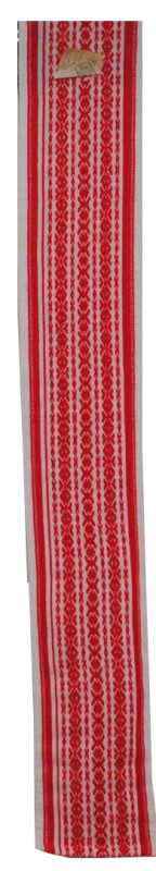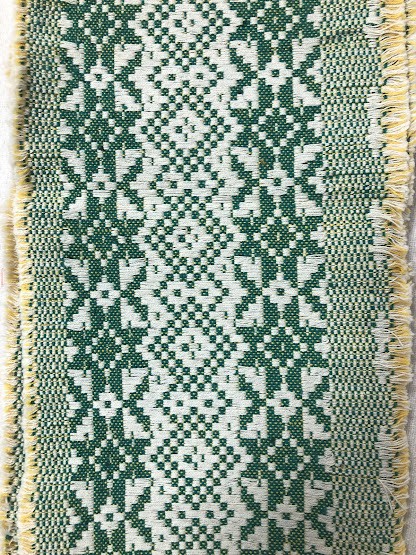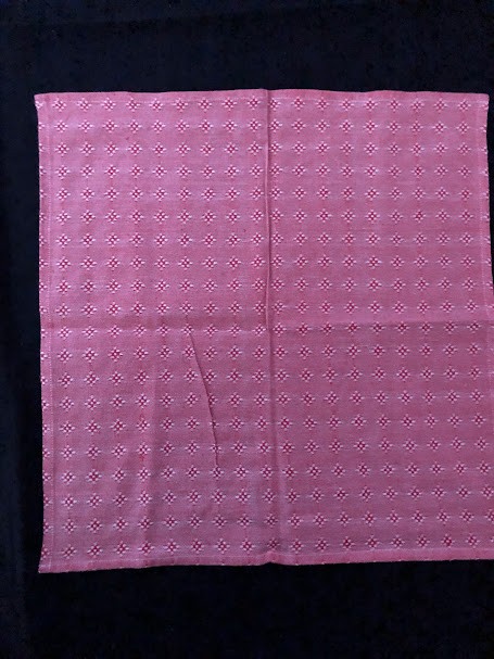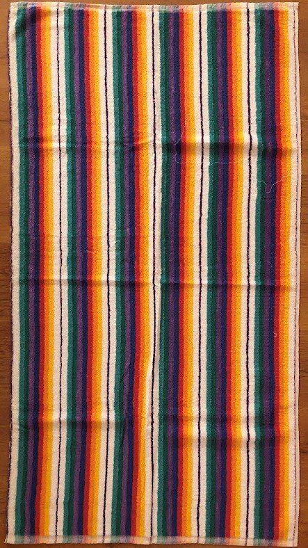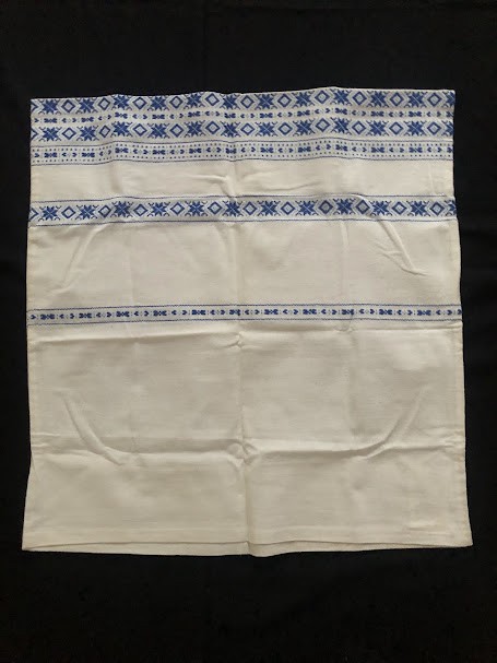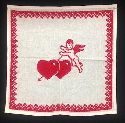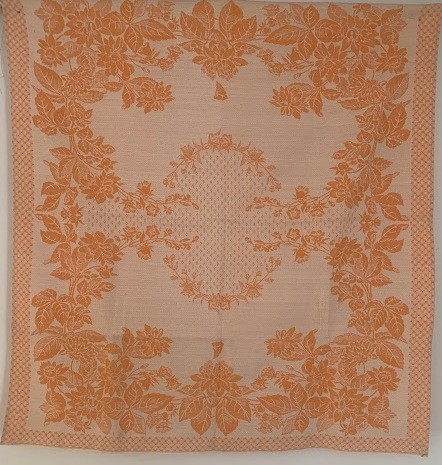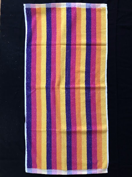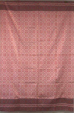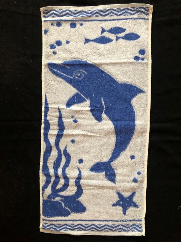 Рушник махровий. Виготовлено наприкінці ХХ століття на кролевецькій фабриці художнього ткацтва. Напівмеханічне ткацтво - жаккардова махра. Полотно виробу з білої та рожевої нитки. Орнамент квітковий двосторонній, утворений переплетенням ниток двох кольорів. Підрублено на швейній машинці з чотирьох сторін.