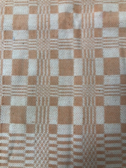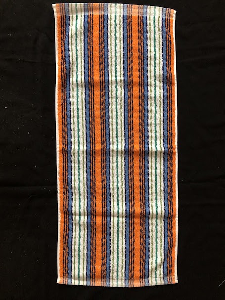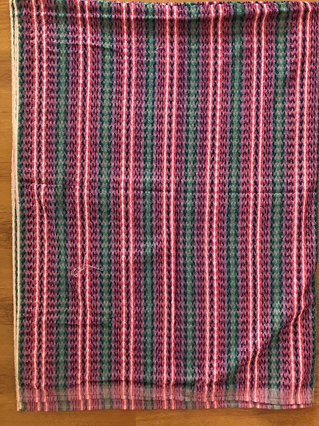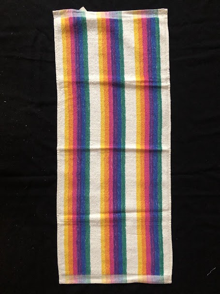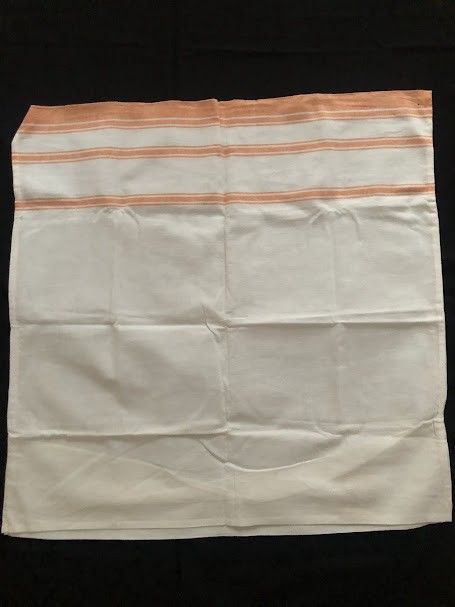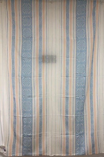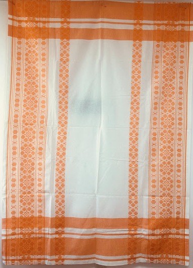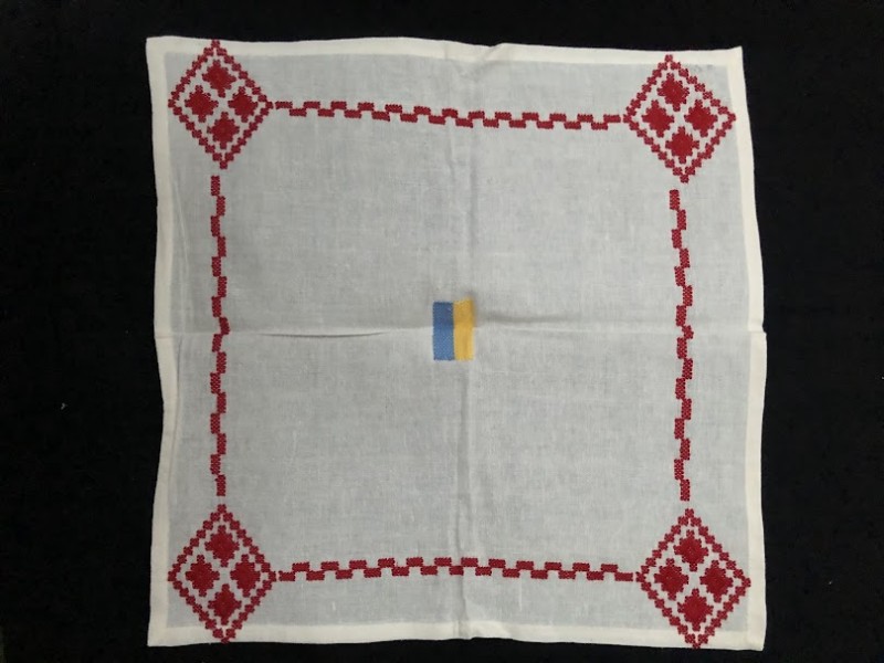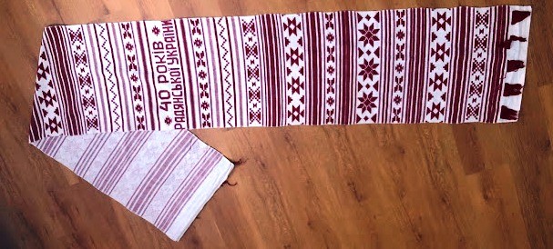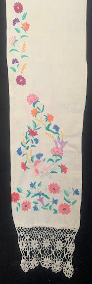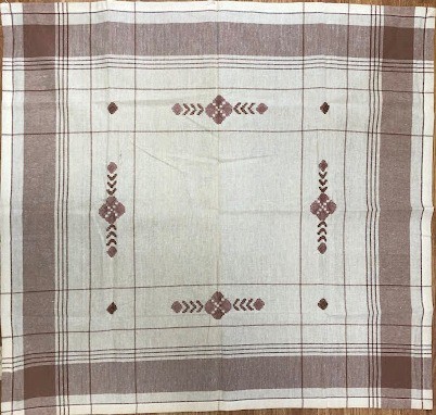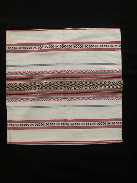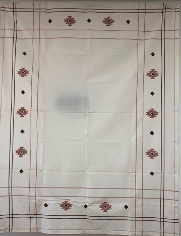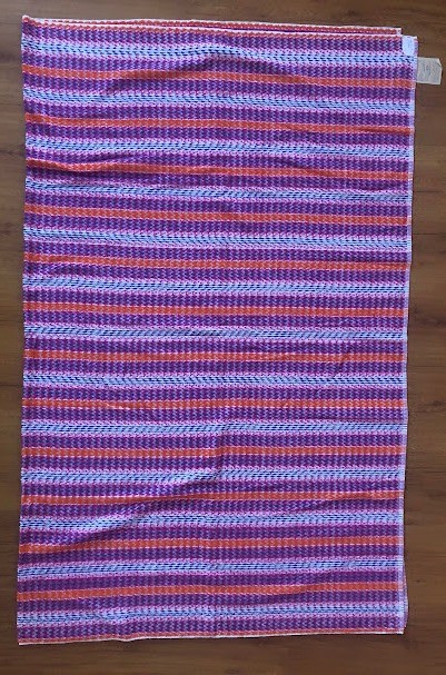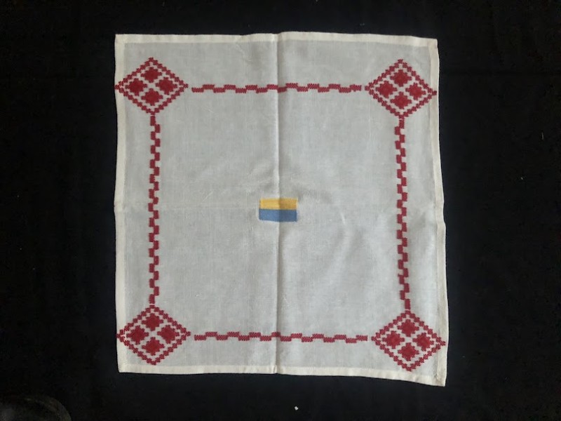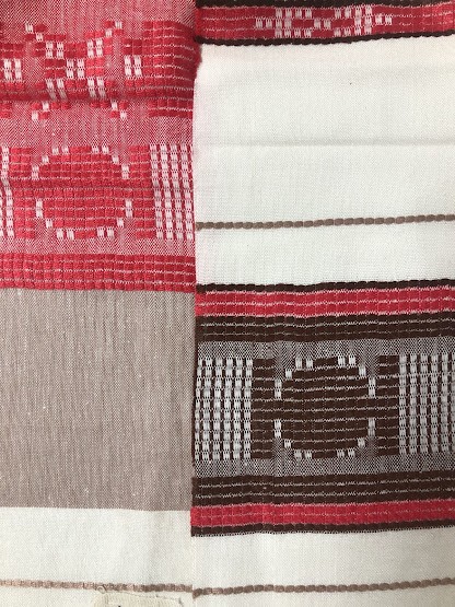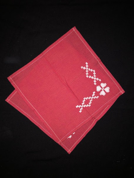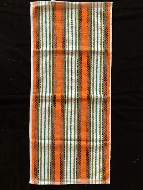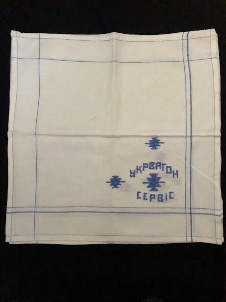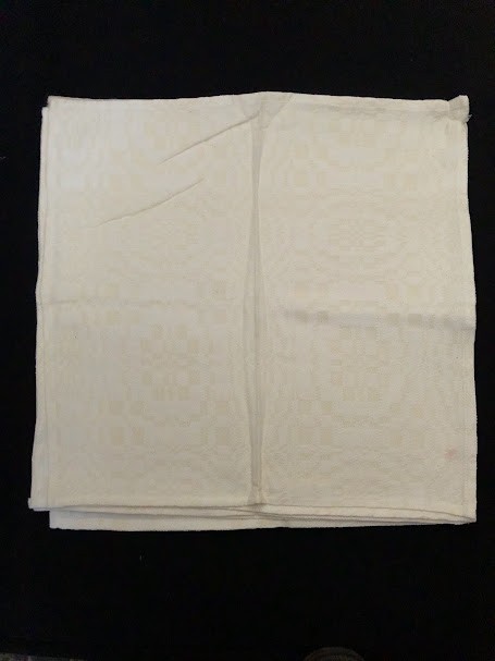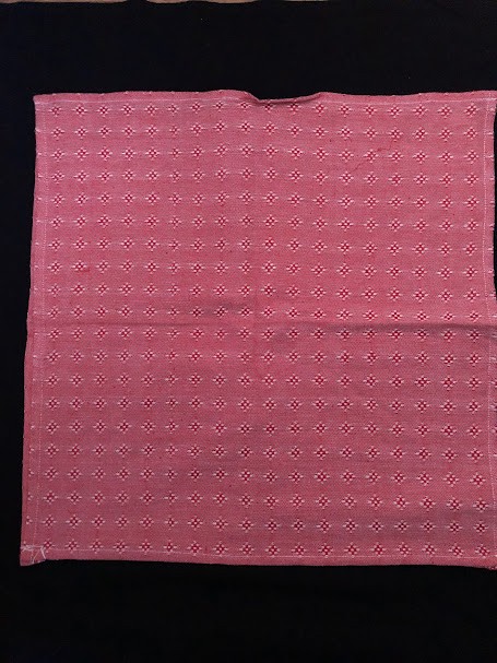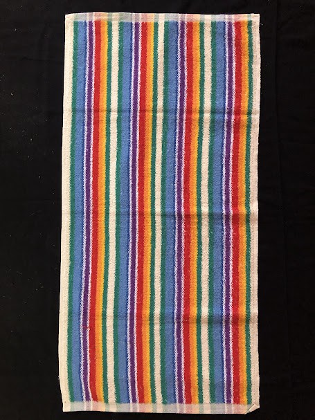 Рушник махровий. Виготовлено наприкінці ХХ століття на кролевецькій фабриці художнього ткацтва. Напівмеханічне ткацтво - жаккардова махра. Полотно виробу з білої та рожевої нитки. Орнамент квітковий двосторонній, утворений переплетенням ниток двох кольорів. Підрублено на швейній машинці з чотирьох сторін.