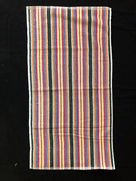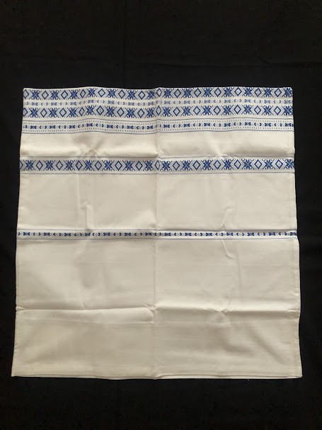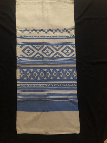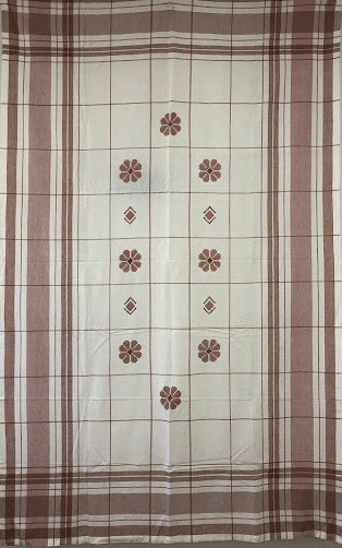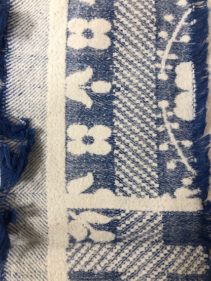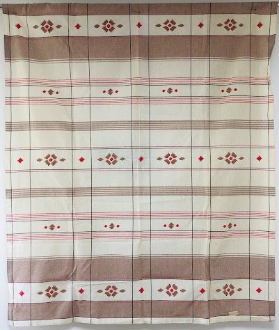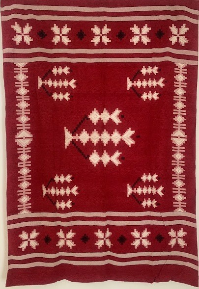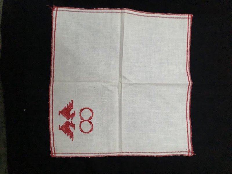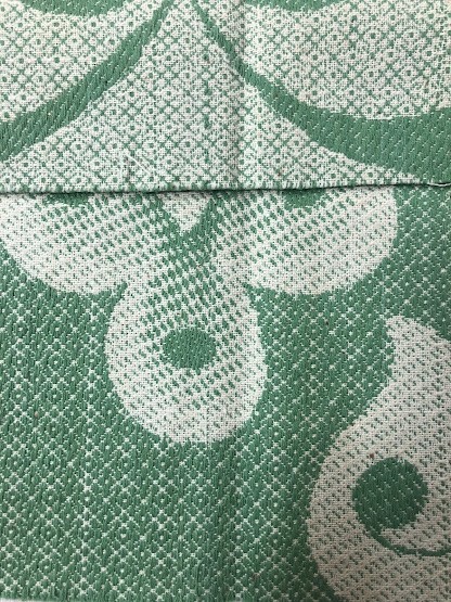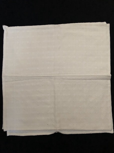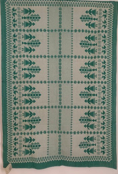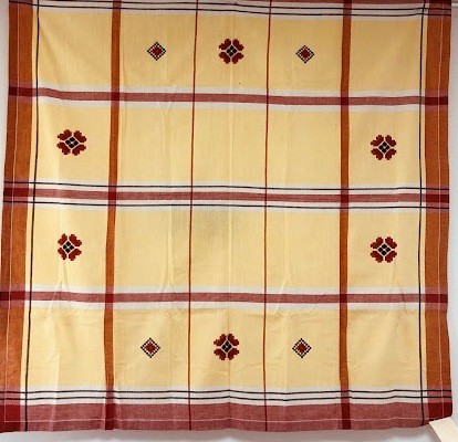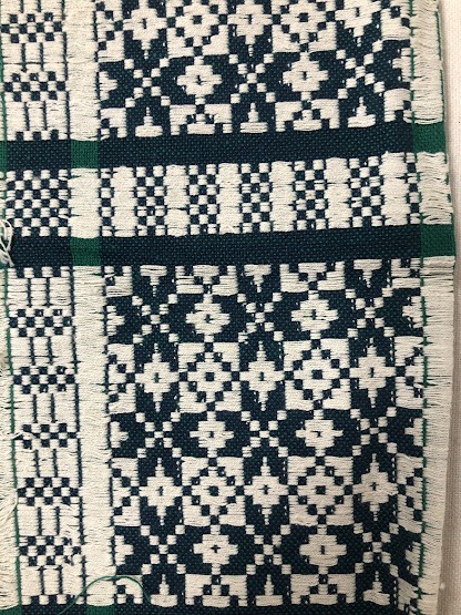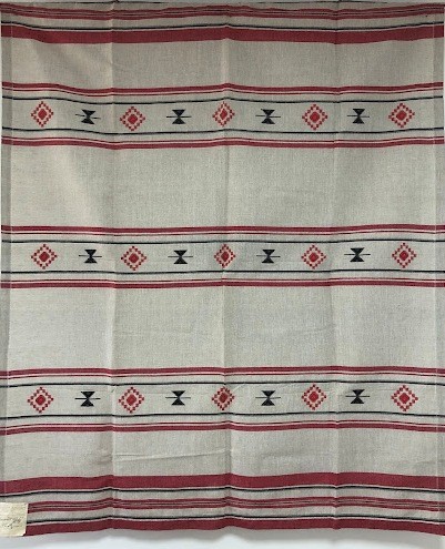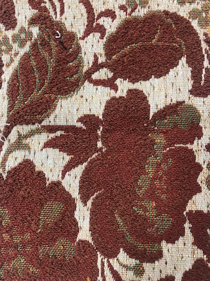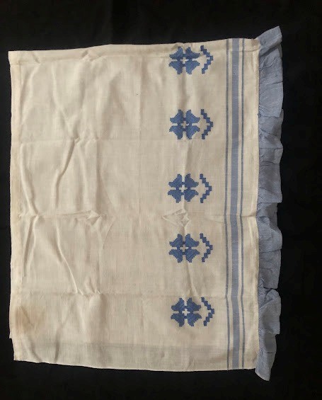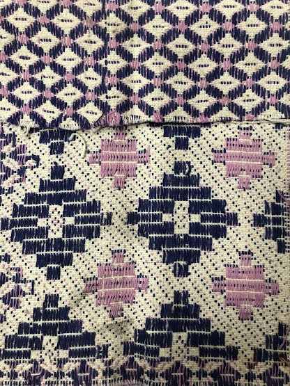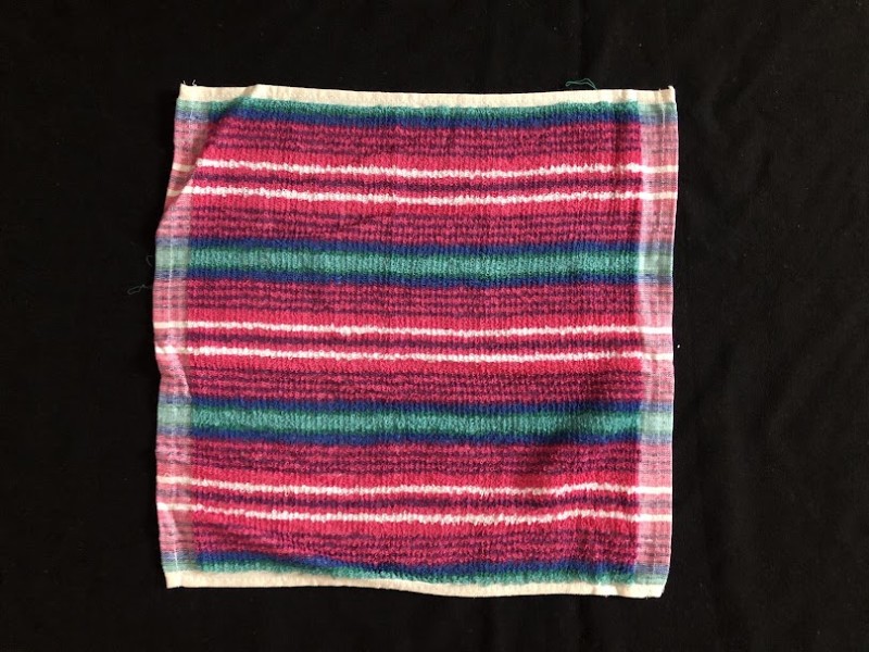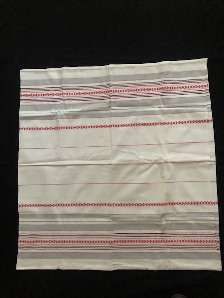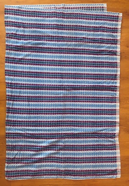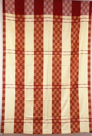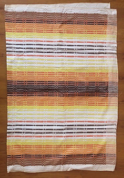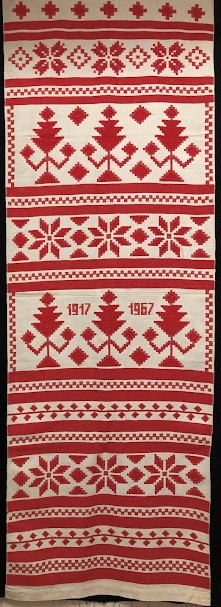 Рушник махровий. Виготовлено наприкінці ХХ століття на кролевецькій фабриці художнього ткацтва. Напівмеханічне ткацтво - жаккардова махра. Полотно виробу з білої та рожевої нитки. Орнамент квітковий двосторонній, утворений переплетенням ниток двох кольорів. Підрублено на швейній машинці з чотирьох сторін.
