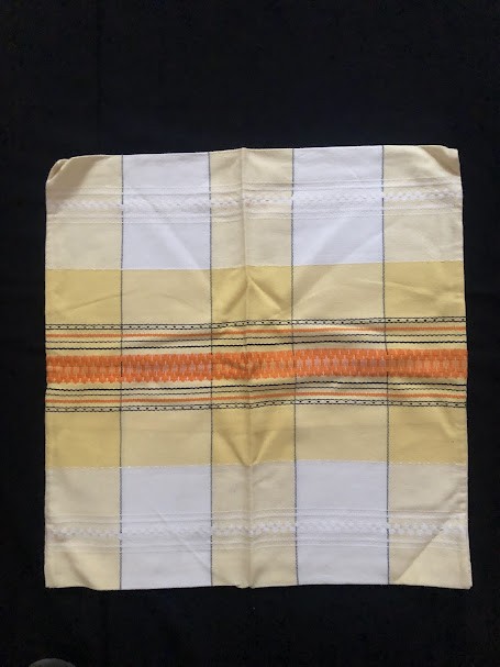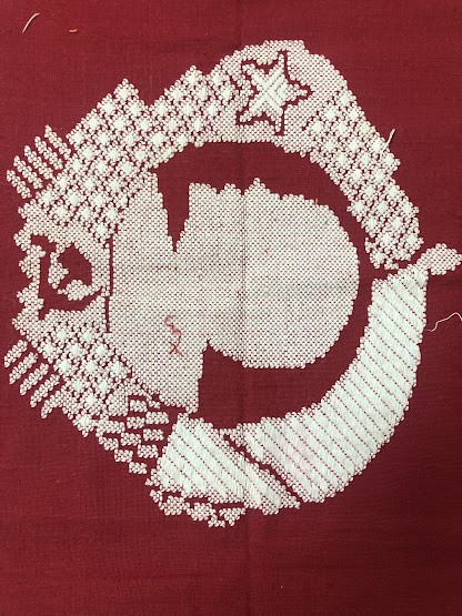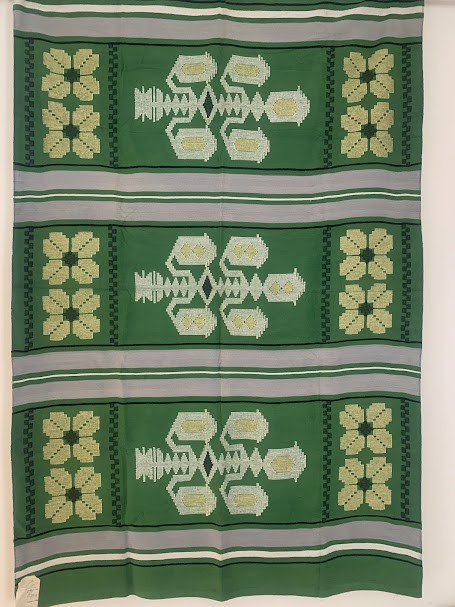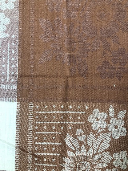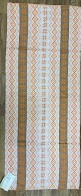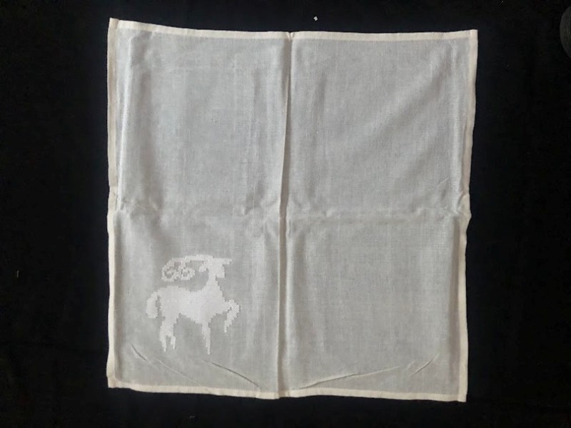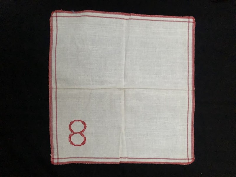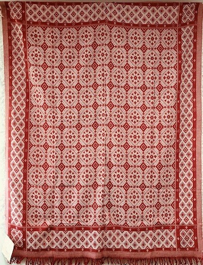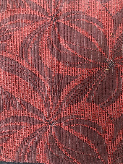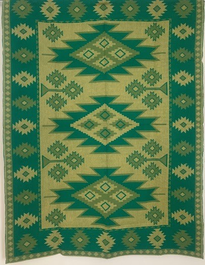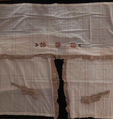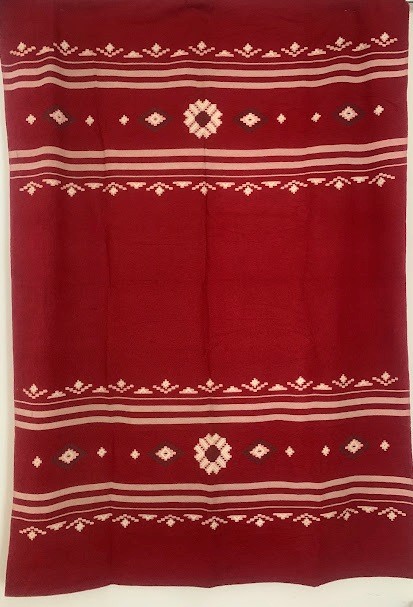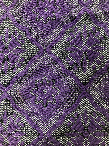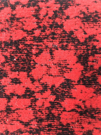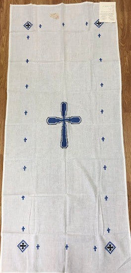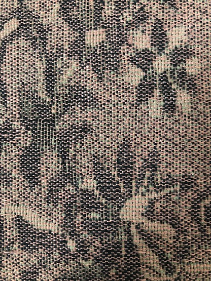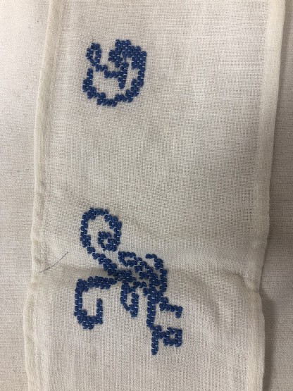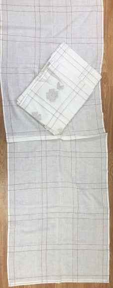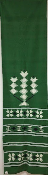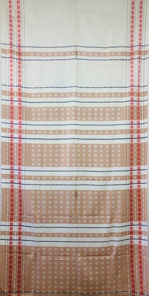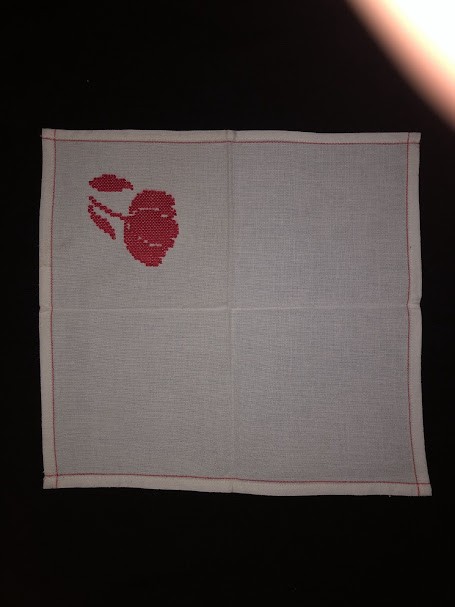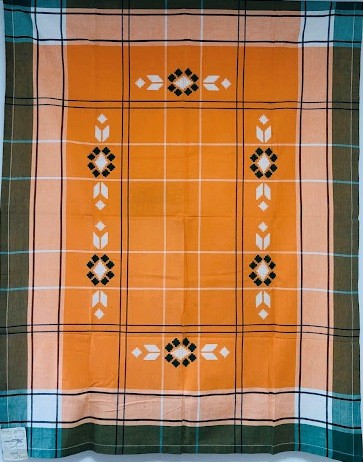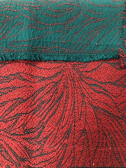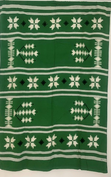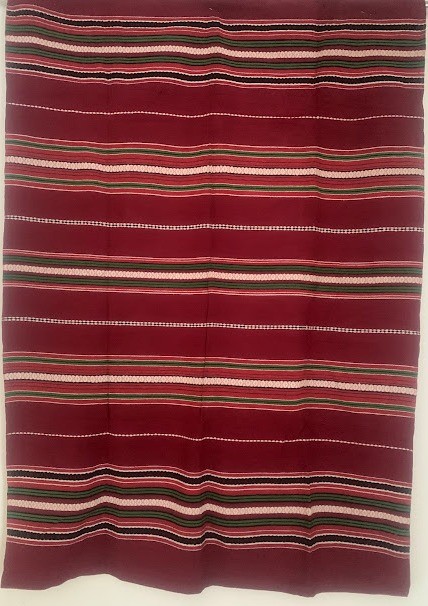Рушник махровий. Виготовлено наприкінці ХХ століття на кролевецькій фабриці художнього ткацтва. Напівмеханічне ткацтво - жаккардова махра. Полотно виробу з білої та рожевої нитки. Орнамент квітковий двосторонній, утворений переплетенням ниток двох кольорів. Підрублено на швейній машинці з чотирьох сторін.