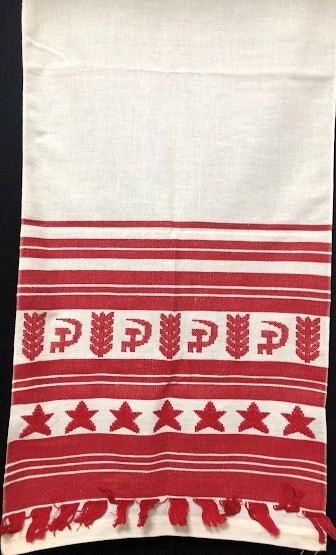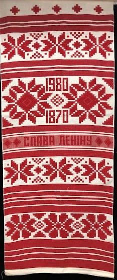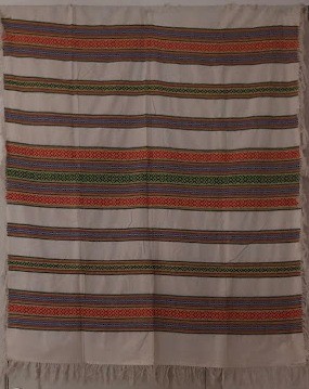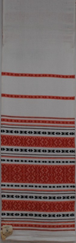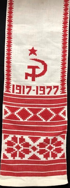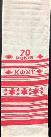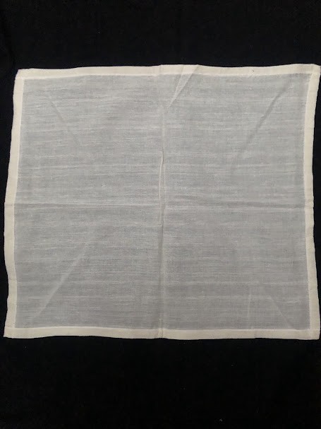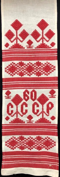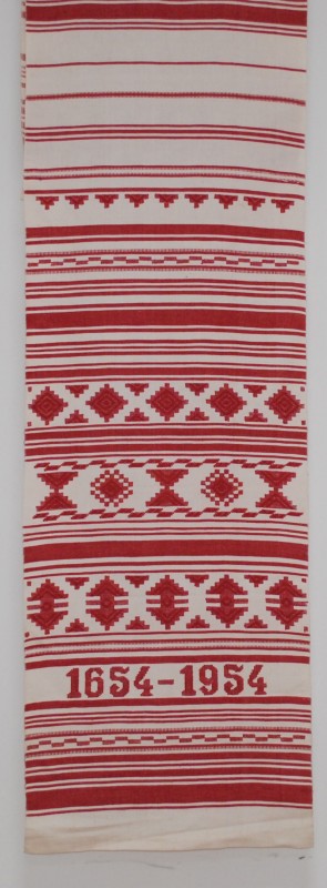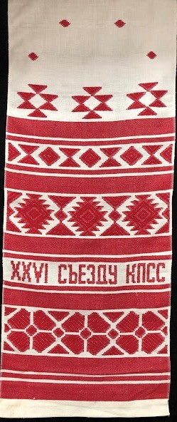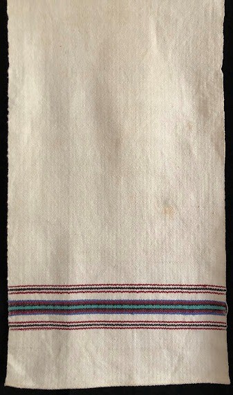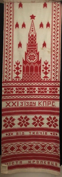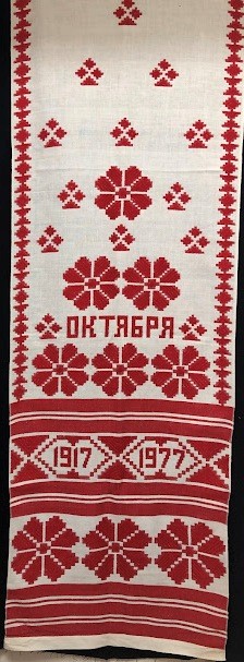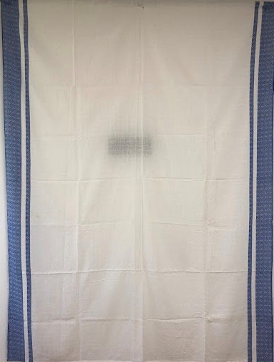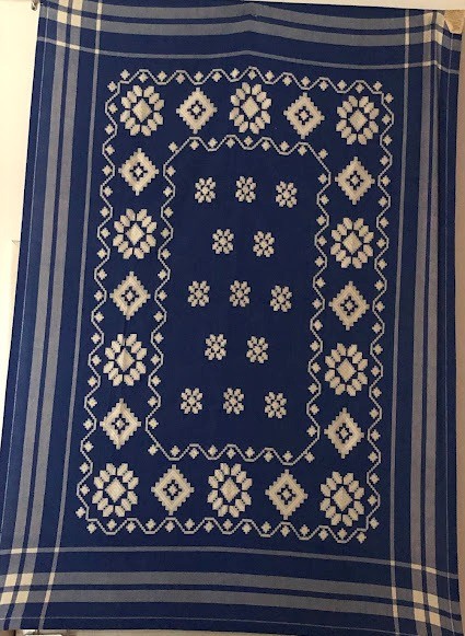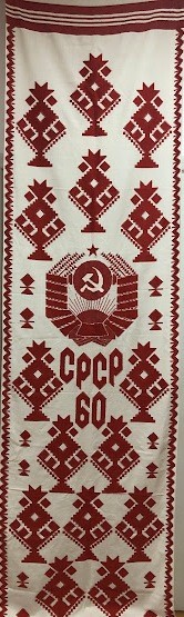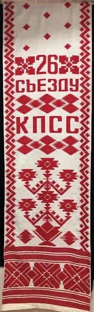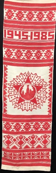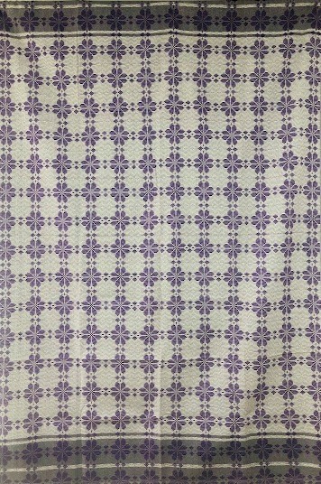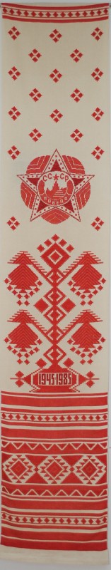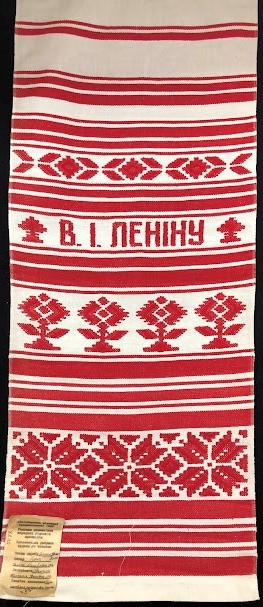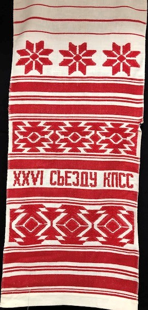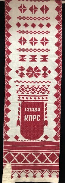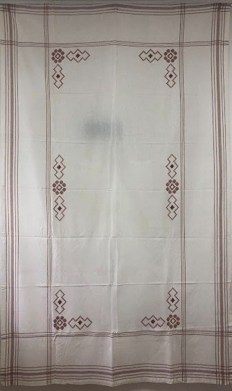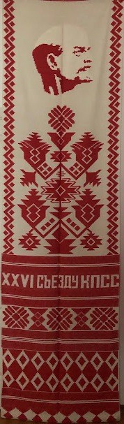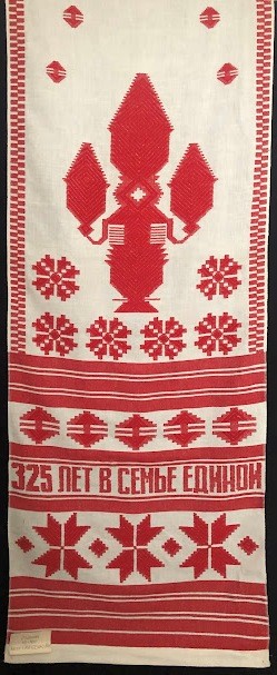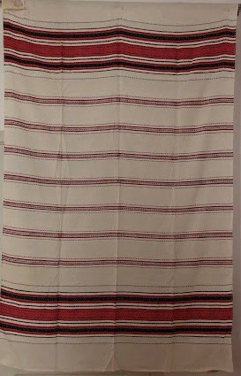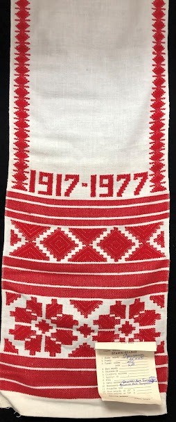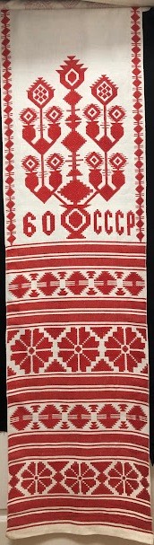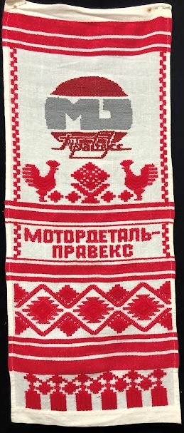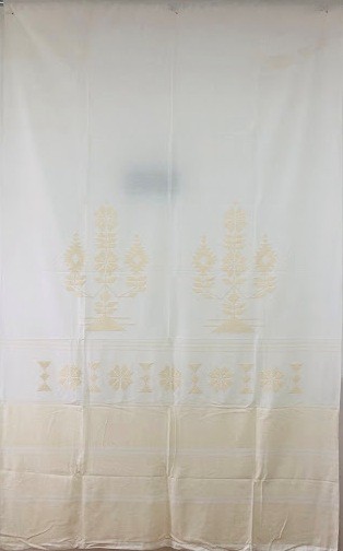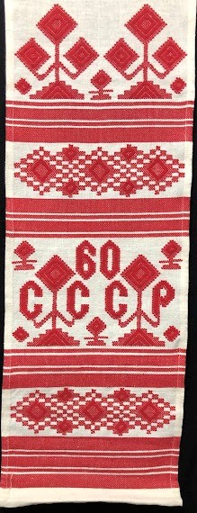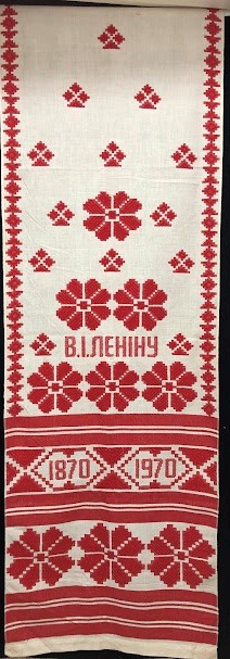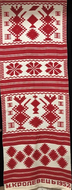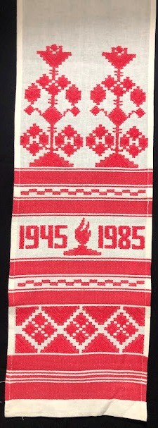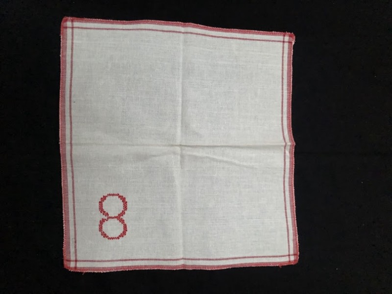 Серветка. Виготовлено наприкінці ХХ століття на кролевецькій фабриці художнього ткацтва. Полотно біле бавовняне, орнамент вишито на швейній машинці шовковими блакитними нитками. Композиція малюнка серветки складається з вишитого квіткового орнаменту. Підрублено на швейній машинці з усих сторін.