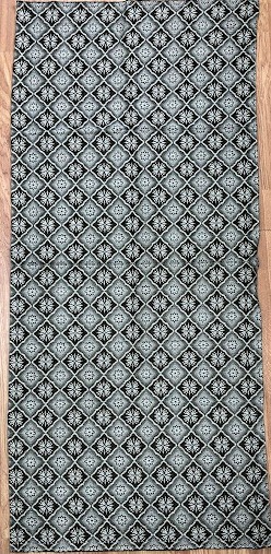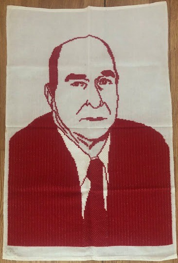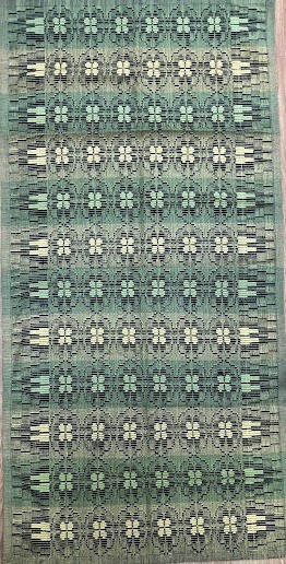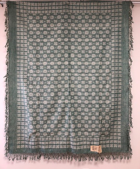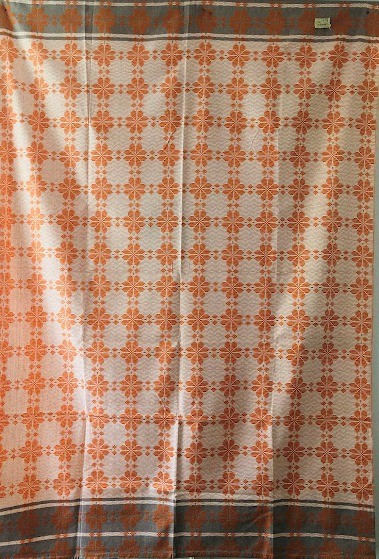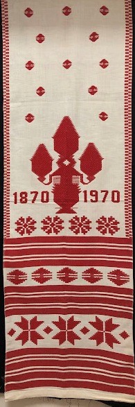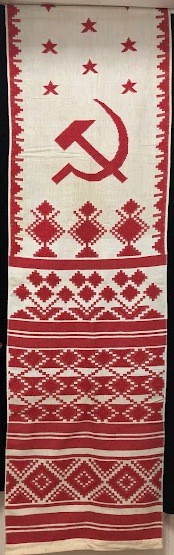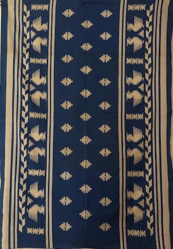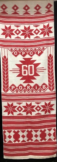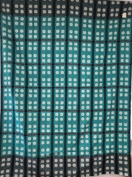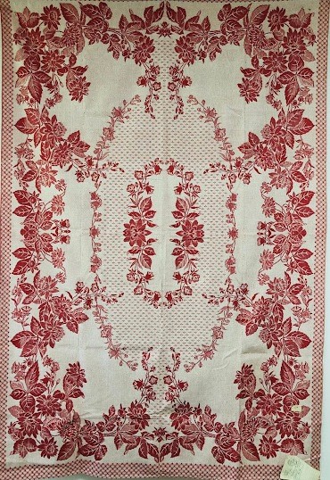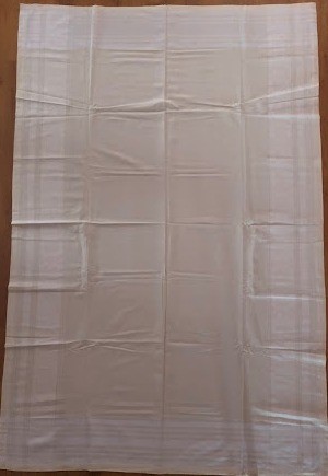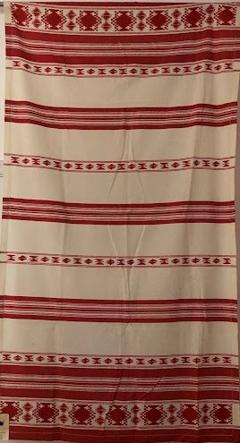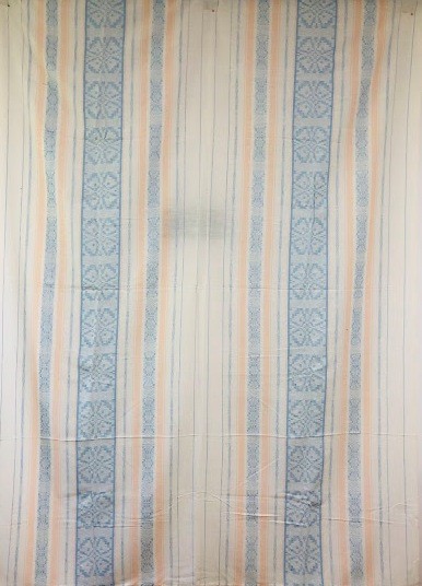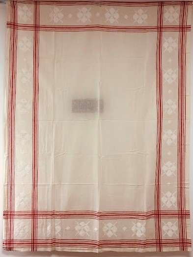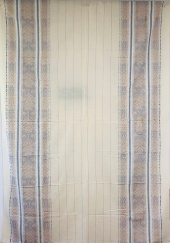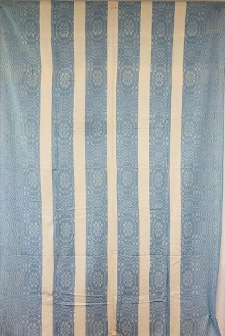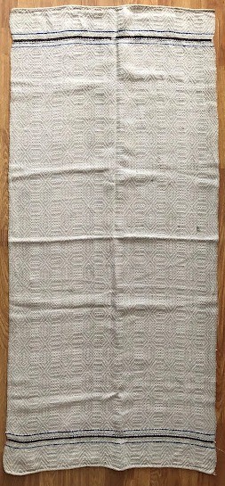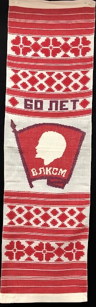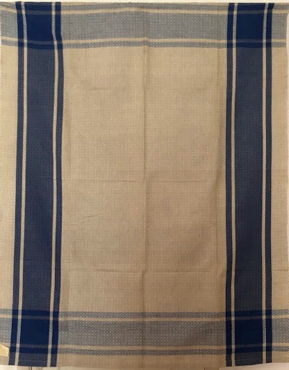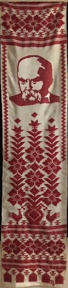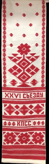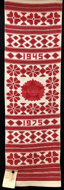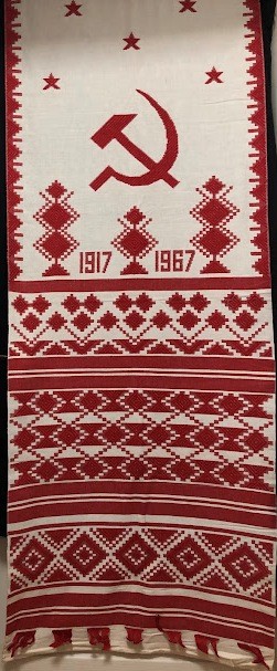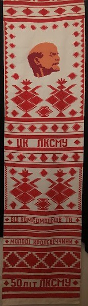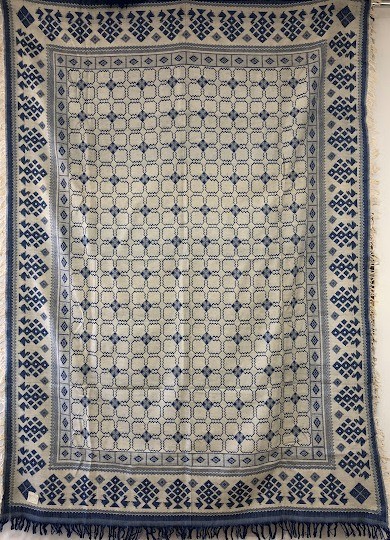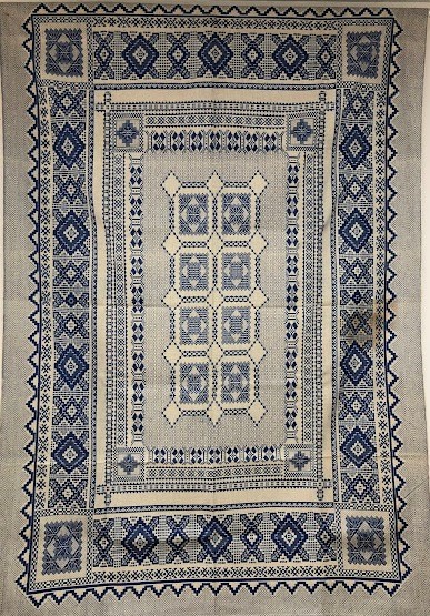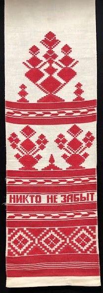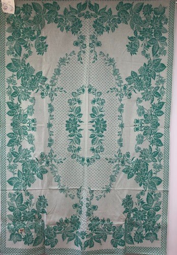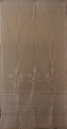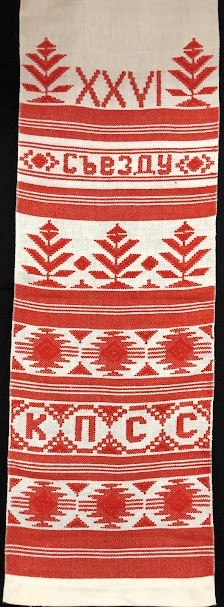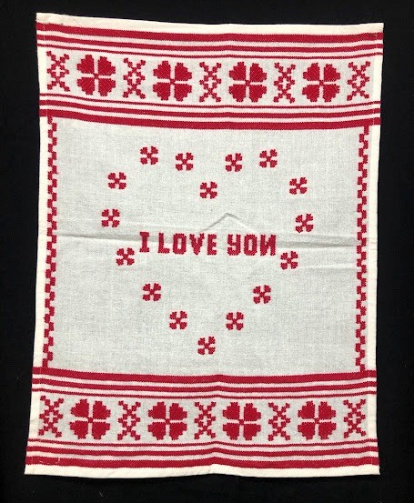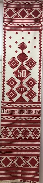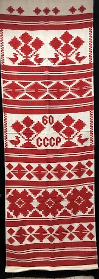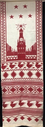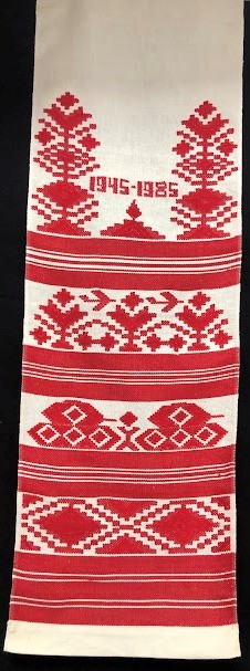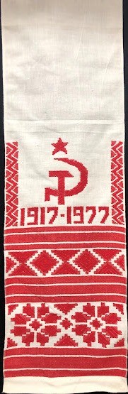 Серветка. Виготовлено наприкінці ХХ століття на кролевецькій фабриці художнього ткацтва. Полотно біле бавовняне, орнамент вишито на швейній машинці шовковими блакитними нитками. Композиція малюнка серветки складається з вишитого квіткового орнаменту. Підрублено на швейній машинці з усих сторін.