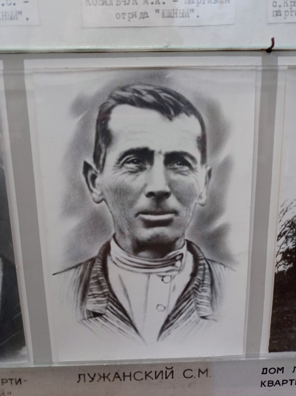 Будьонівка партизана Лужанського Я.М., головний убір, червоноармійський сукняний шолом особливого зразка. Зпереді пришита червона пятикутна зірка.