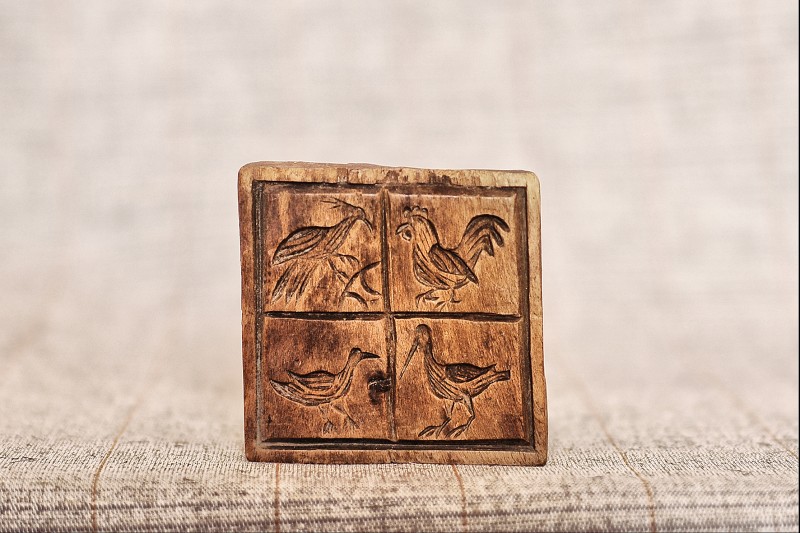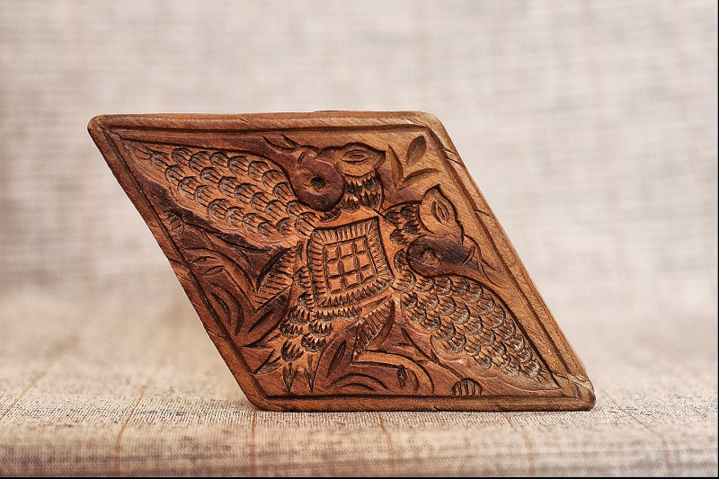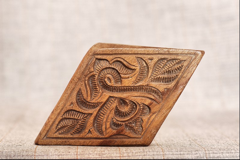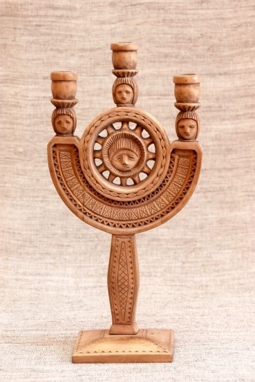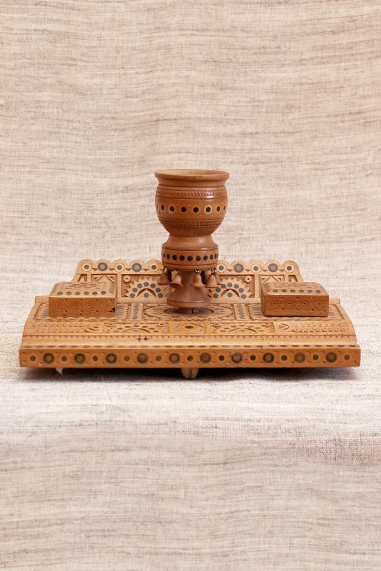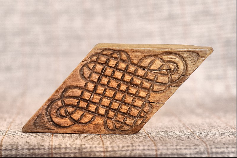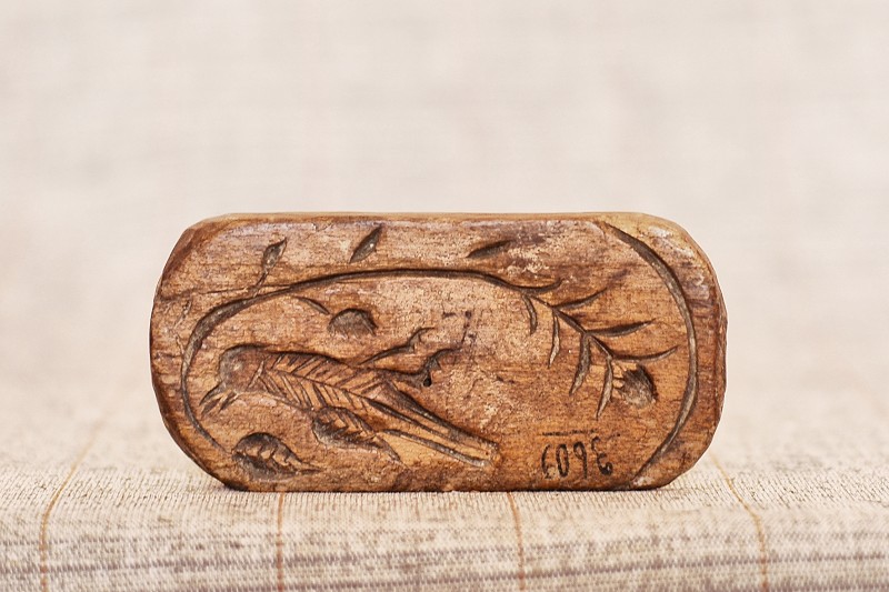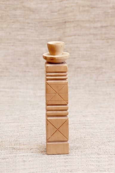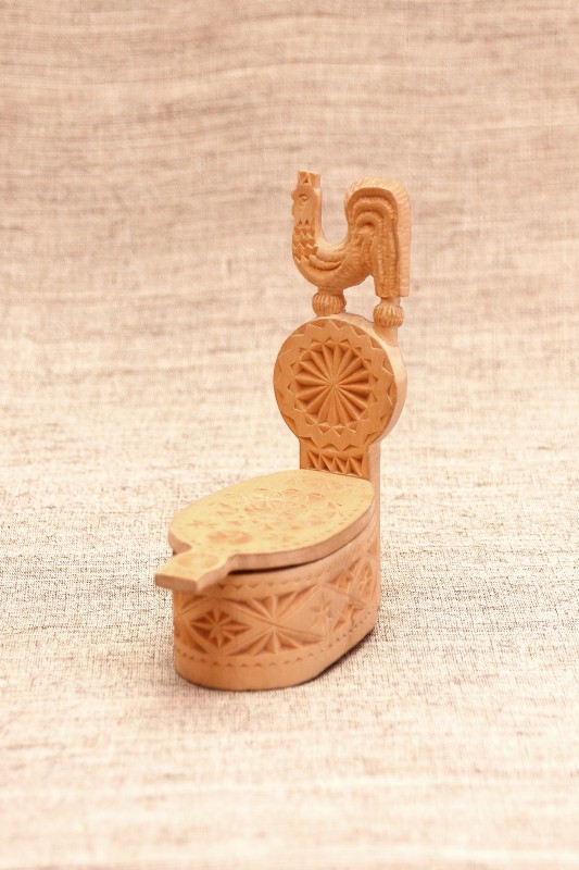 Сільничка являє собою умовне зображення коня, прикрашене геометричним орнаментом , який розміщено на голові , боках і гриві , прикріпленої до спини. Різьблення тригранно-виїмчасте.