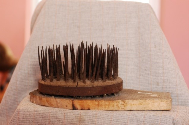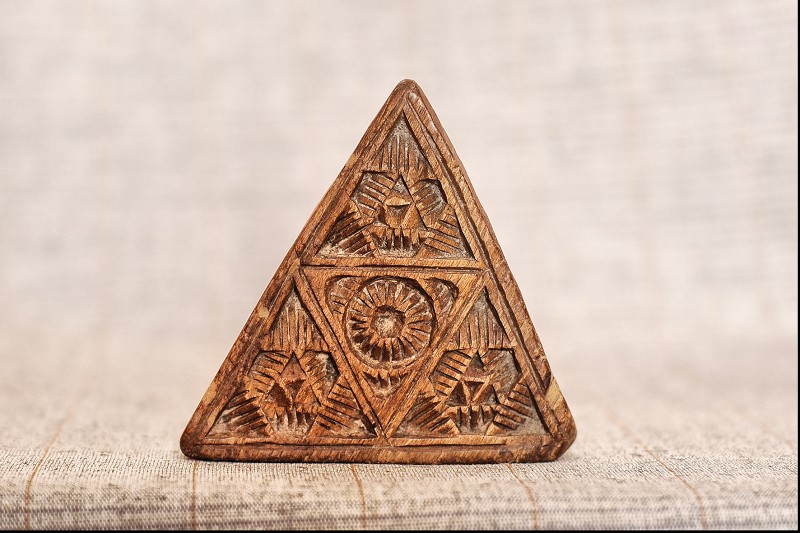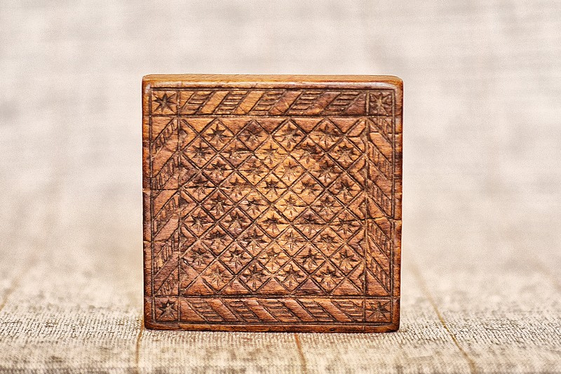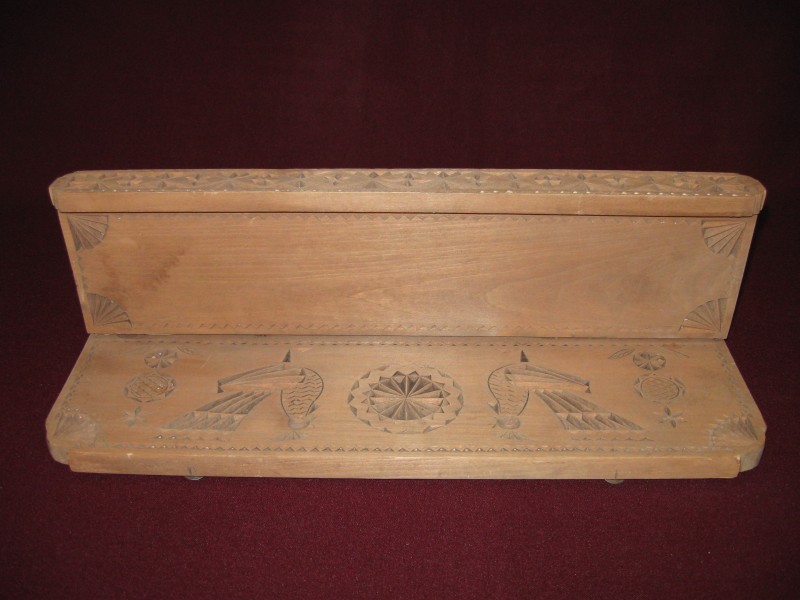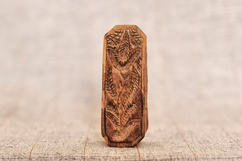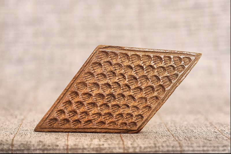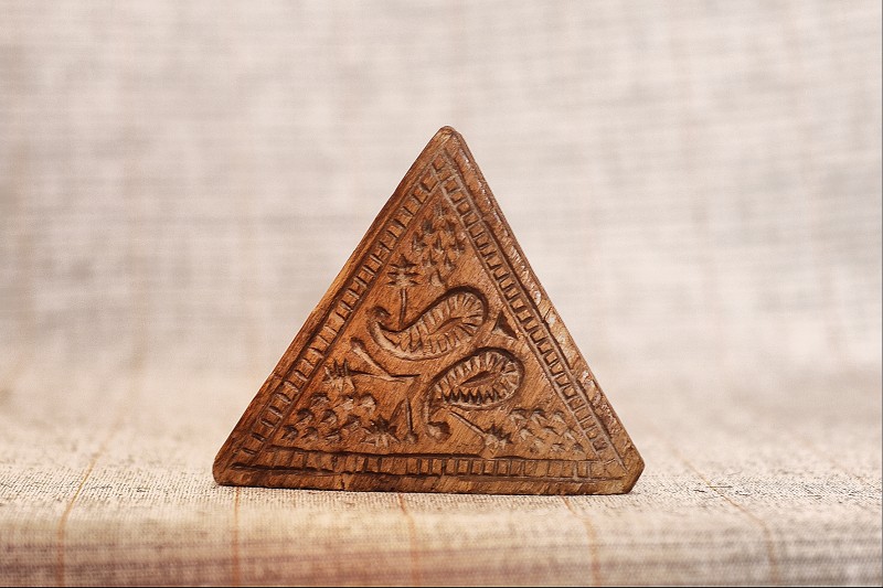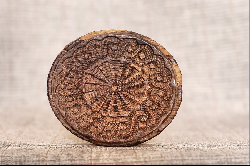 Сільничка являє собою умовне зображення коня, прикрашене геометричним орнаментом , який розміщено на голові , боках і гриві , прикріпленої до спини. Різьблення тригранно-виїмчасте.
