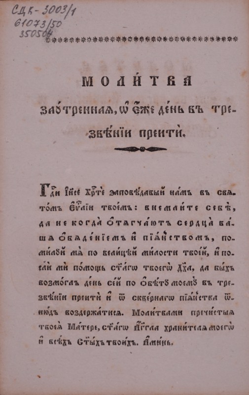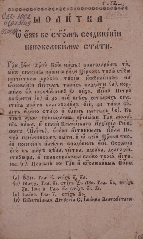 Арк. 1 – заголовок на 12 рядках 10 шрифтами. У 5 рядку літери об’ємні, у 6 – з обвідкою, у 14-12 – петит. Під заголовком горизонтальний роздільник. Нижче – вихідні дані: «Вѣ Перемышли, Тѵпомъ руск. Собора Крылошанъ. 1853». Арк. 1 зв. – епіграф із псалмів (1 рядок). Арк. 2-3 зв. – вірш із 9 12-ти й 16-ти рядкових й 8-рядкових строф. Після тексту (арк. з зв.) рослинна віньєтка. Внизу, під горизонтальним роздільником, напис петитом: «Анд. Тучковскій, Тѵпографъ». Арк. 4 без тексту. Друк одноколірний чорною фарбою. Гражданський, церковнослов'янський шрифти. Оправа: 1-й прим. склеєний по корінцю рожевим папером. Зміст: вітальний вірш віденських семінаристів Г. Яхимовичу з нагоди іменин.