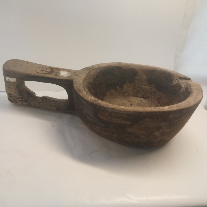 Стілець має ознаки зносу, видно подряпини та потертості. Сидіння складається з окремих дерев"них дощок. Стілець скріплений металевими кутовими кронштейнами.