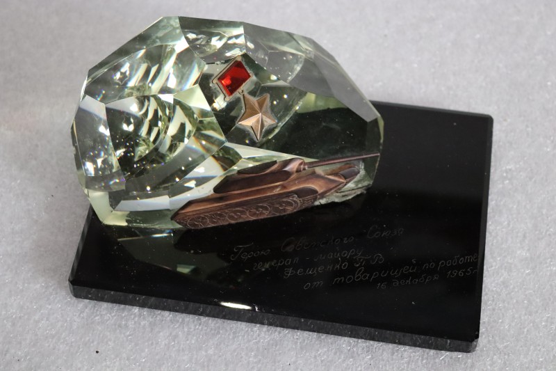 Свідоцтво з відзнакою Пронкіна І.І. Аркушів 2, сторінки 4, сторінки з’єднані за допомогою ледерину, текст друкарський (шрифт синього і червоного кольору) та рукопис пір’яною ручкою (чорнило чорне і фіолетове). Мова російська. На першій сторінці (обкладинці) – напис друкованими літерами у два рядки «Университет/ марксизма-ленинизма», в нижній частині сторінки – напис «Харьков» (техніка тиснення). У верхньому лівому куті другої сторінки знаходиться штамп з зображенням п’ятикутної зірки і написом «Воинская часть/ 65143/ 5 июля 1954 г.». На сторінках 2-3 міститься інформація, що Пронкін І.І. з 1952 по 1954 рр. навчався в Харківському університеті марксизму-ленінізму при Харківському будинку офіцерів Радянської Армії і закінчив університет з відзнакою. Під текстом – підписи начальника військової частини 65143 полковника Ципцина і начальника вечірнього університету марксизму-ленінізму підполковника Лобакова. Підписи завірені круглою печаткою фіолетового кольору з зображенням герба Радянського Союзу, по колу – напис «Войсковая… 65143». На четвертій сторінці зображення і літери відсутні.