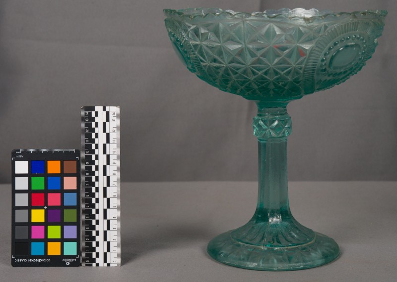 Овальна сервірувальна тарілка з фаянсу, прикрашена широким смарагдово-зеленим кантом та тонкою золотистою облямівкою. Такі вироби випускалися в середині XX століття на Будянському фаянсовому заводі. Подібні блюда використовувалися для подачі риби, закусок або салатів і часто зустрічалися в столових сервізах радянського періоду.