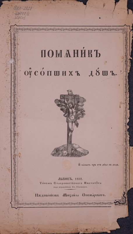 Въ вічную память Іосифу Левицкому, сочинителю первой руской Граматики, бывшому Учителю св. Богословия и руского язика въ Перемышли, Пароху Нагуєвичъ и пр., усопшому в Бозі на дню 24. Мая 1860. Пісня составлена зъ поводу поминального богослуженія, отправленого за упокой души его въ Львовской Ставропигійской Церкви дня 17 Юнія 1860.