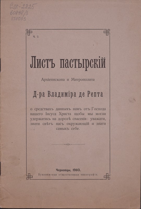 Звернення до духовенства. - Львів: друкарня Ставропігійського інст., 1860, 8 с.
