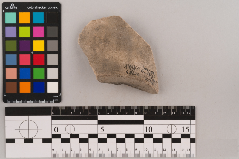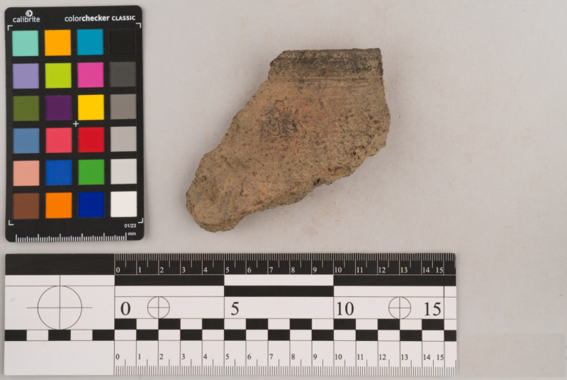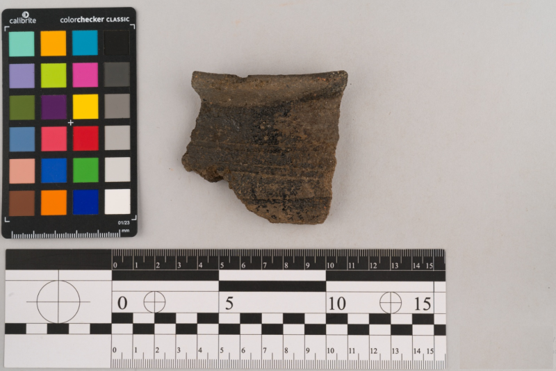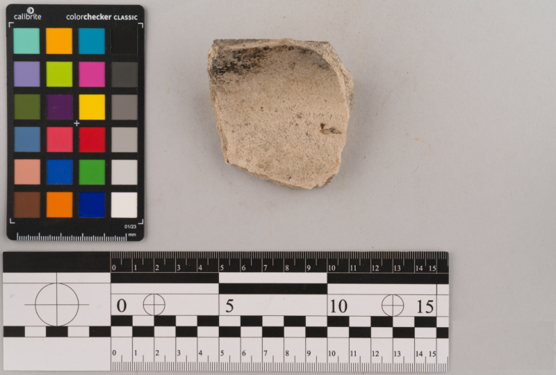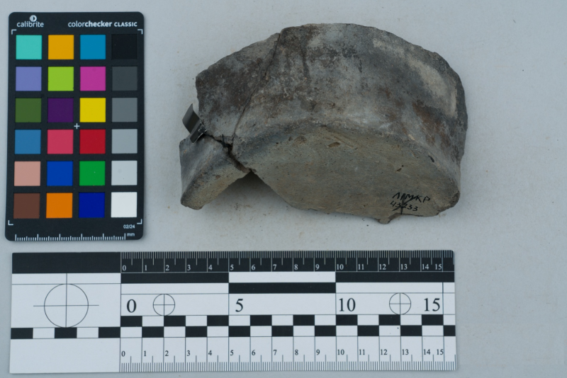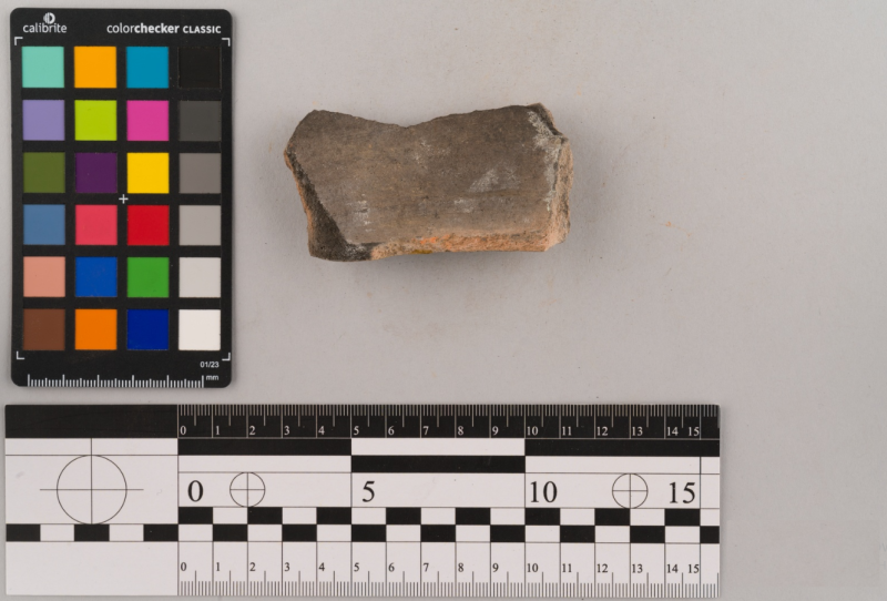 Вінчик фрагмент, сірого кольору, складнопрофільваний орнамент відсутній, поверхня гладенька.