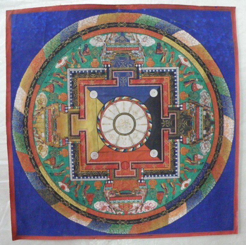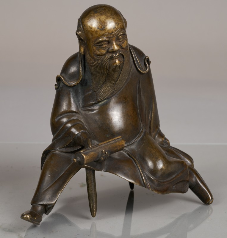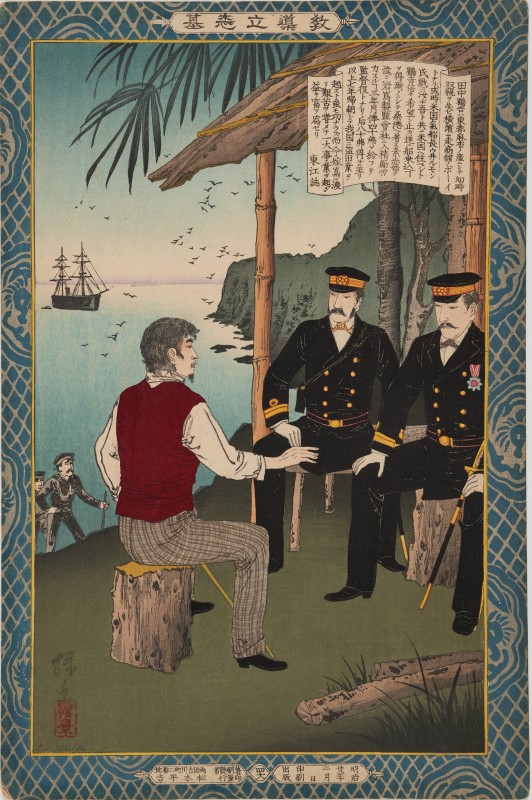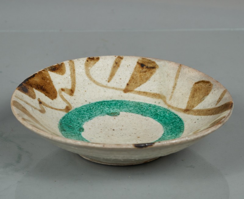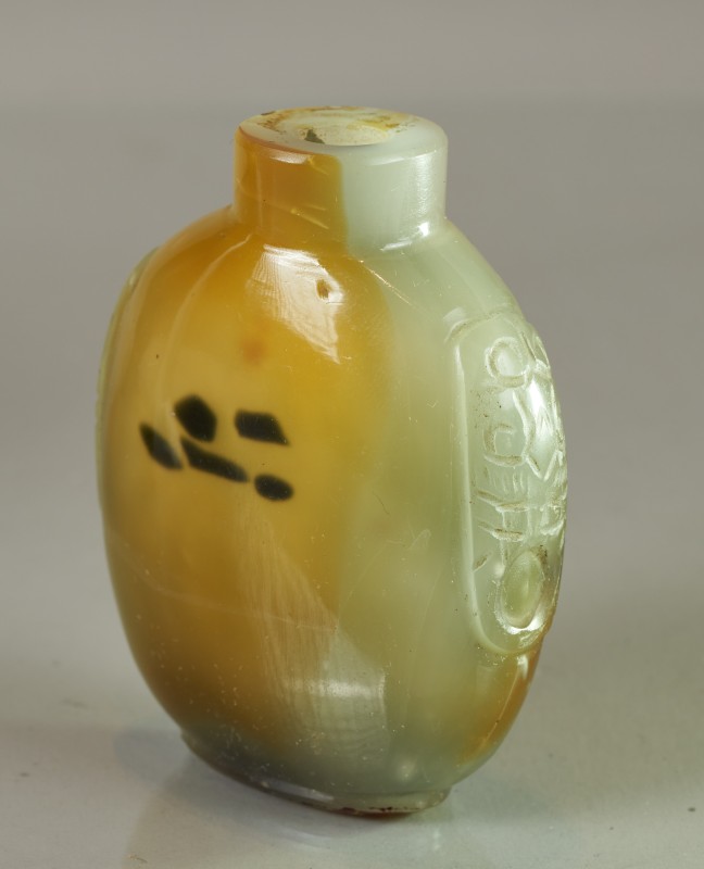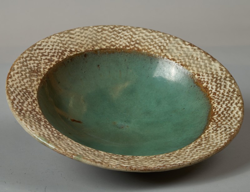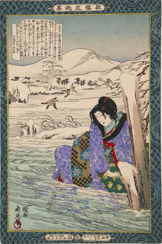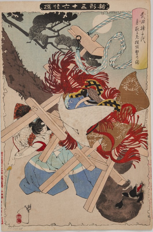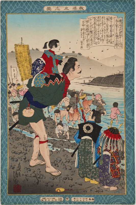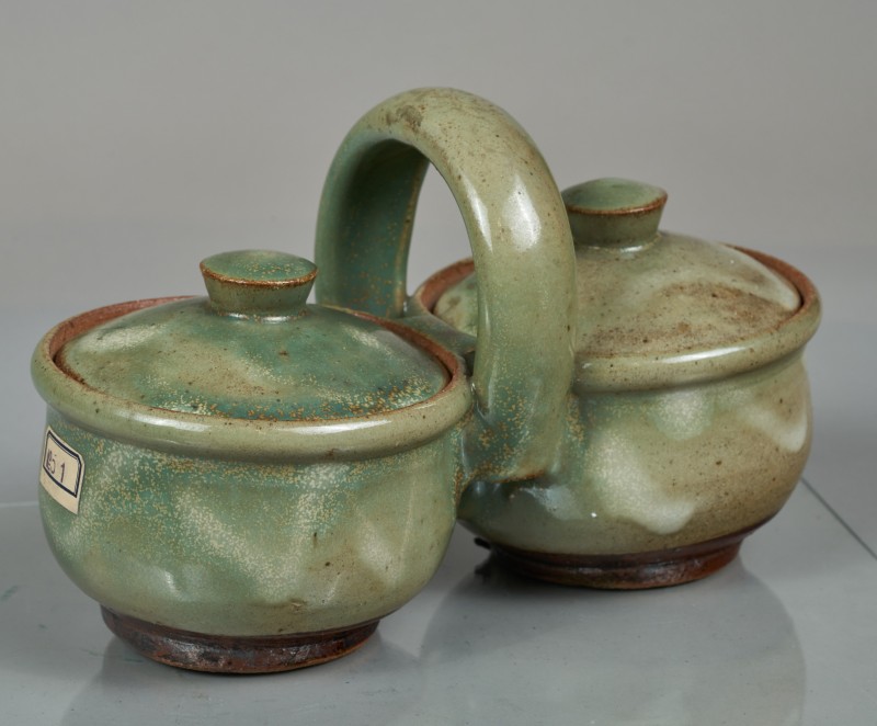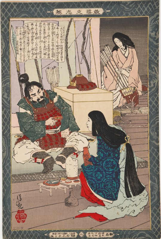 Праворуч, під жовтими колосками рису, що звисають у ліву сторону, зображено, знизу ліворуч за діогоналлю, зелену сарану. Внизу праворуч - вертикальний стовпчик ієрогліфів, написаних чорною тушшю і квадратна червона печатка - Затворник Му, що підтверджує авторство Ці Байші (1864-1957).