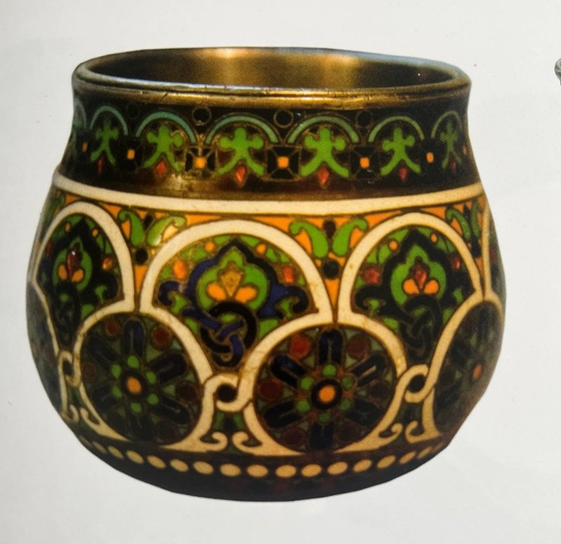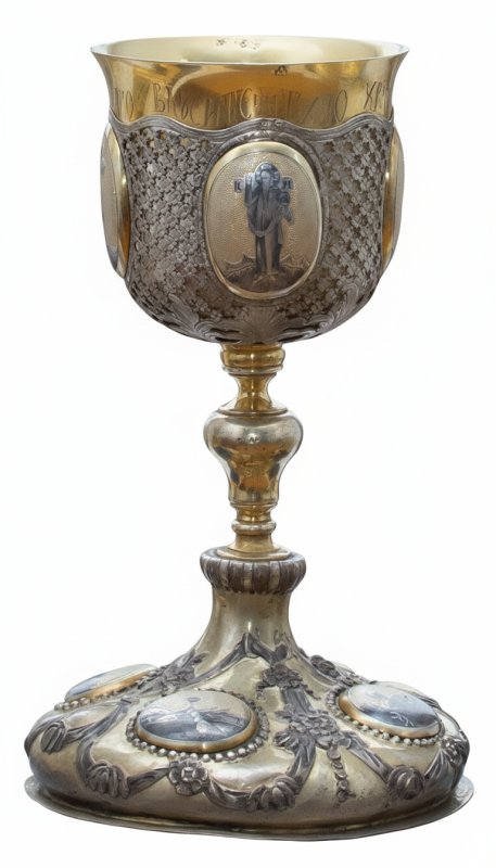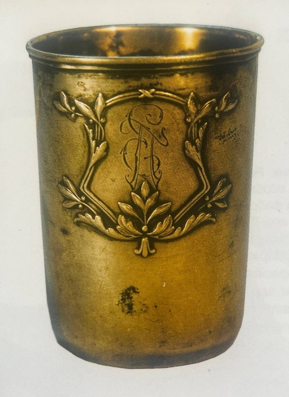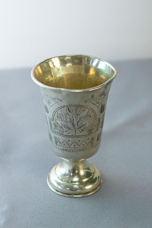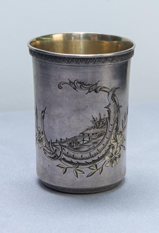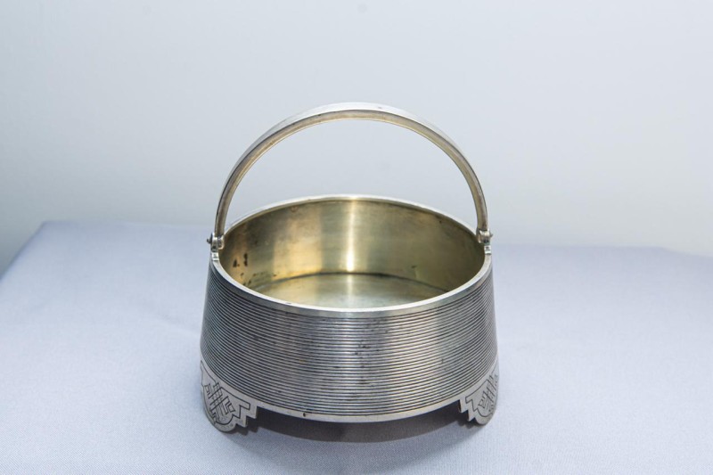 Столове приладдя з ручкою має 3 загострені зубці однакового розміру. Ручка вита, з потовщенням біля основи і в кінці. Клейма: в овалі жіноча голова в кокошнику праворуч, у квадраті літери «И/М».