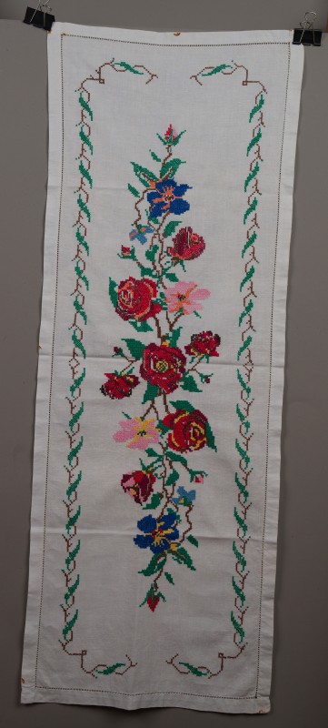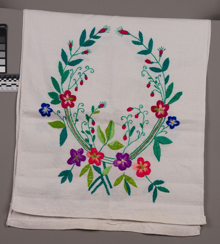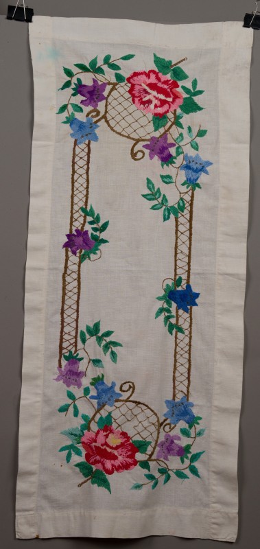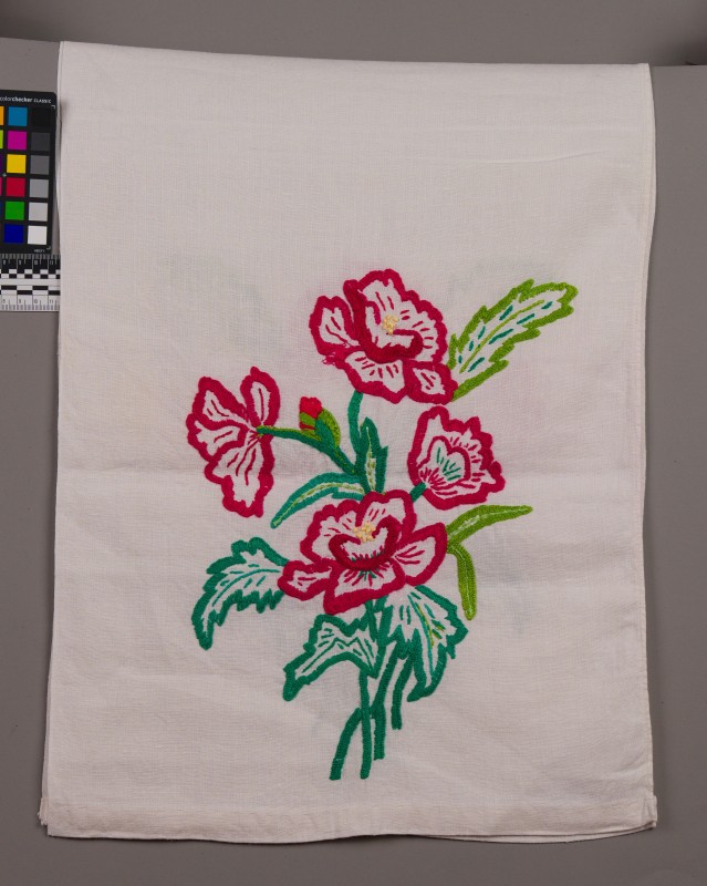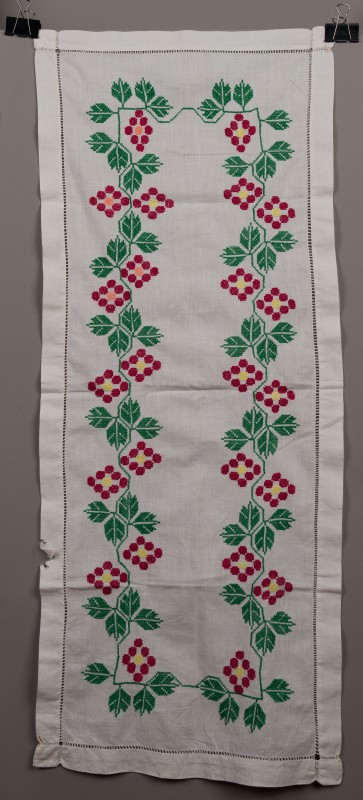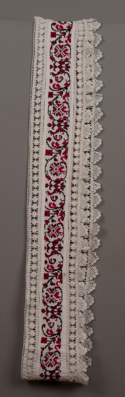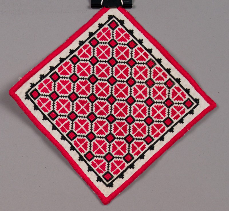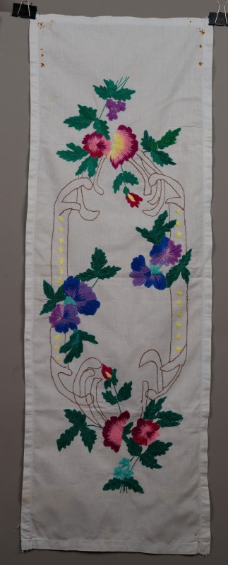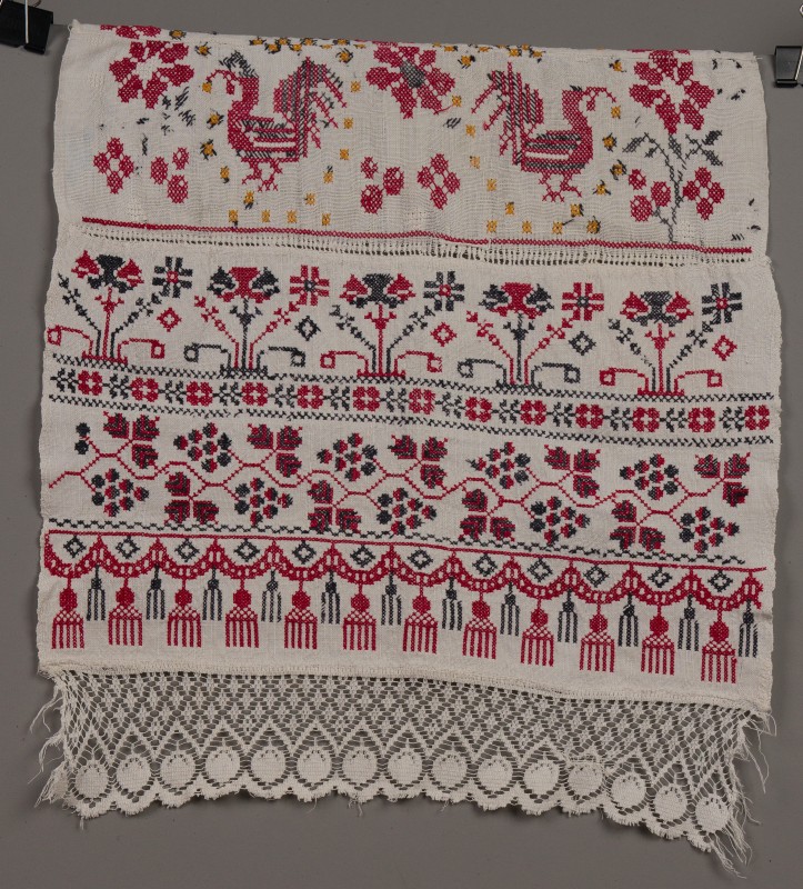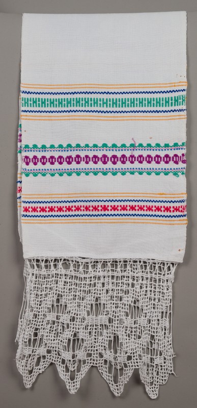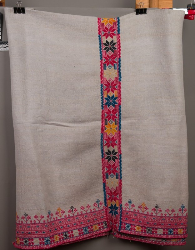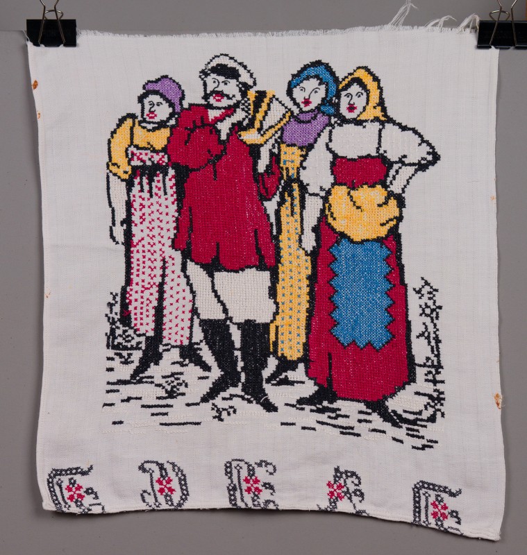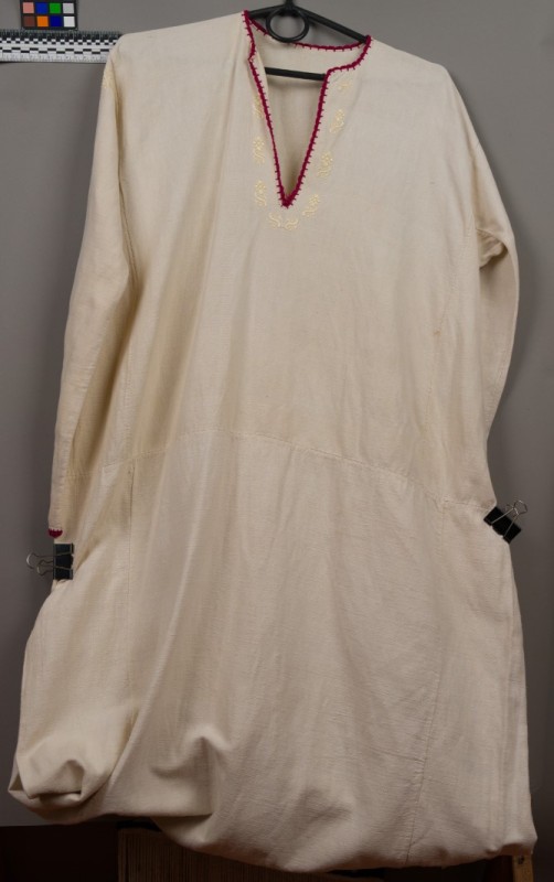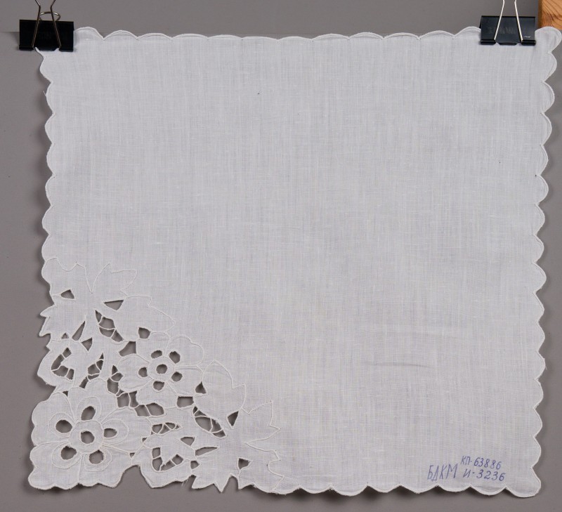 Жилет- коротка безрукавка з чорної вовняної тканини, вишита гладдю і стеблистим швом, зображує стибілізовані квіти нитками, муліне зеленого, червоного, жовтого, синього кольорів. Застібка на ліву сторону на сім металевих кнопок. Підкладка- бавовна сірого кольру. Початок ХХ століття.