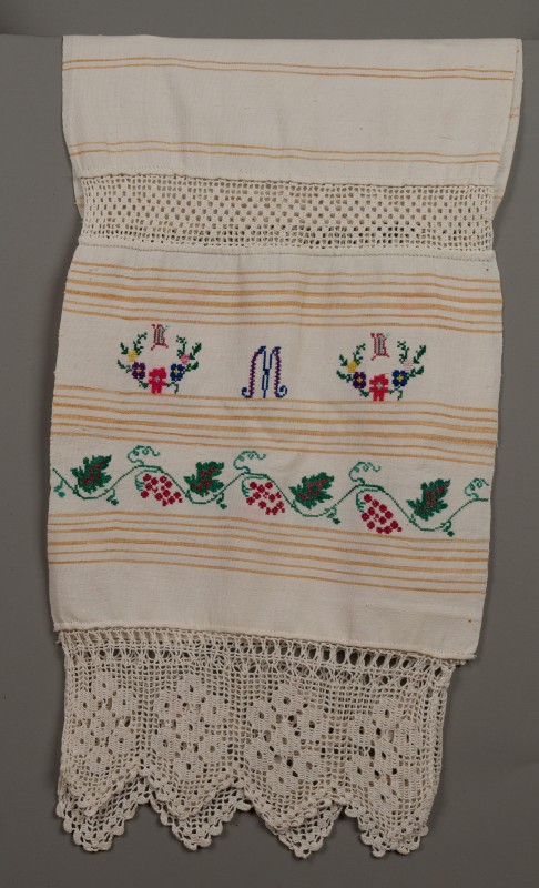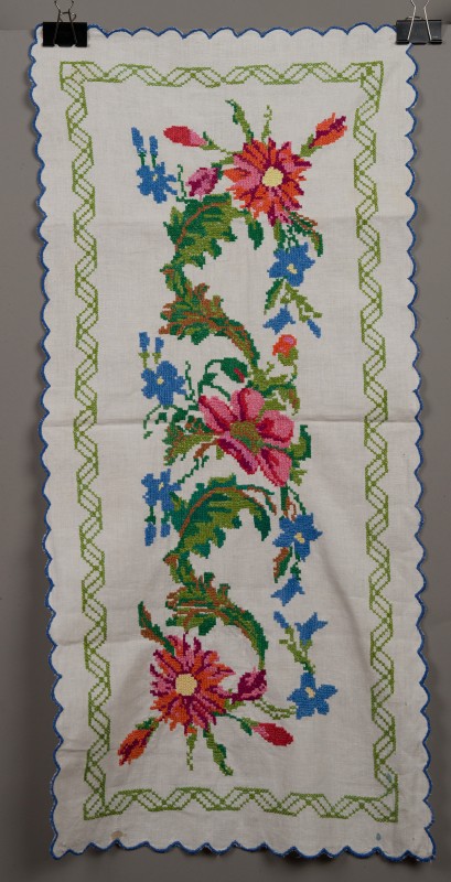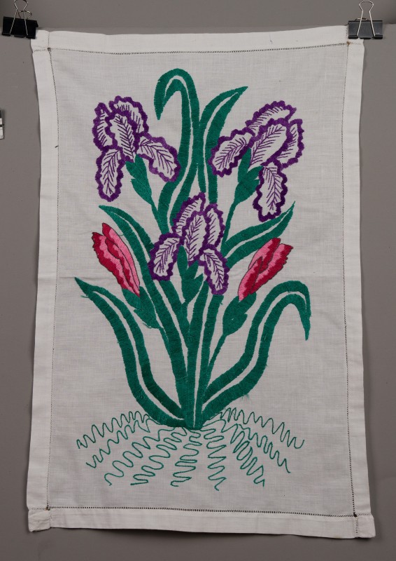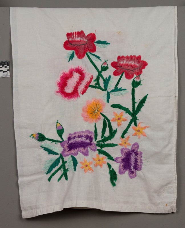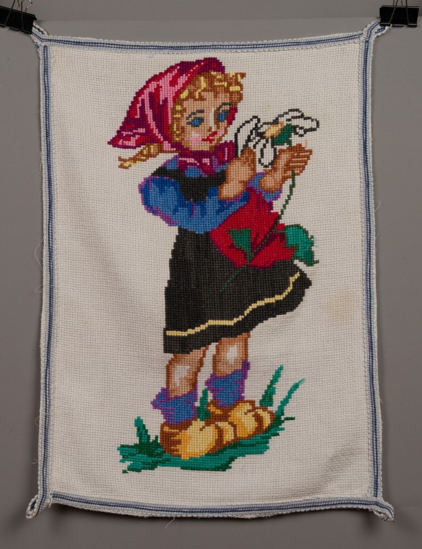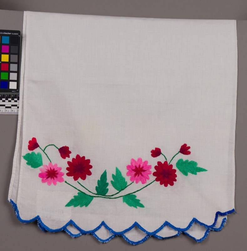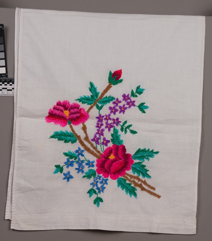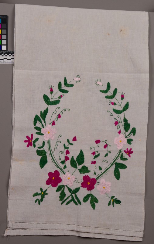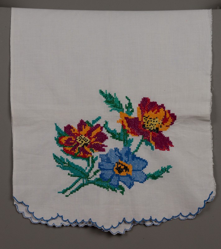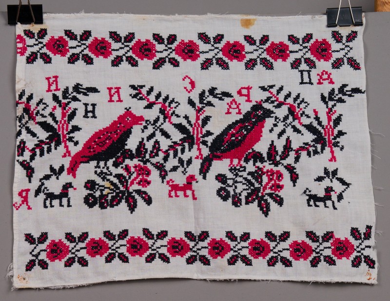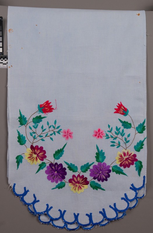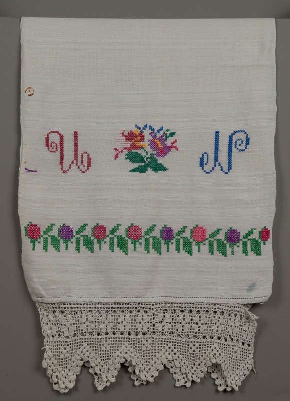 Жилет- коротка безрукавка з чорної вовняної тканини, вишита гладдю і стеблистим швом, зображує стибілізовані квіти нитками, муліне зеленого, червоного, жовтого, синього кольорів. Застібка на ліву сторону на сім металевих кнопок. Підкладка- бавовна сірого кольру. Початок ХХ століття.