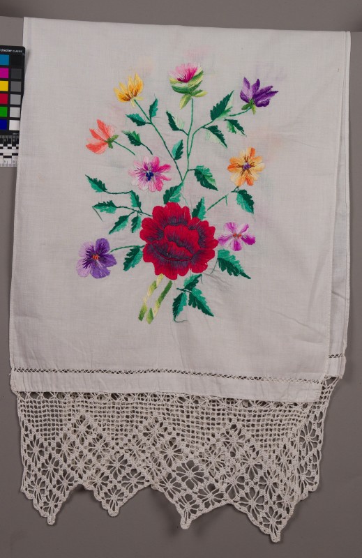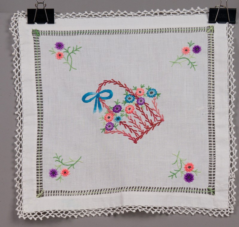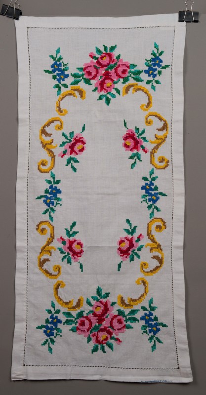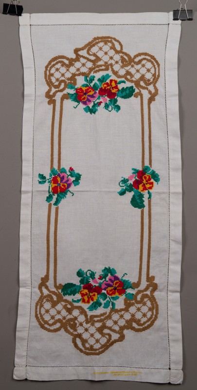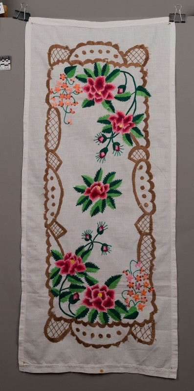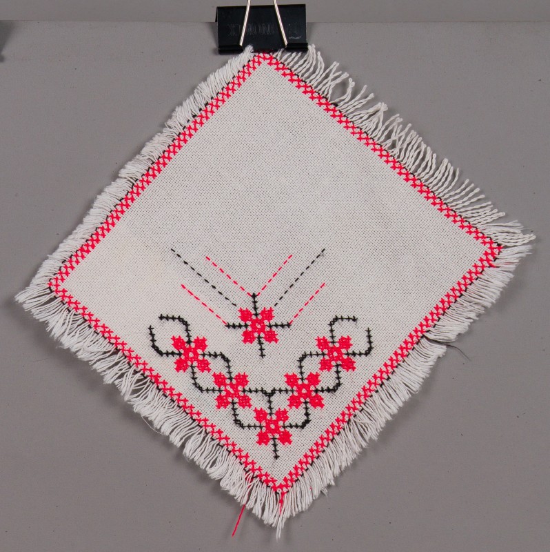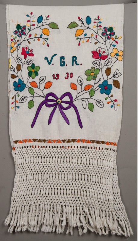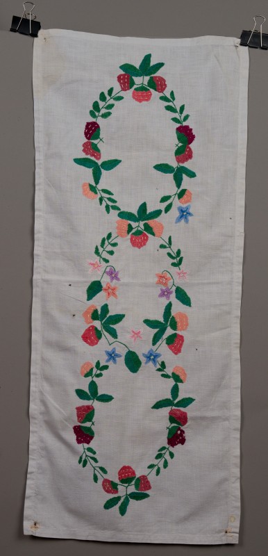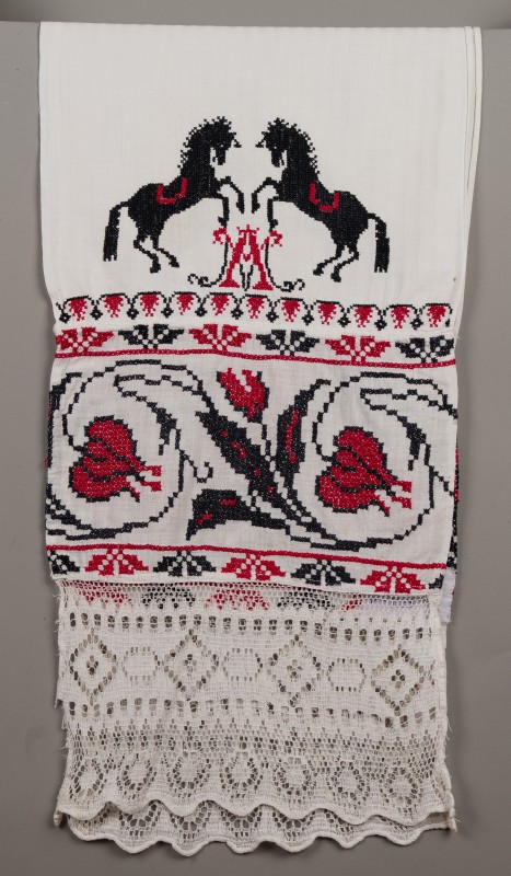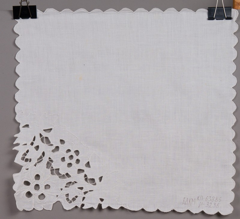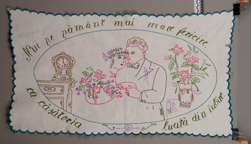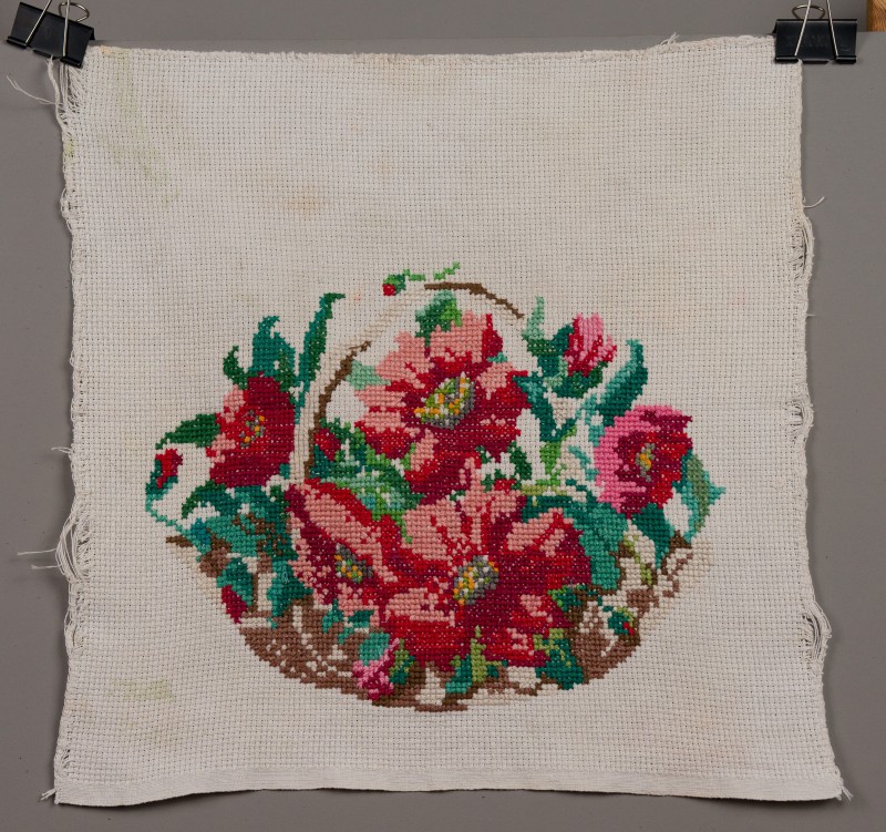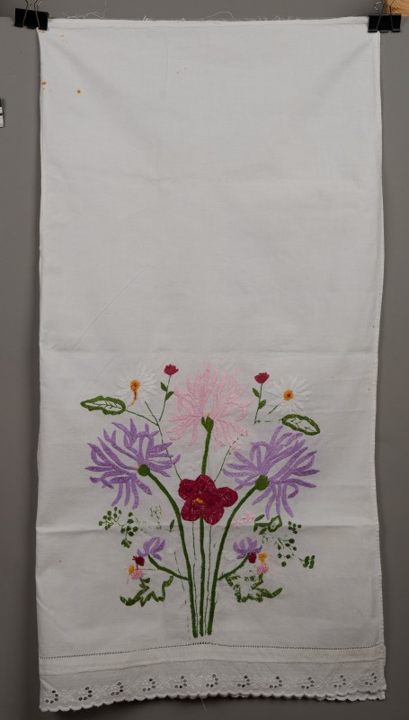 Жилет- коротка безрукавка з чорної вовняної тканини, вишита гладдю і стеблистим швом, зображує стибілізовані квіти нитками, муліне зеленого, червоного, жовтого, синього кольорів. Застібка на ліву сторону на сім металевих кнопок. Підкладка- бавовна сірого кольру. Початок ХХ століття.