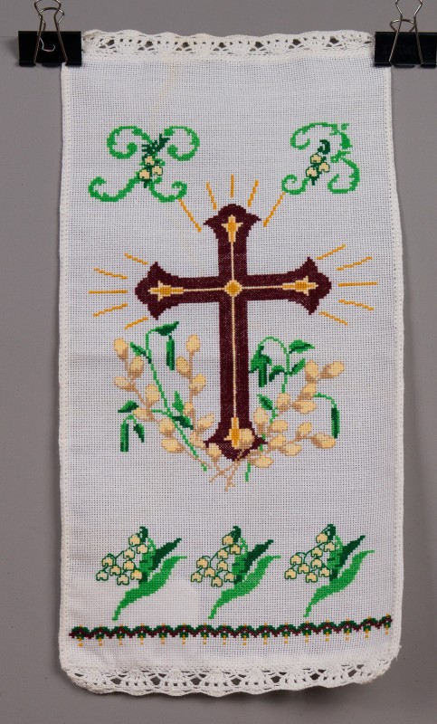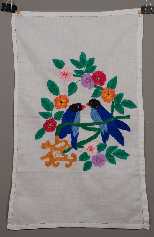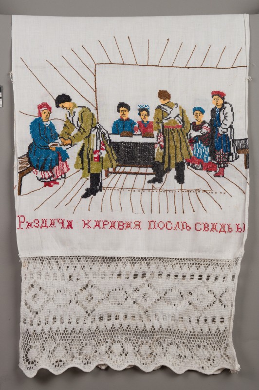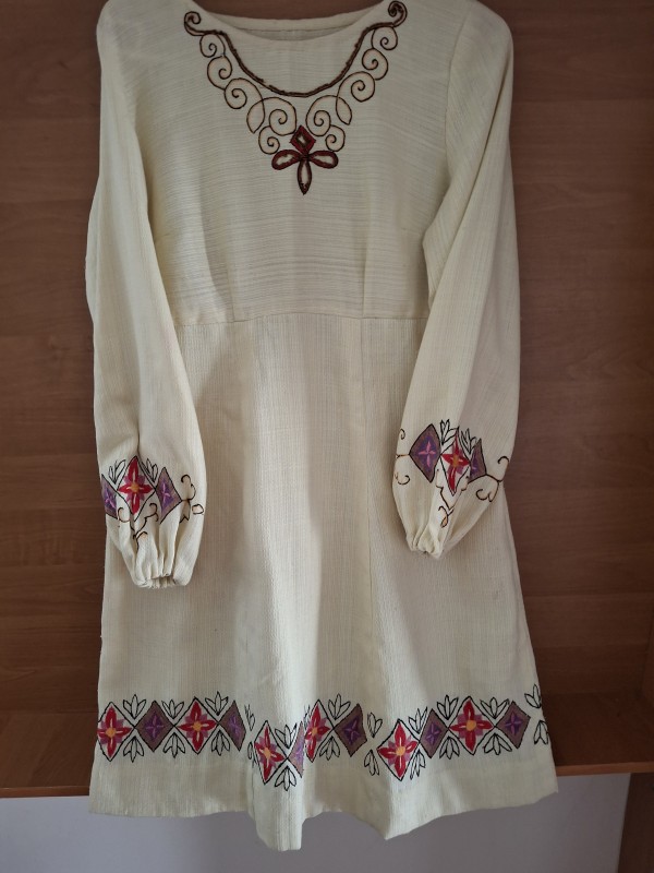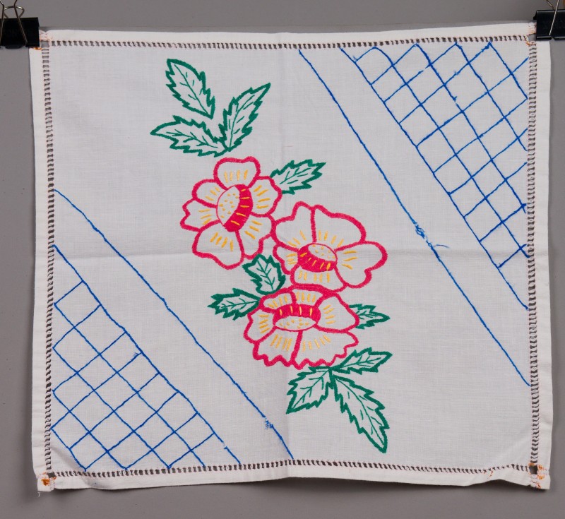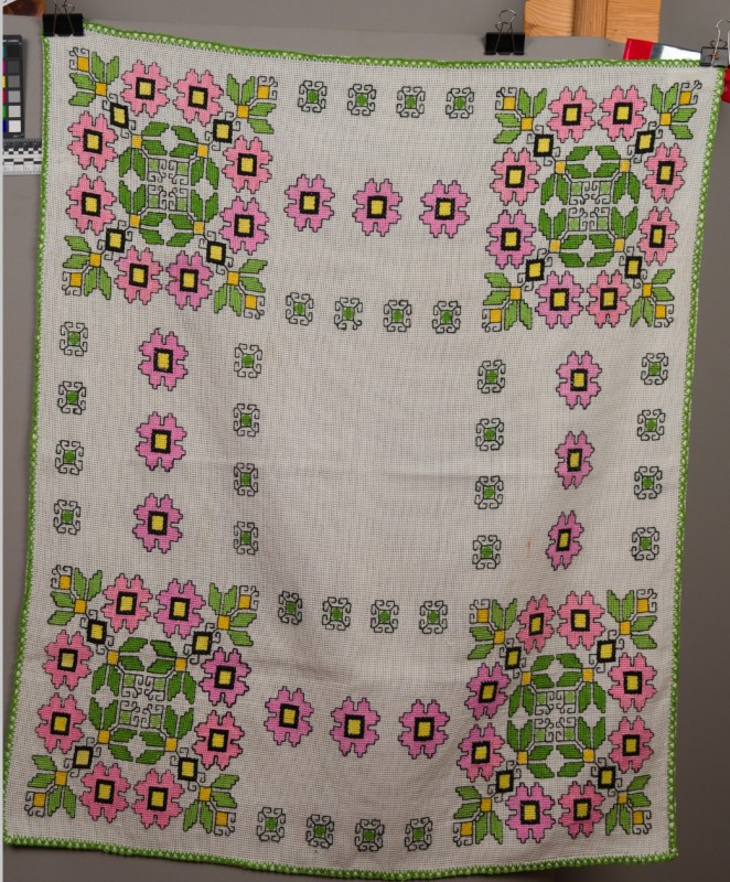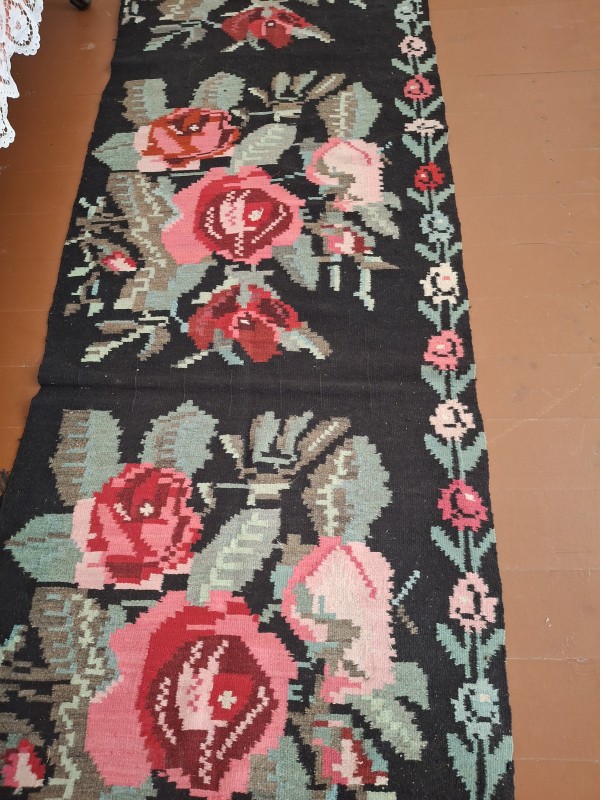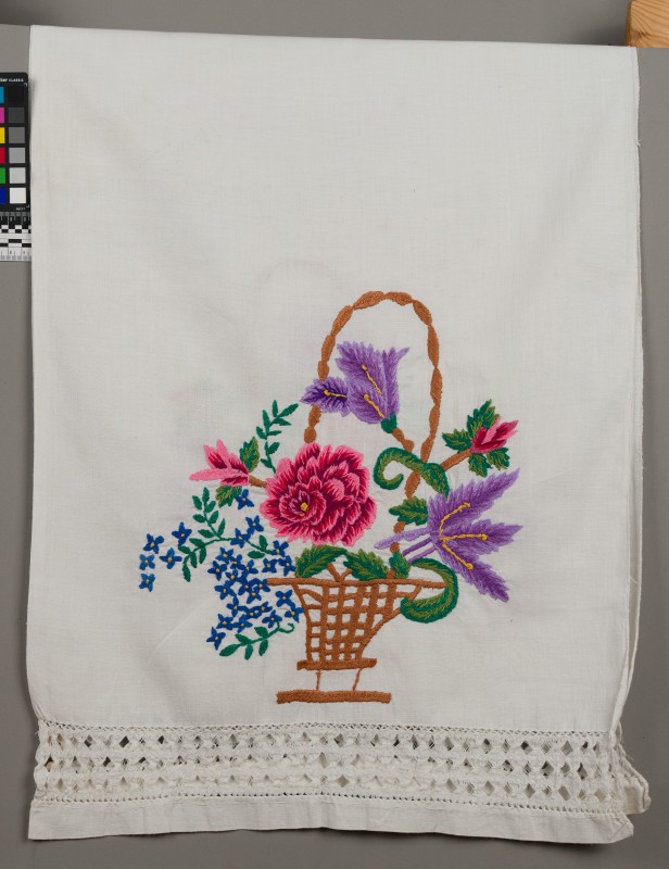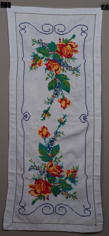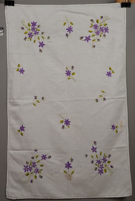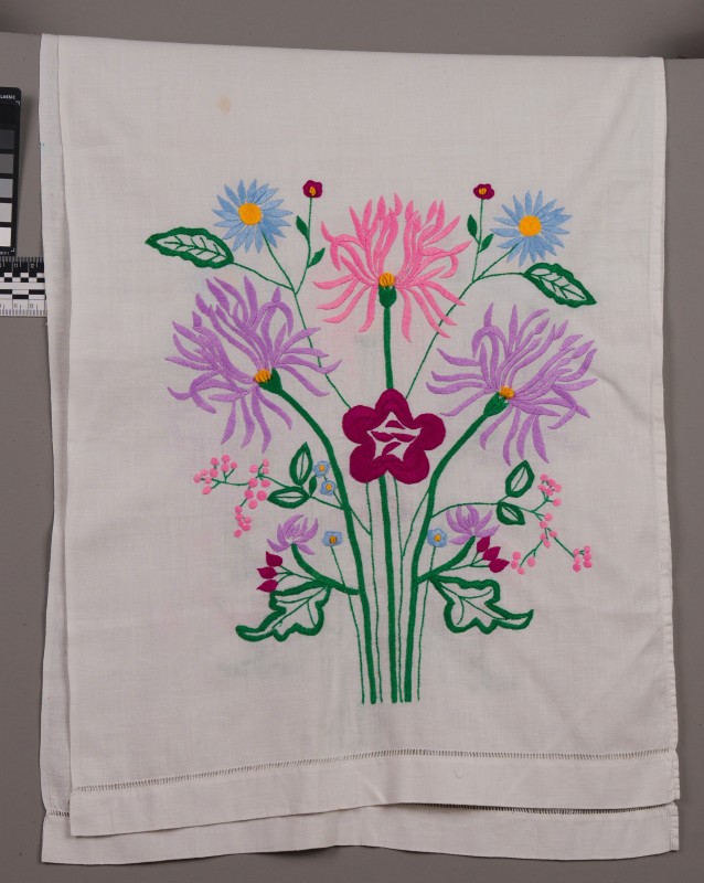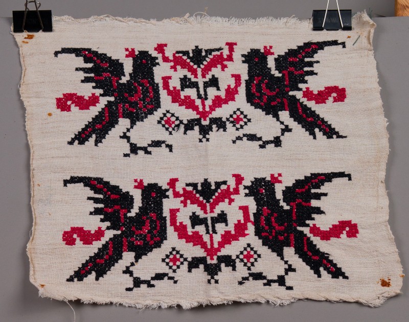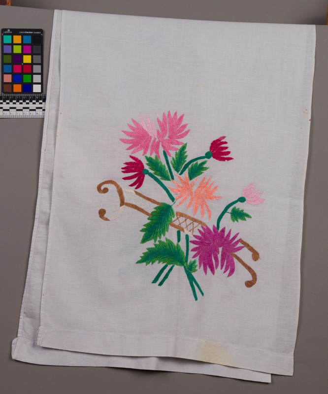 Жилет- коротка безрукавка з чорної вовняної тканини, вишита гладдю і стеблистим швом, зображує стибілізовані квіти нитками, муліне зеленого, червоного, жовтого, синього кольорів. Застібка на ліву сторону на сім металевих кнопок. Підкладка- бавовна сірого кольру. Початок ХХ століття.