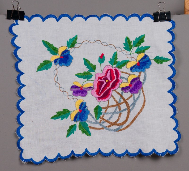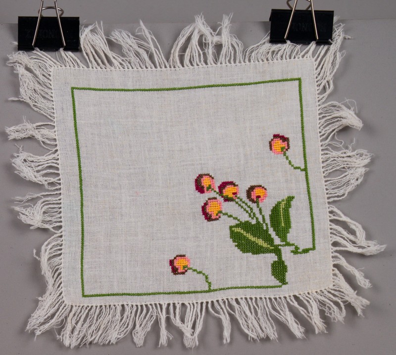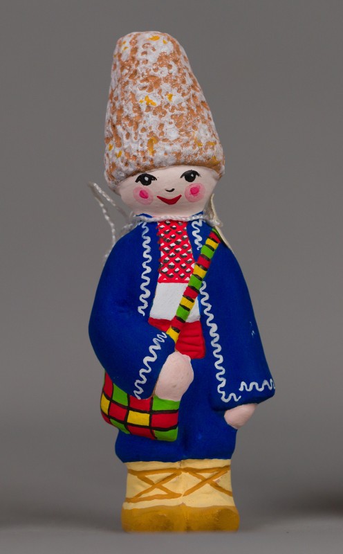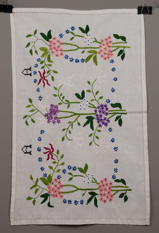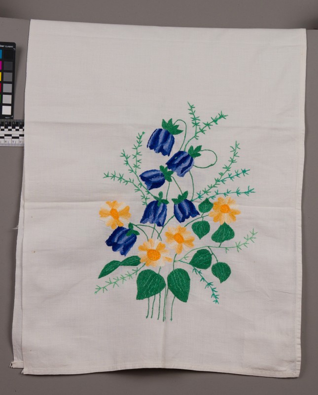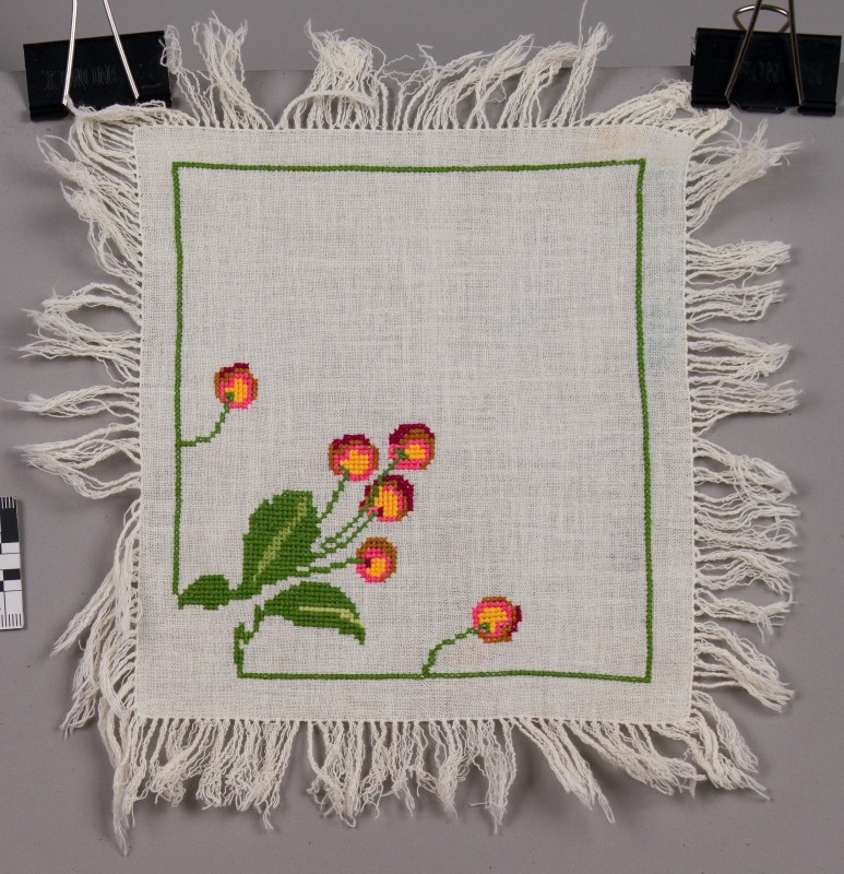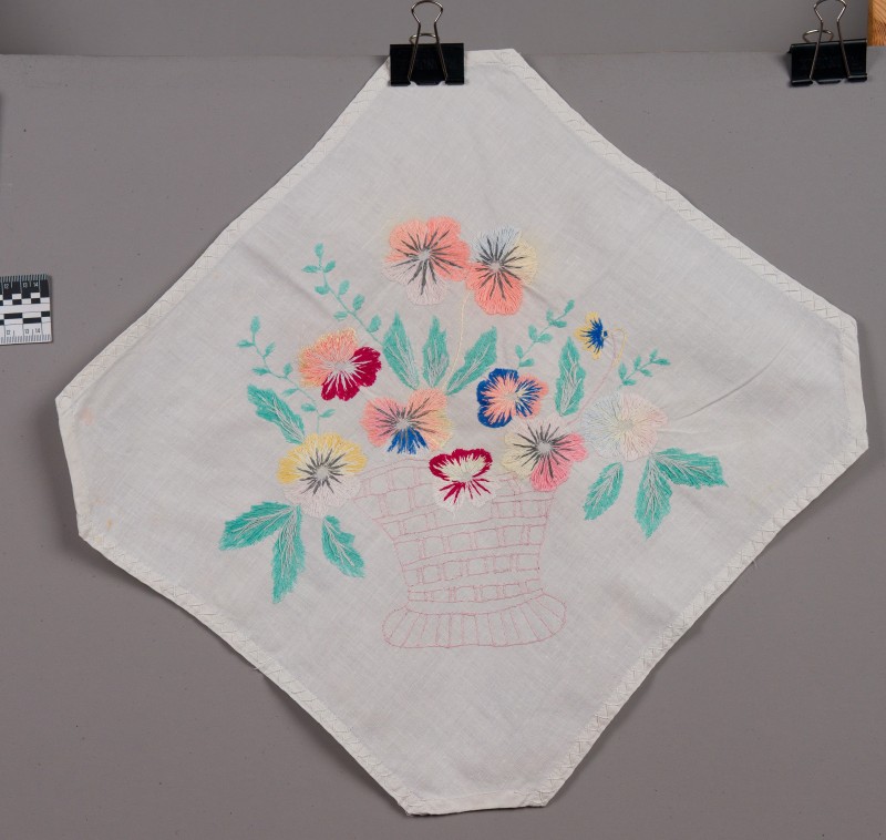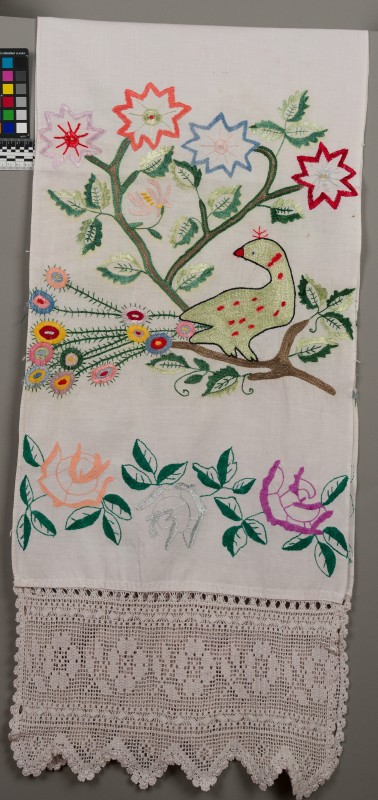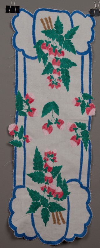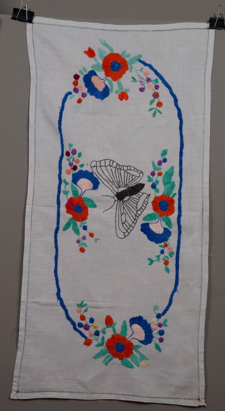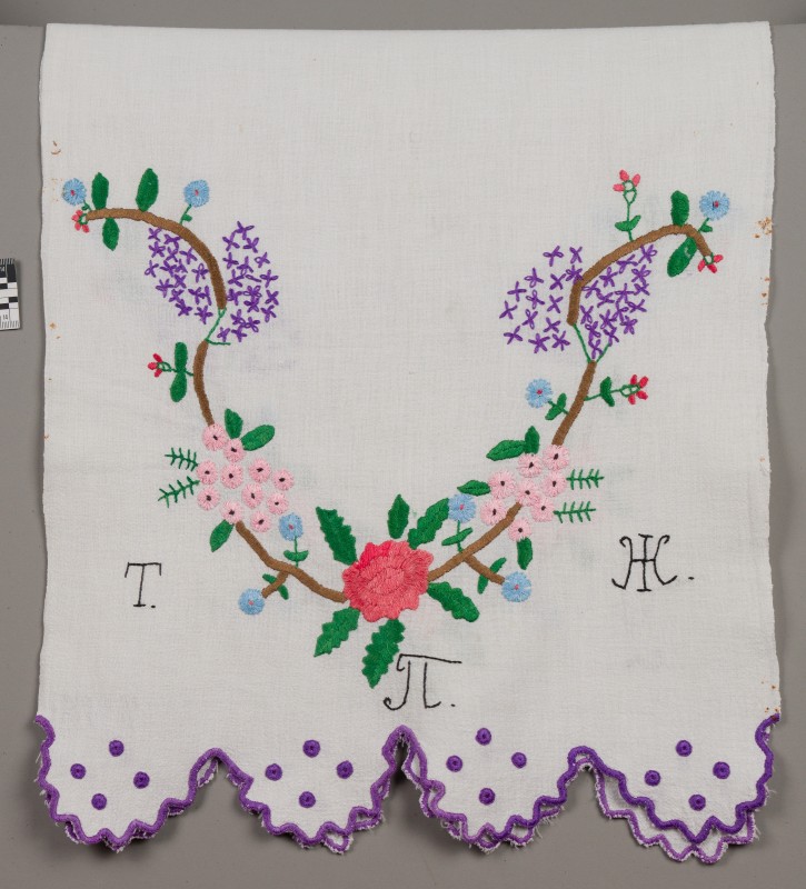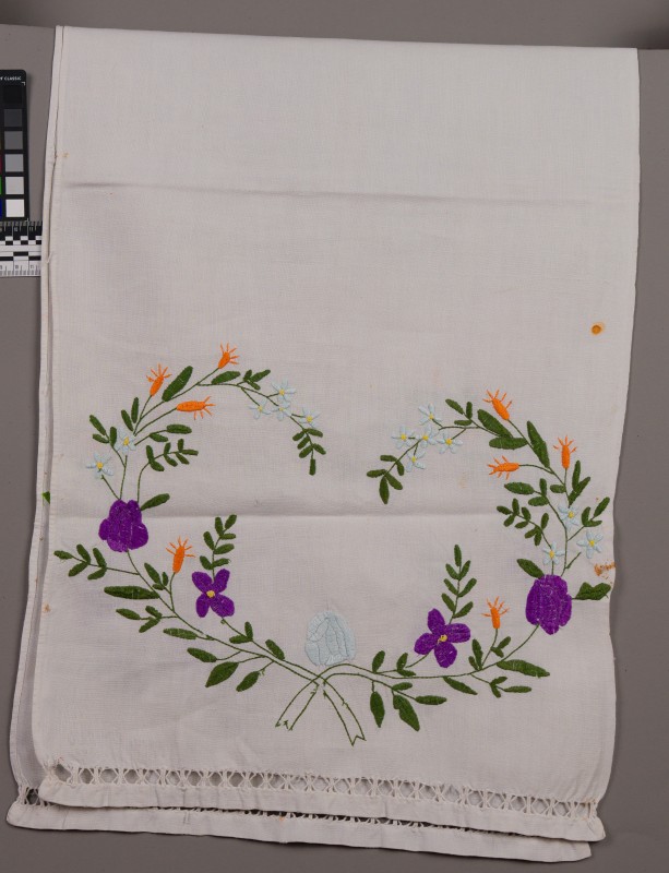 Жилет- коротка безрукавка з чорної вовняної тканини, вишита гладдю і стеблистим швом, зображує стибілізовані квіти нитками, муліне зеленого, червоного, жовтого, синього кольорів. Застібка на ліву сторону на сім металевих кнопок. Підкладка- бавовна сірого кольру. Початок ХХ століття.