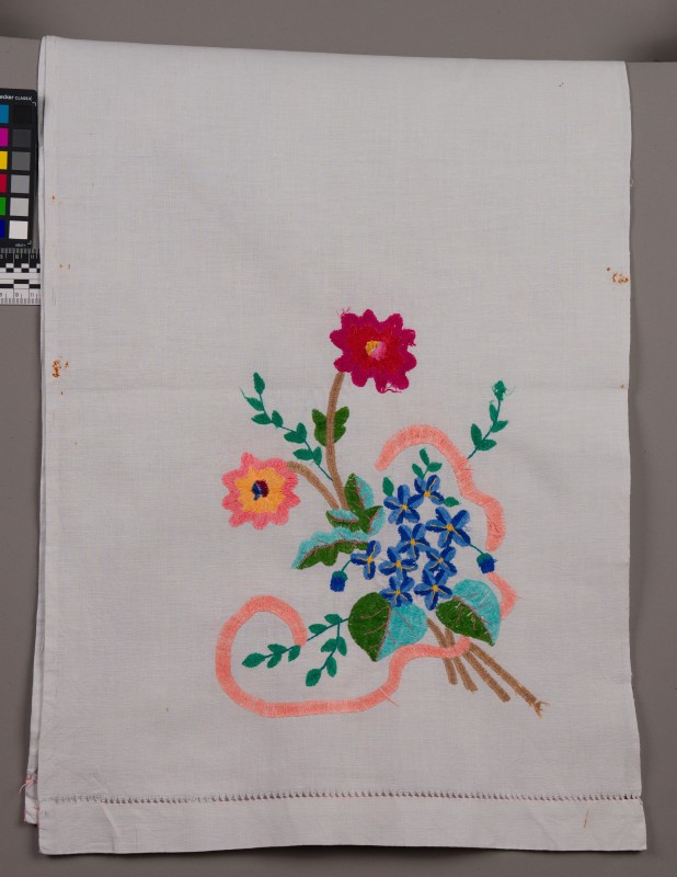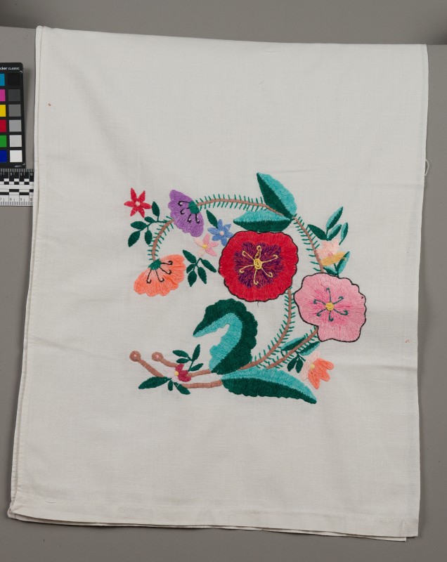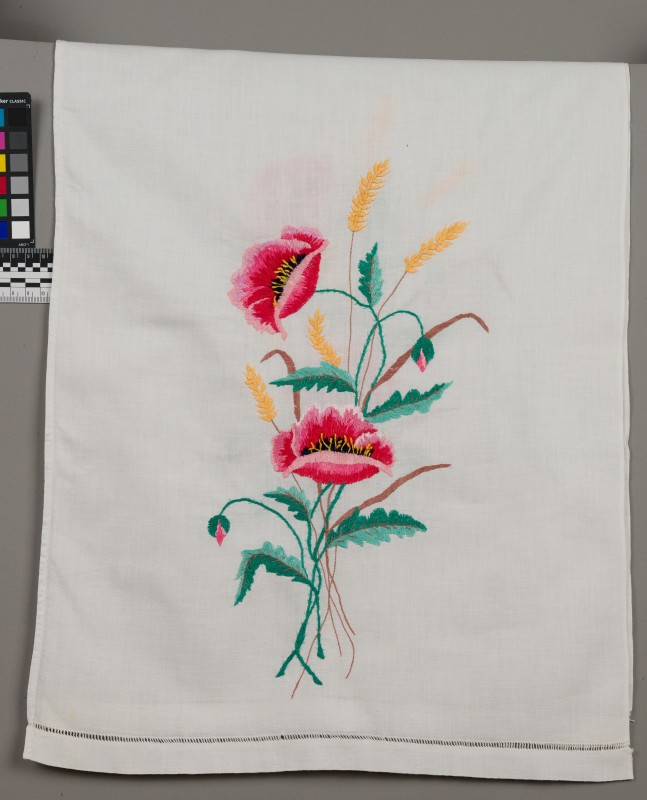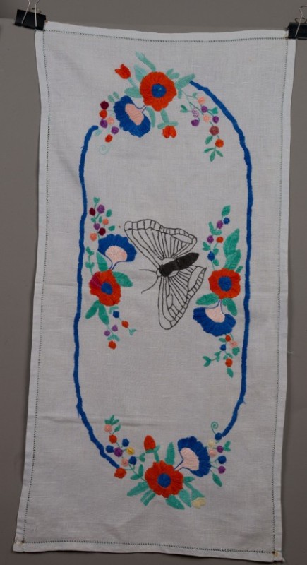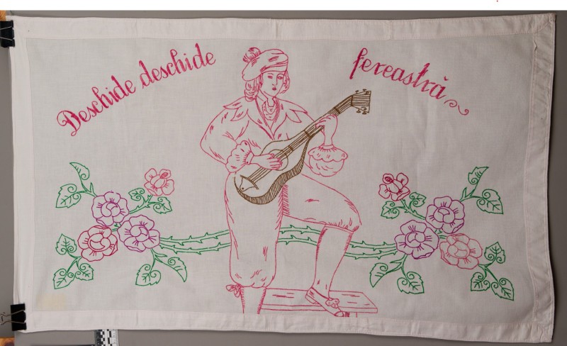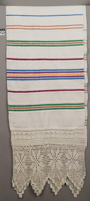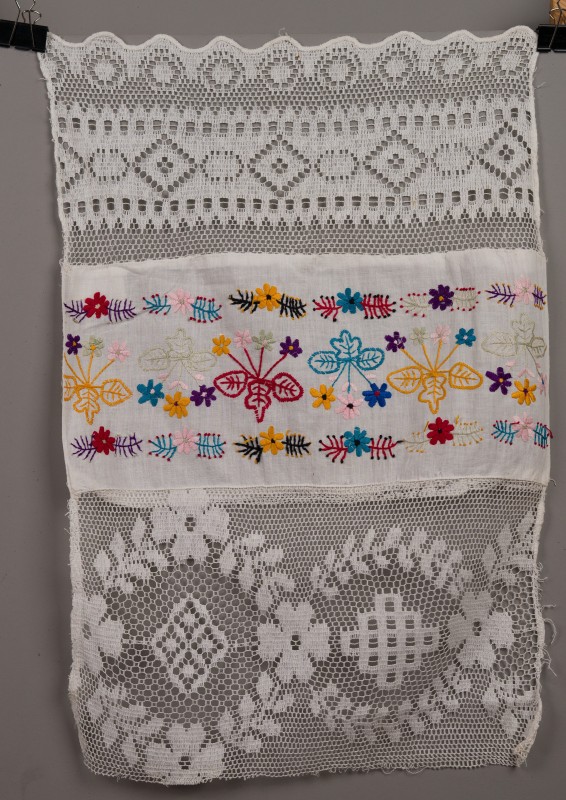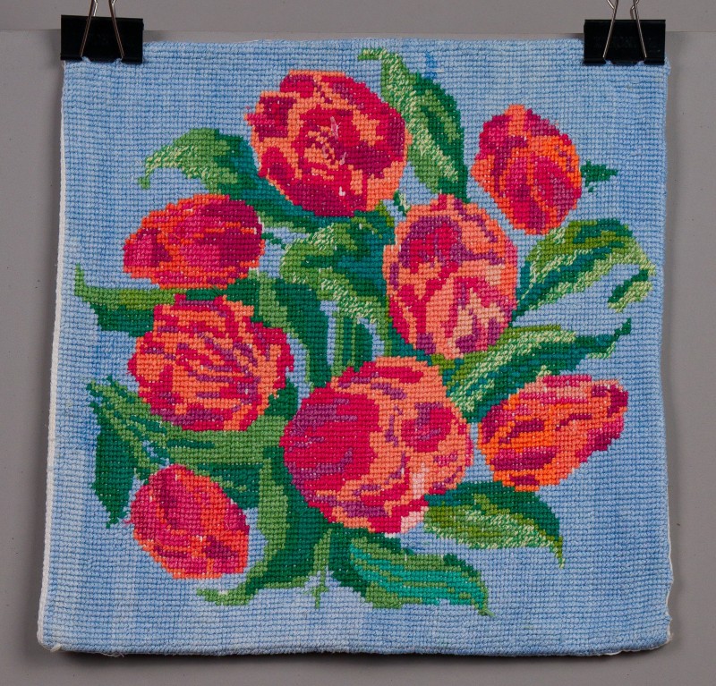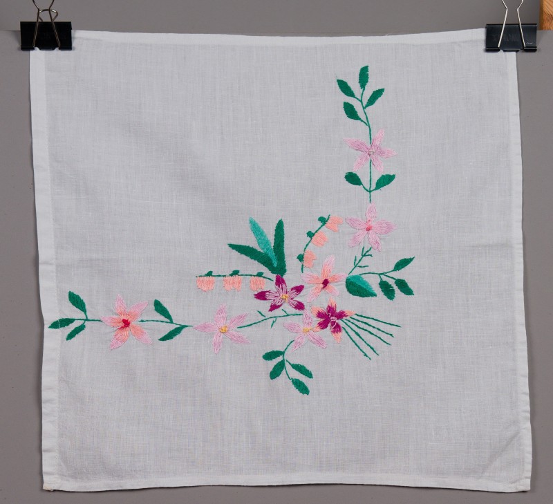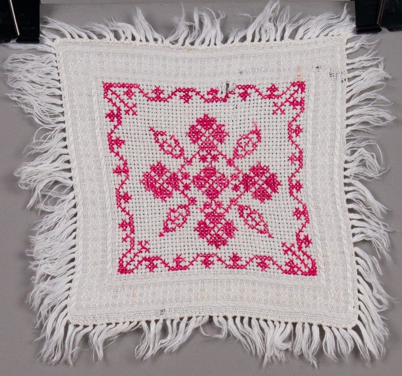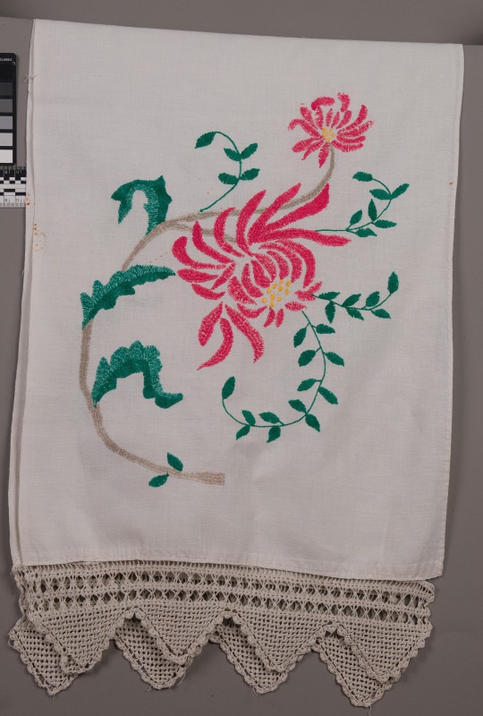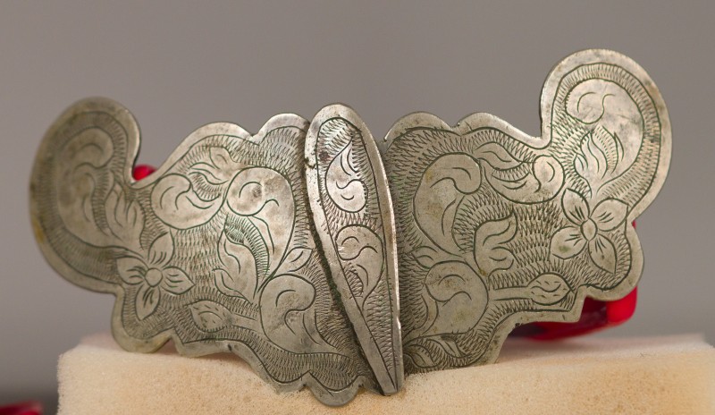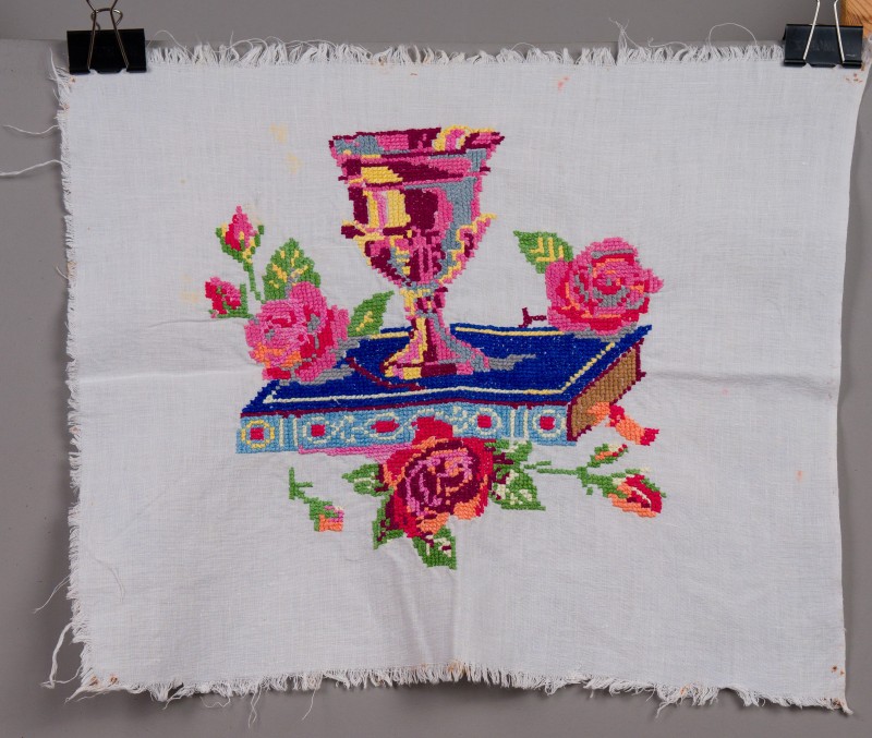 Жилет- коротка безрукавка з чорної вовняної тканини, вишита гладдю і стеблистим швом, зображує стибілізовані квіти нитками, муліне зеленого, червоного, жовтого, синього кольорів. Застібка на ліву сторону на сім металевих кнопок. Підкладка- бавовна сірого кольру. Початок ХХ століття.