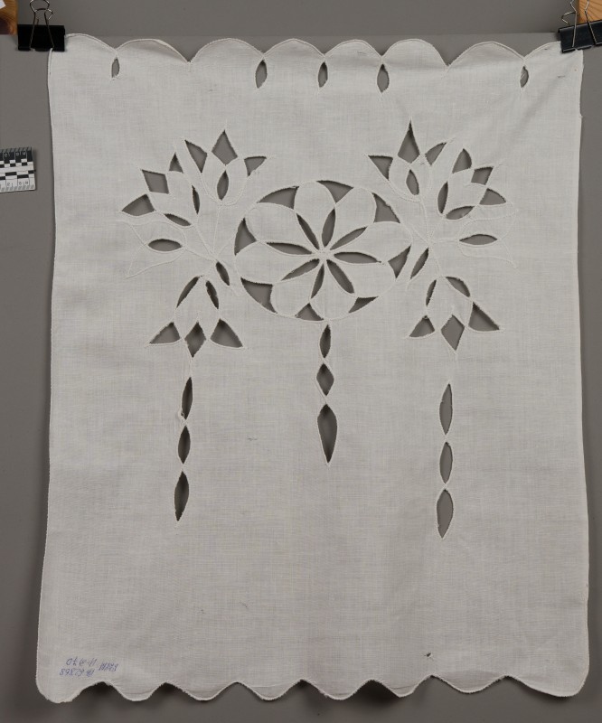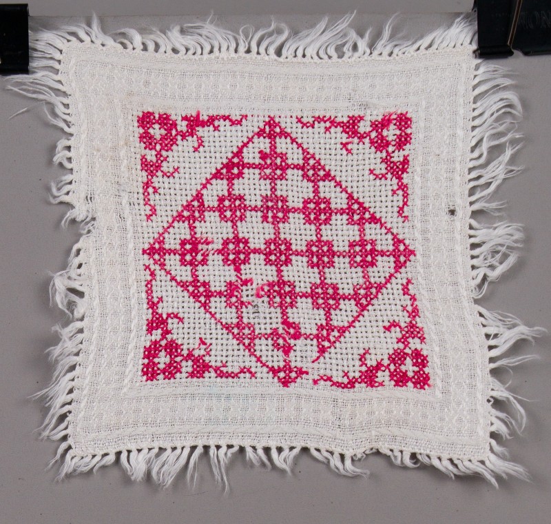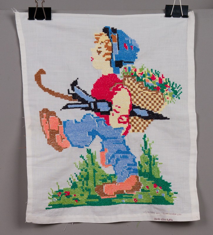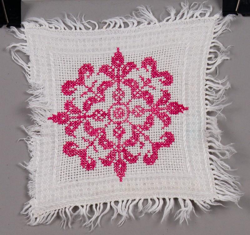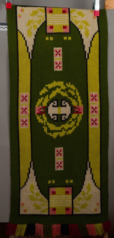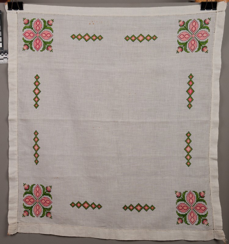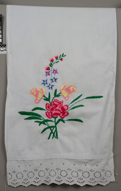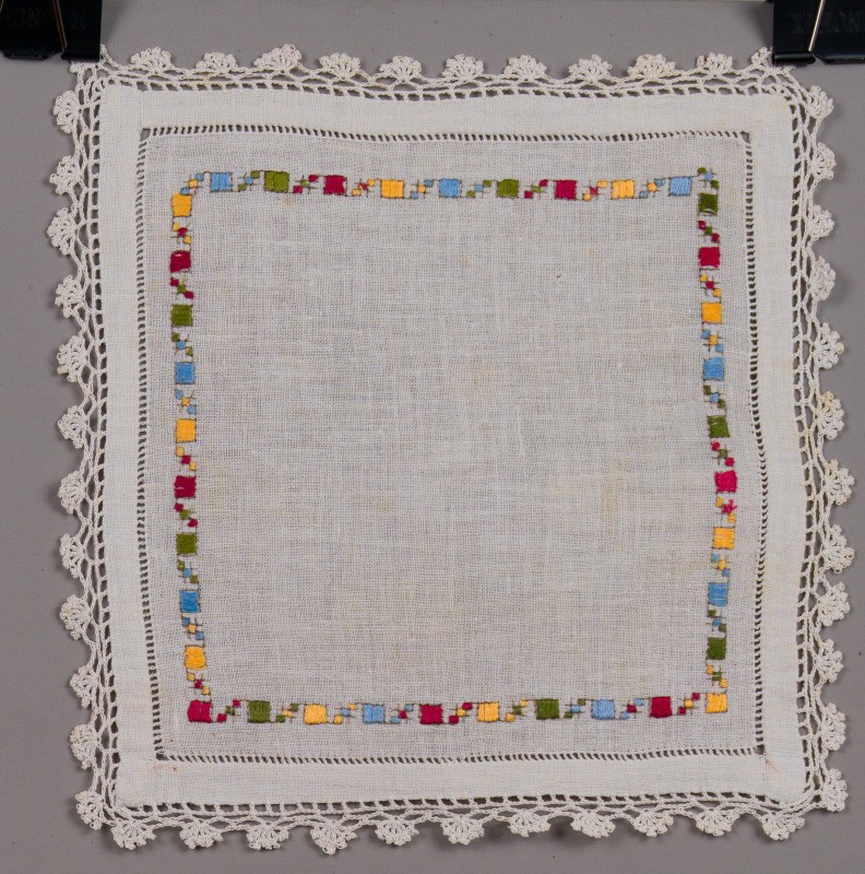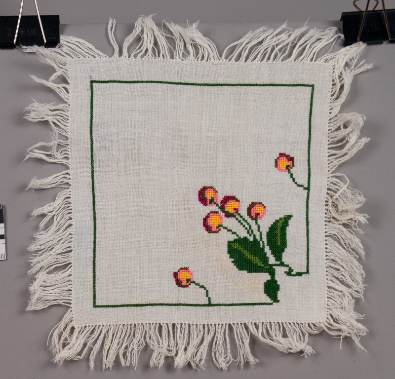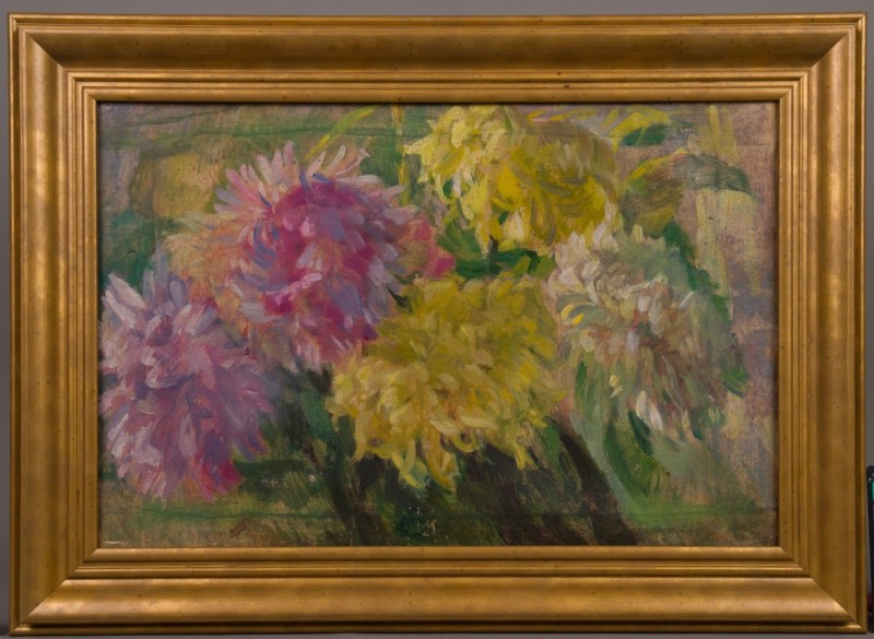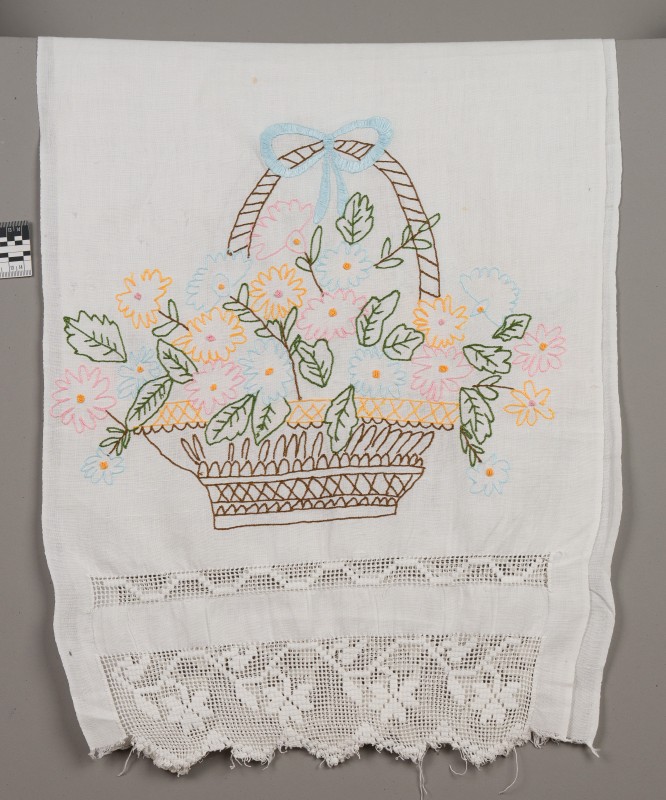 Жилет- коротка безрукавка з чорної вовняної тканини, вишита гладдю і стеблистим швом, зображує стибілізовані квіти нитками, муліне зеленого, червоного, жовтого, синього кольорів. Застібка на ліву сторону на сім металевих кнопок. Підкладка- бавовна сірого кольру. Початок ХХ століття.