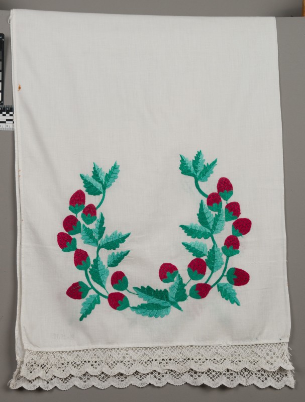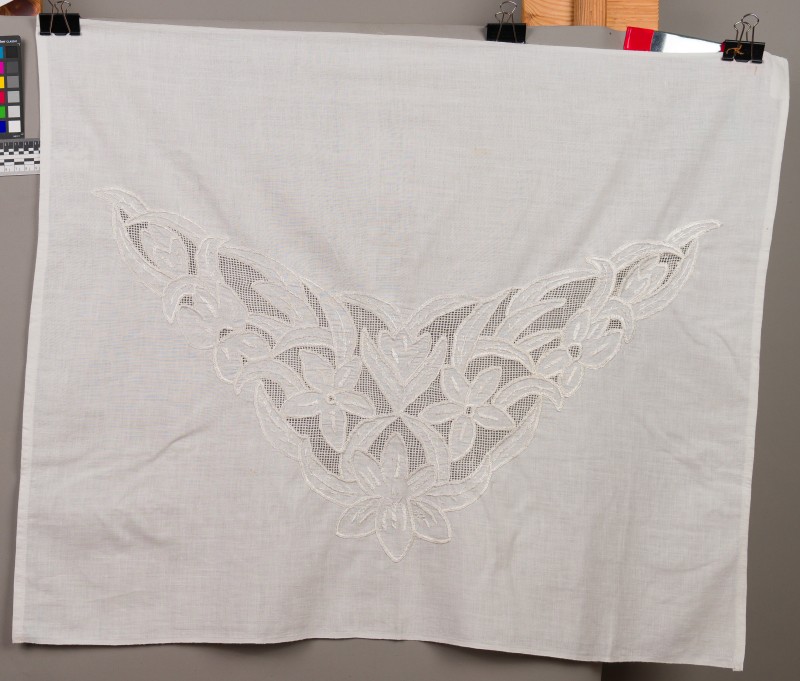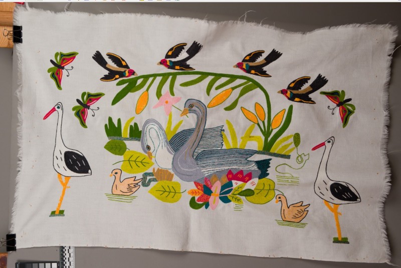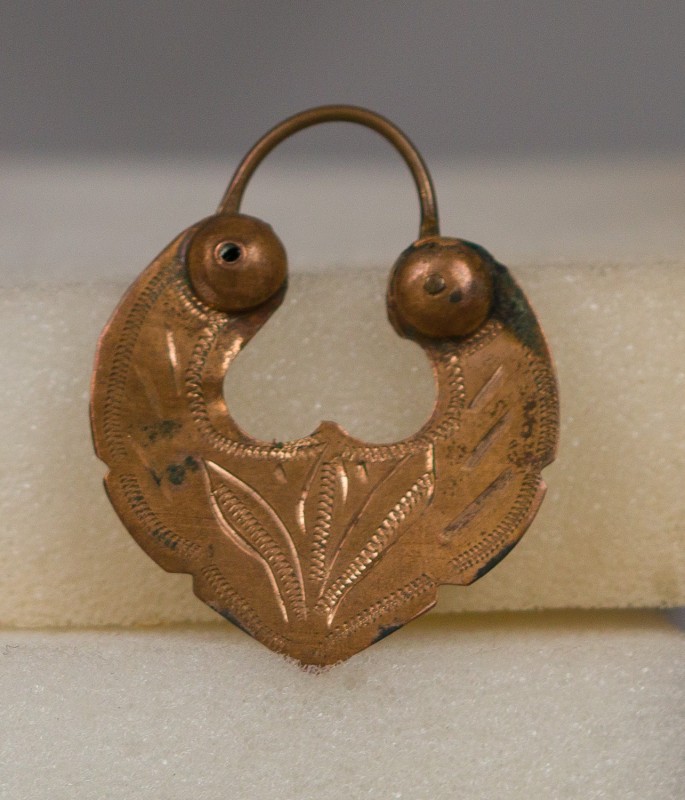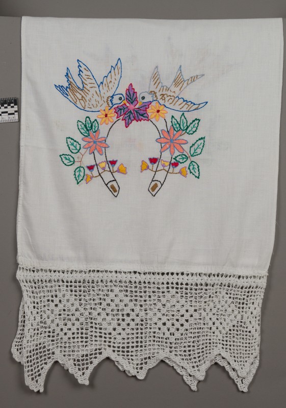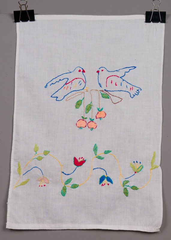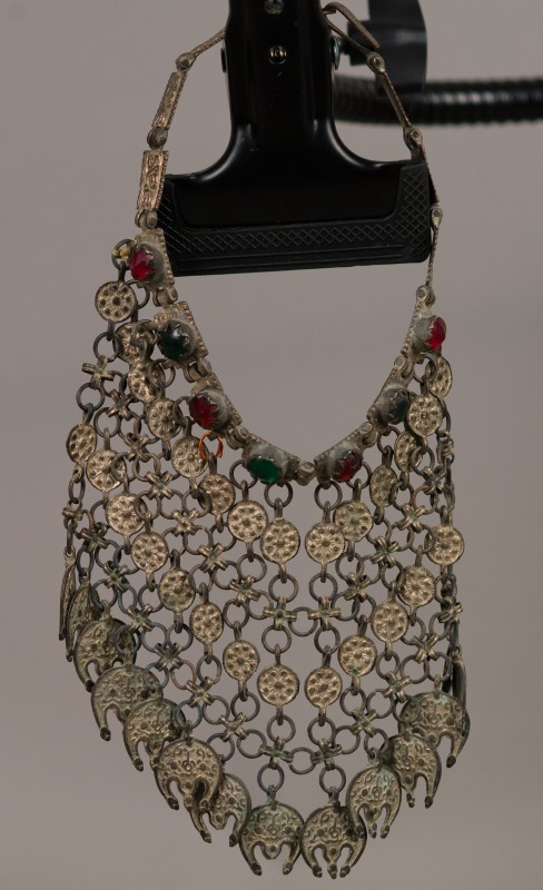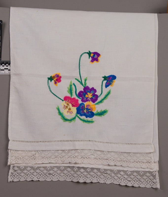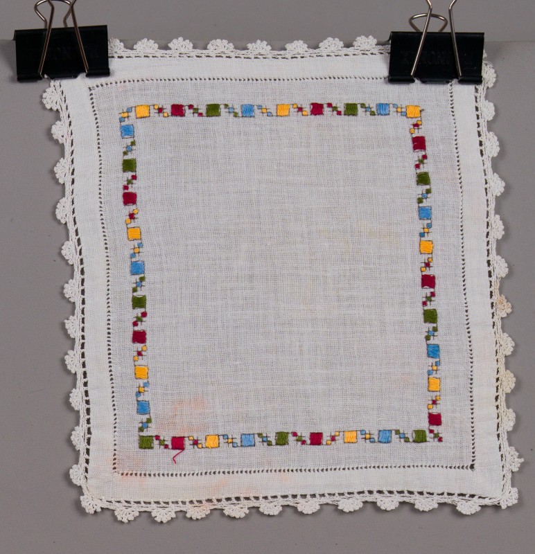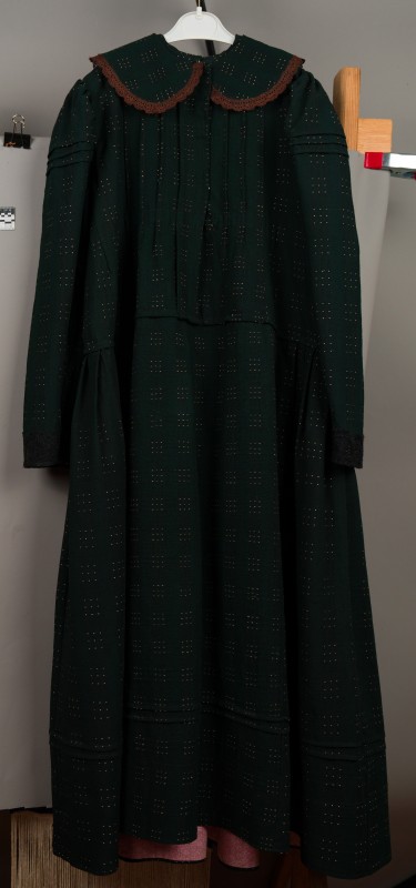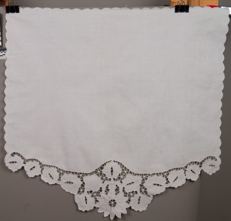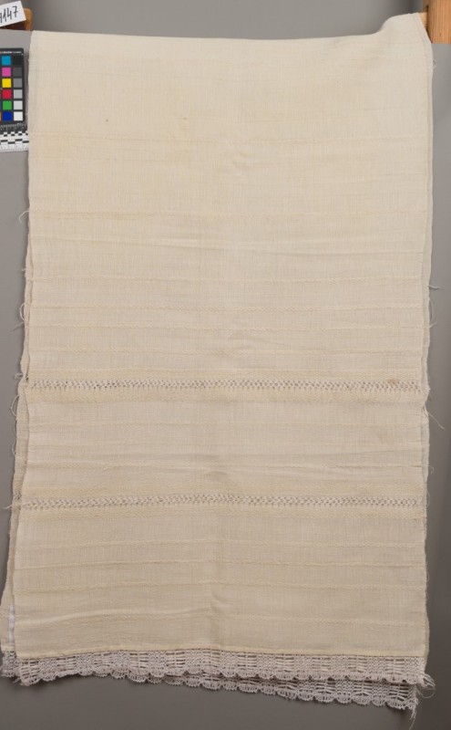 Жилет- коротка безрукавка з чорної вовняної тканини, вишита гладдю і стеблистим швом, зображує стибілізовані квіти нитками, муліне зеленого, червоного, жовтого, синього кольорів. Застібка на ліву сторону на сім металевих кнопок. Підкладка- бавовна сірого кольру. Початок ХХ століття.