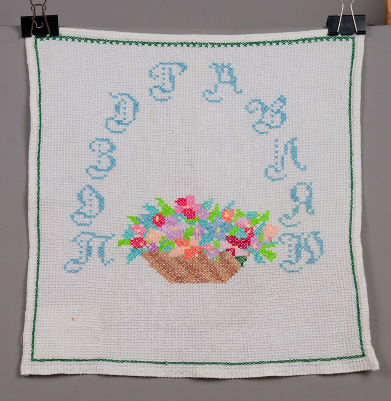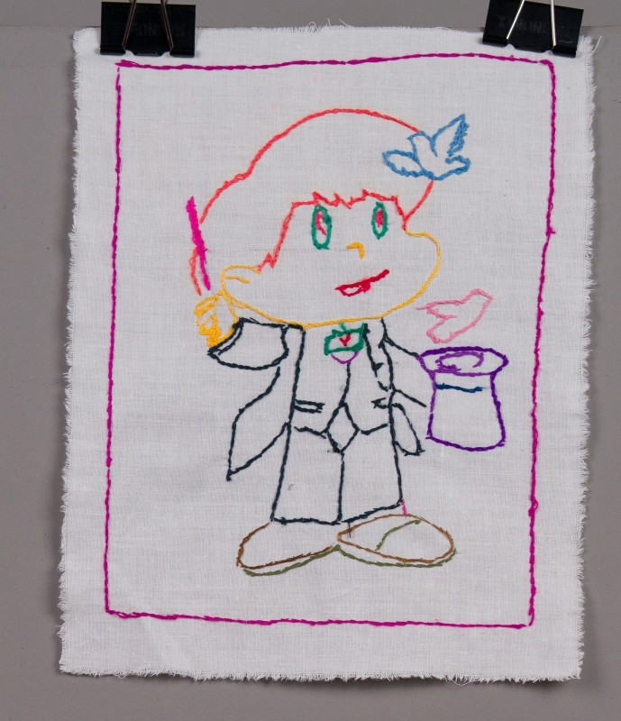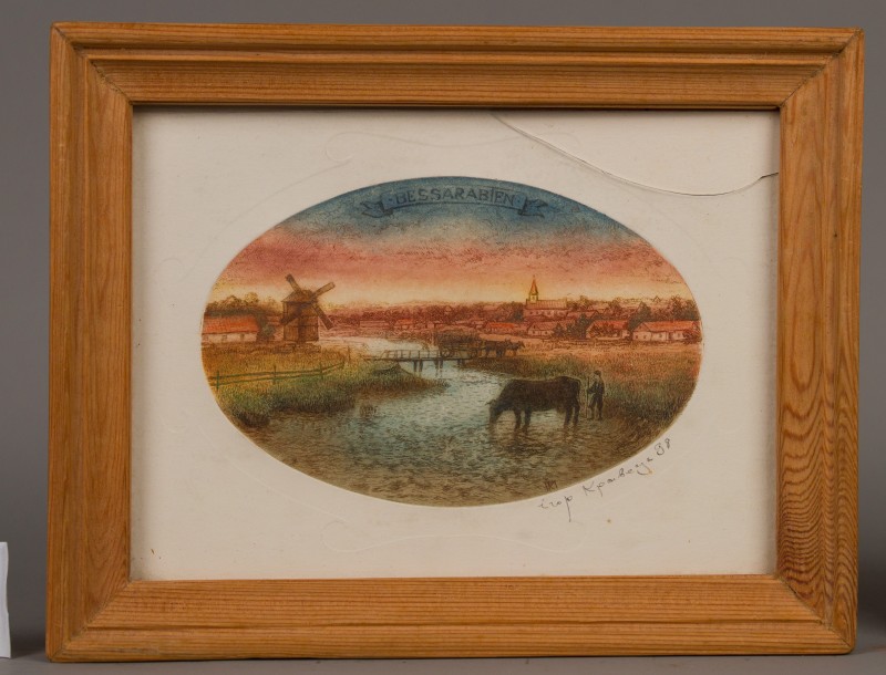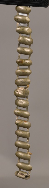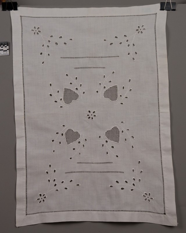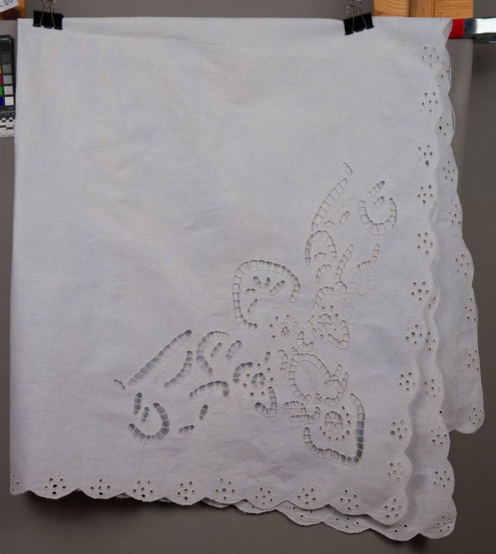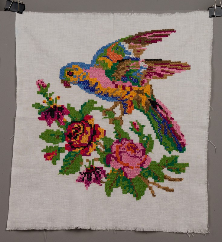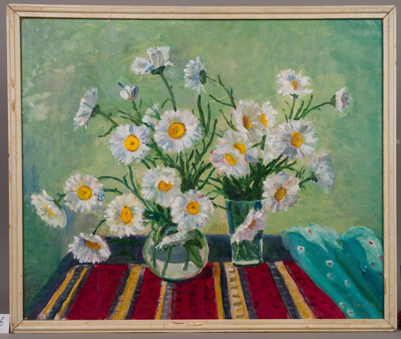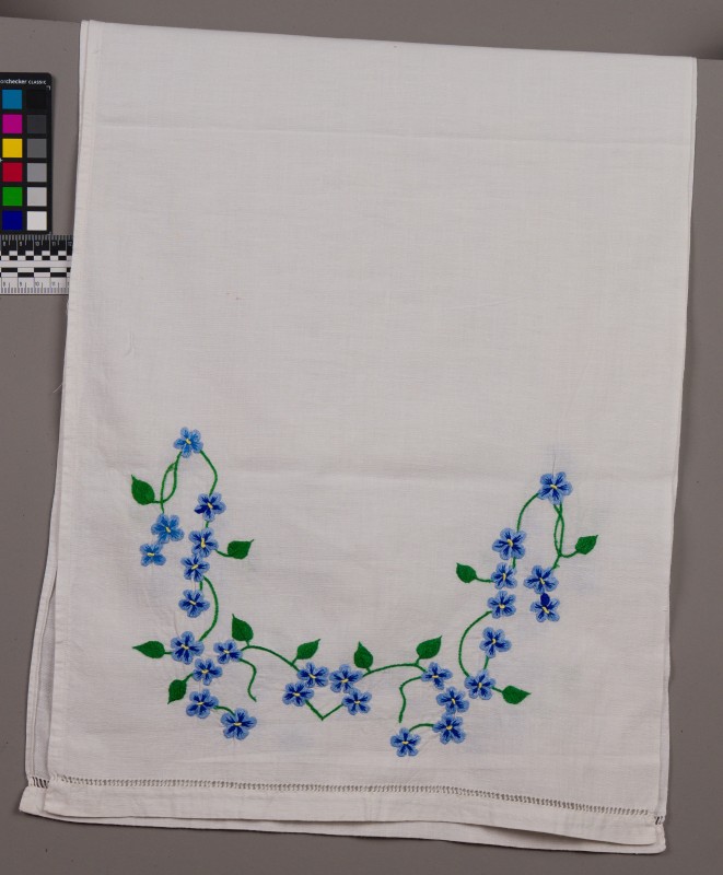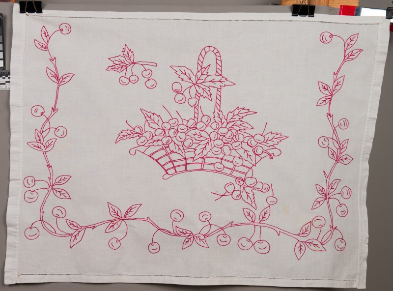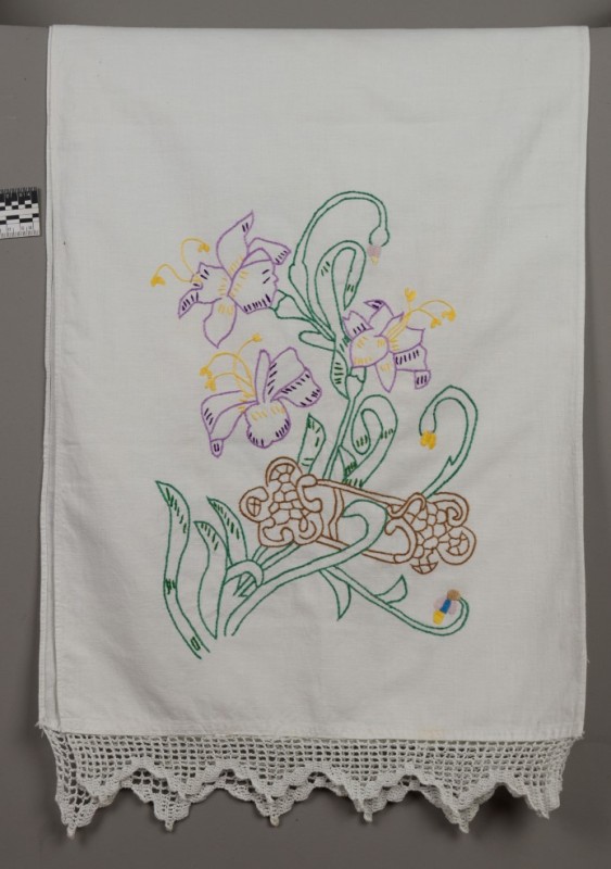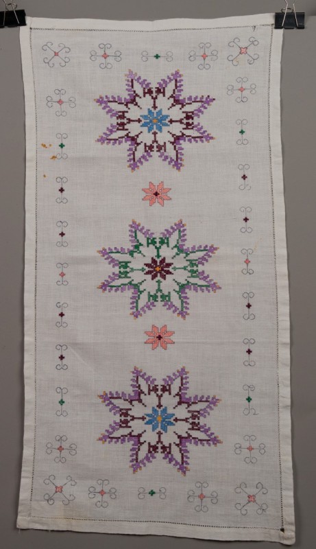 Жилет- коротка безрукавка з чорної вовняної тканини, вишита гладдю і стеблистим швом, зображує стибілізовані квіти нитками, муліне зеленого, червоного, жовтого, синього кольорів. Застібка на ліву сторону на сім металевих кнопок. Підкладка- бавовна сірого кольру. Початок ХХ століття.