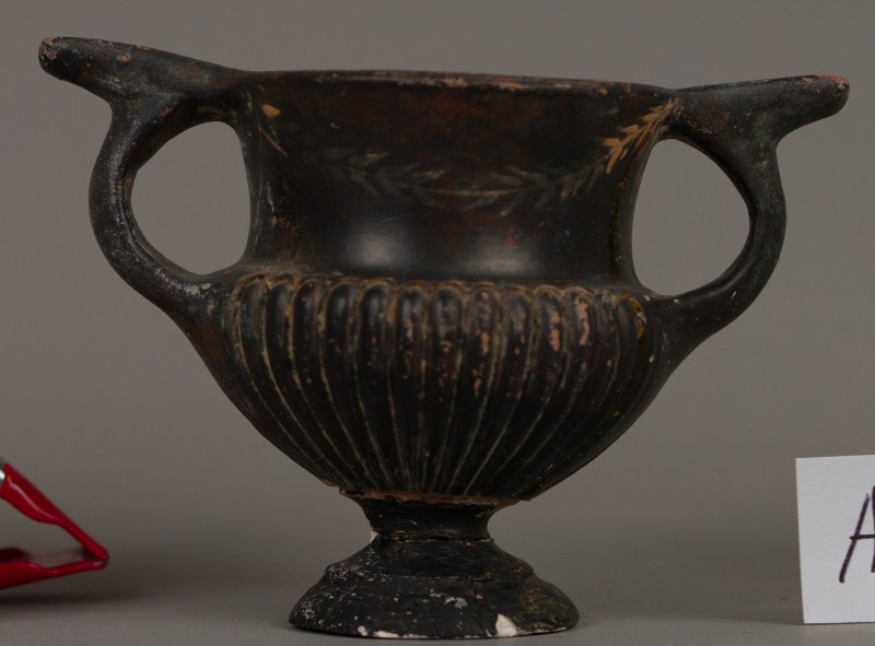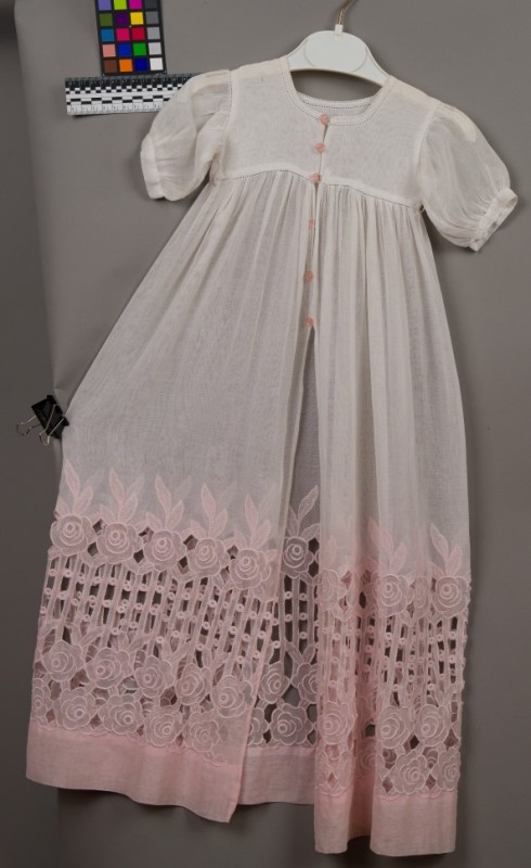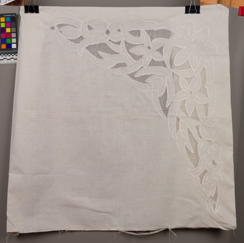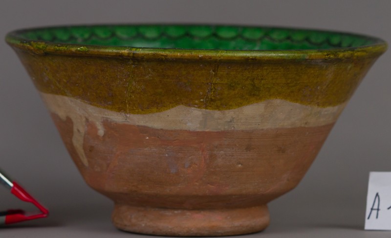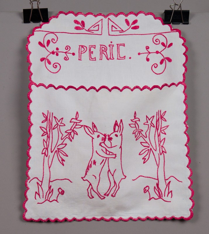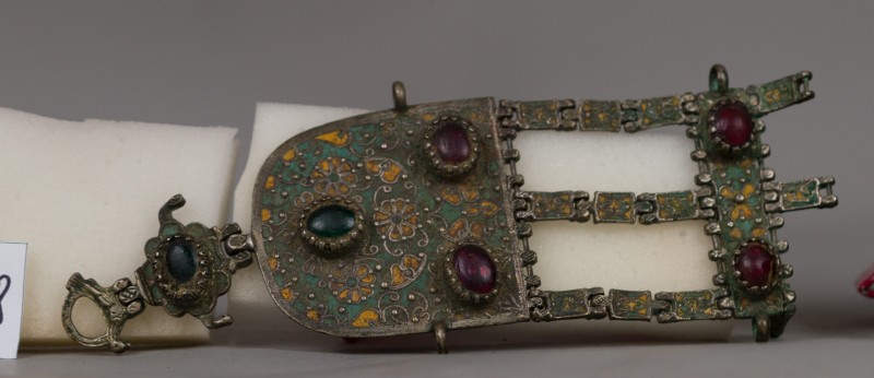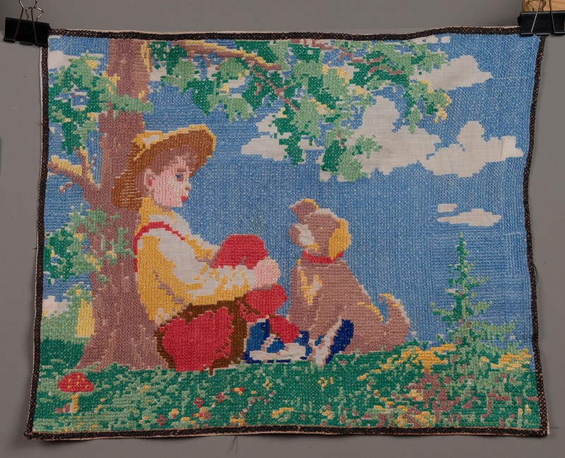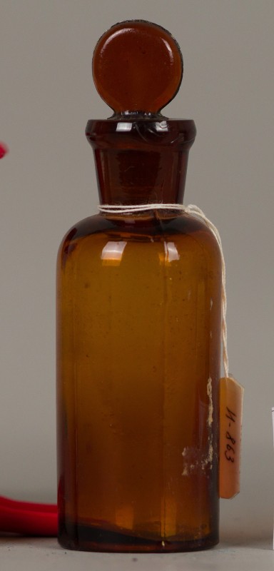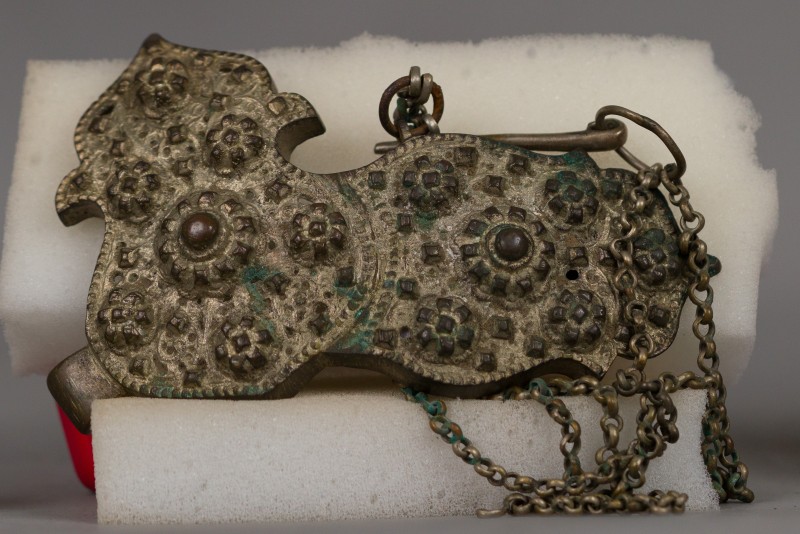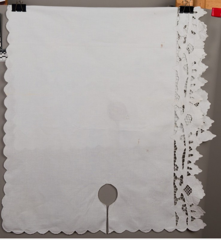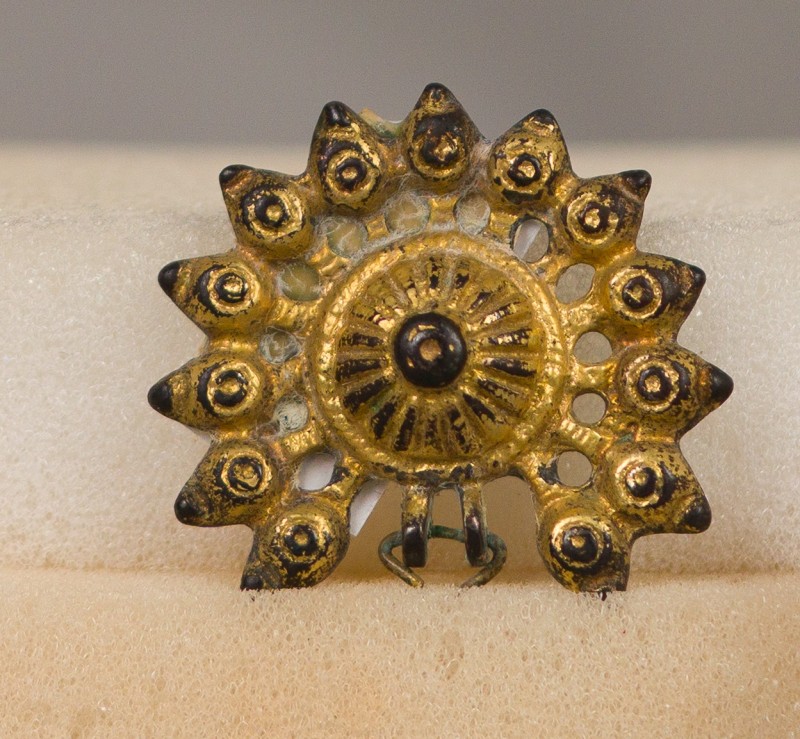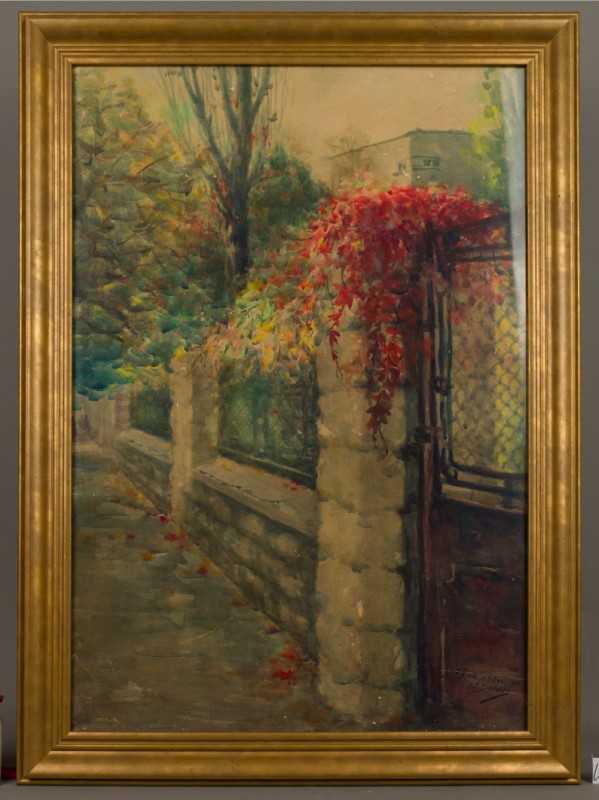 Жилет- коротка безрукавка з чорної вовняної тканини, вишита гладдю і стеблистим швом, зображує стибілізовані квіти нитками, муліне зеленого, червоного, жовтого, синього кольорів. Застібка на ліву сторону на сім металевих кнопок. Підкладка- бавовна сірого кольру. Початок ХХ століття.