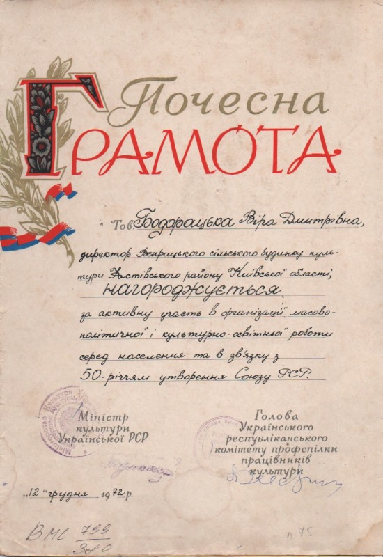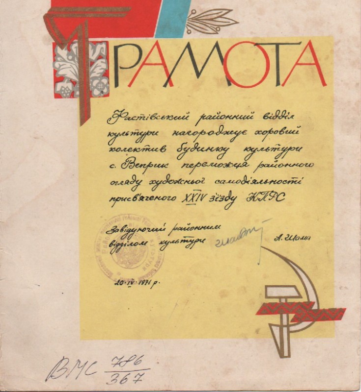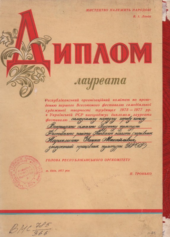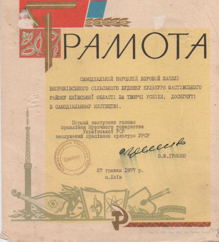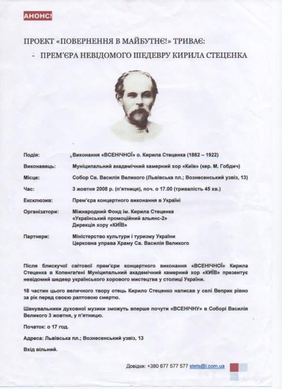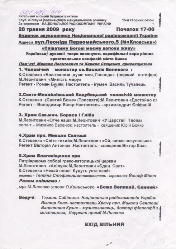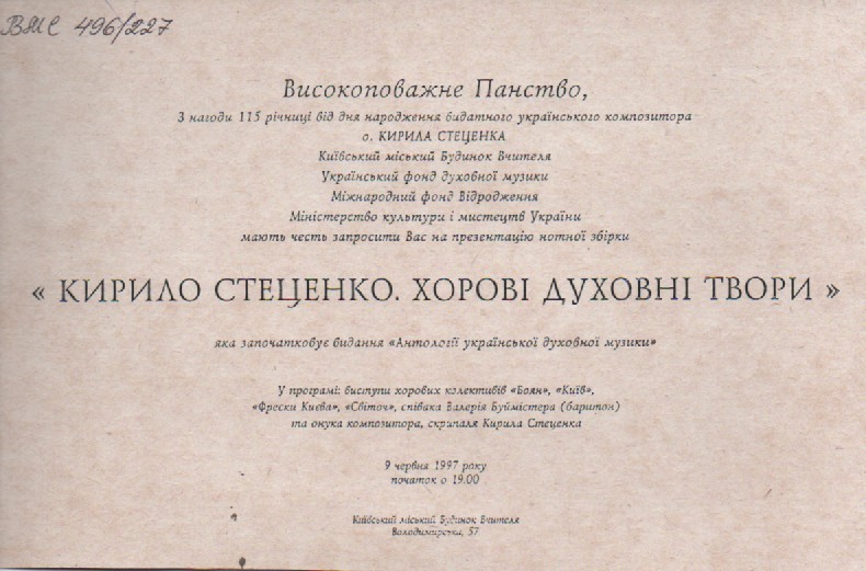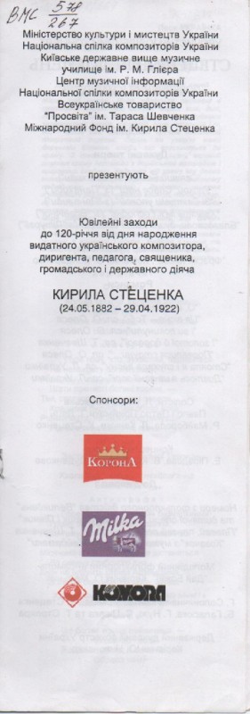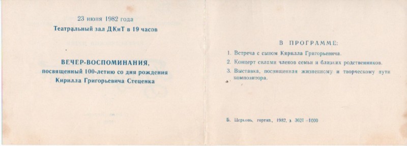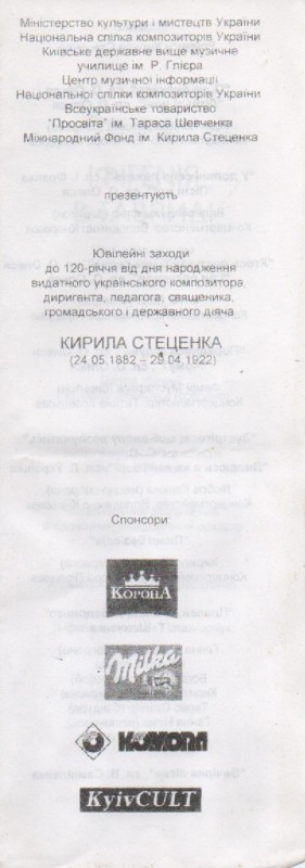 В розділі"Хроніка"надрукована інформація про відзначення 90-річчя від дня народження К.Г.Стеценка в селі Веприк з двома фото:учасників самодіяльного хору села і пам'ятника композитору.Видавництво "Музична Україна",Київ,1972р.