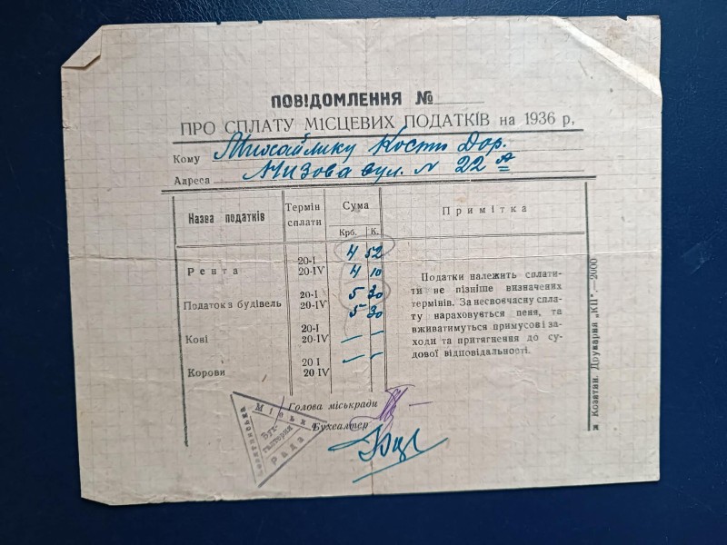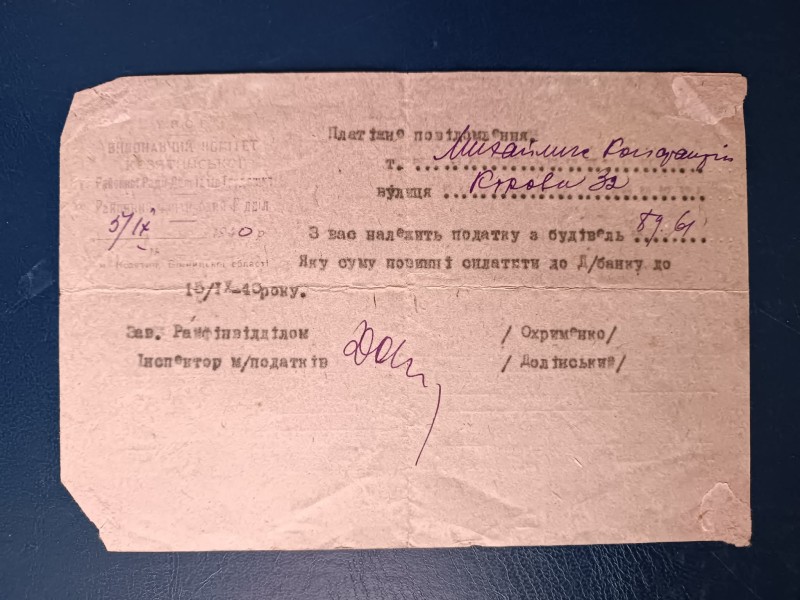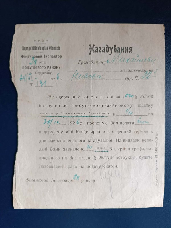 Комунанальний заклад "Музей історії міста Козятин" Козятинської міської радиДублікат оповістки №457