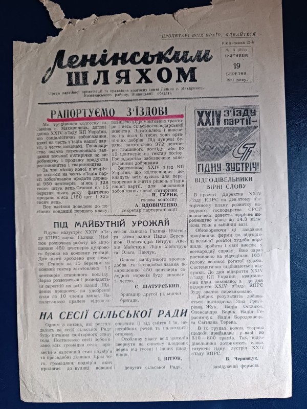 Комунанальний заклад "Музей історії міста Козятин" Козятинської міської радиГазета "Сельская жизнь"